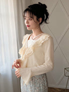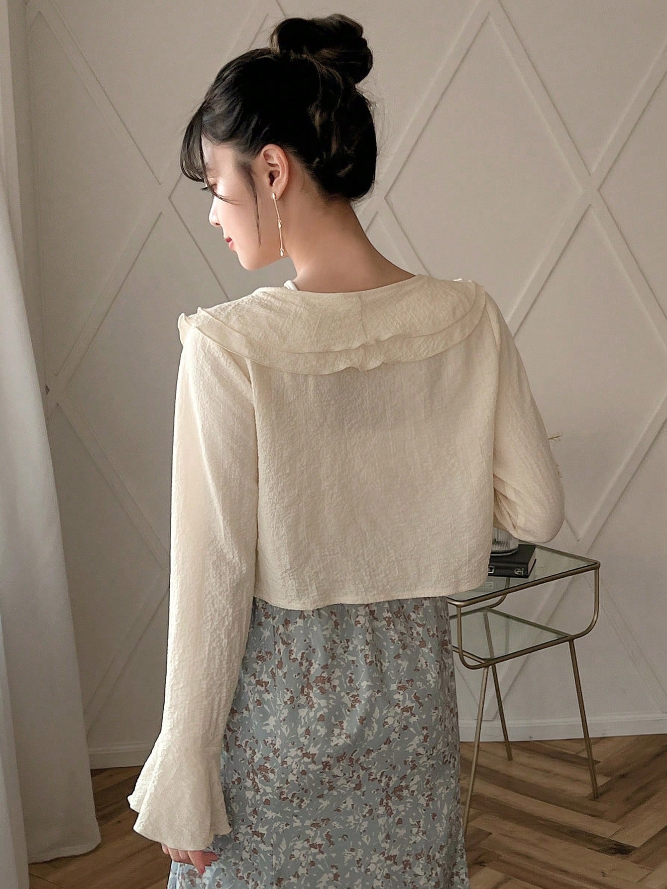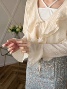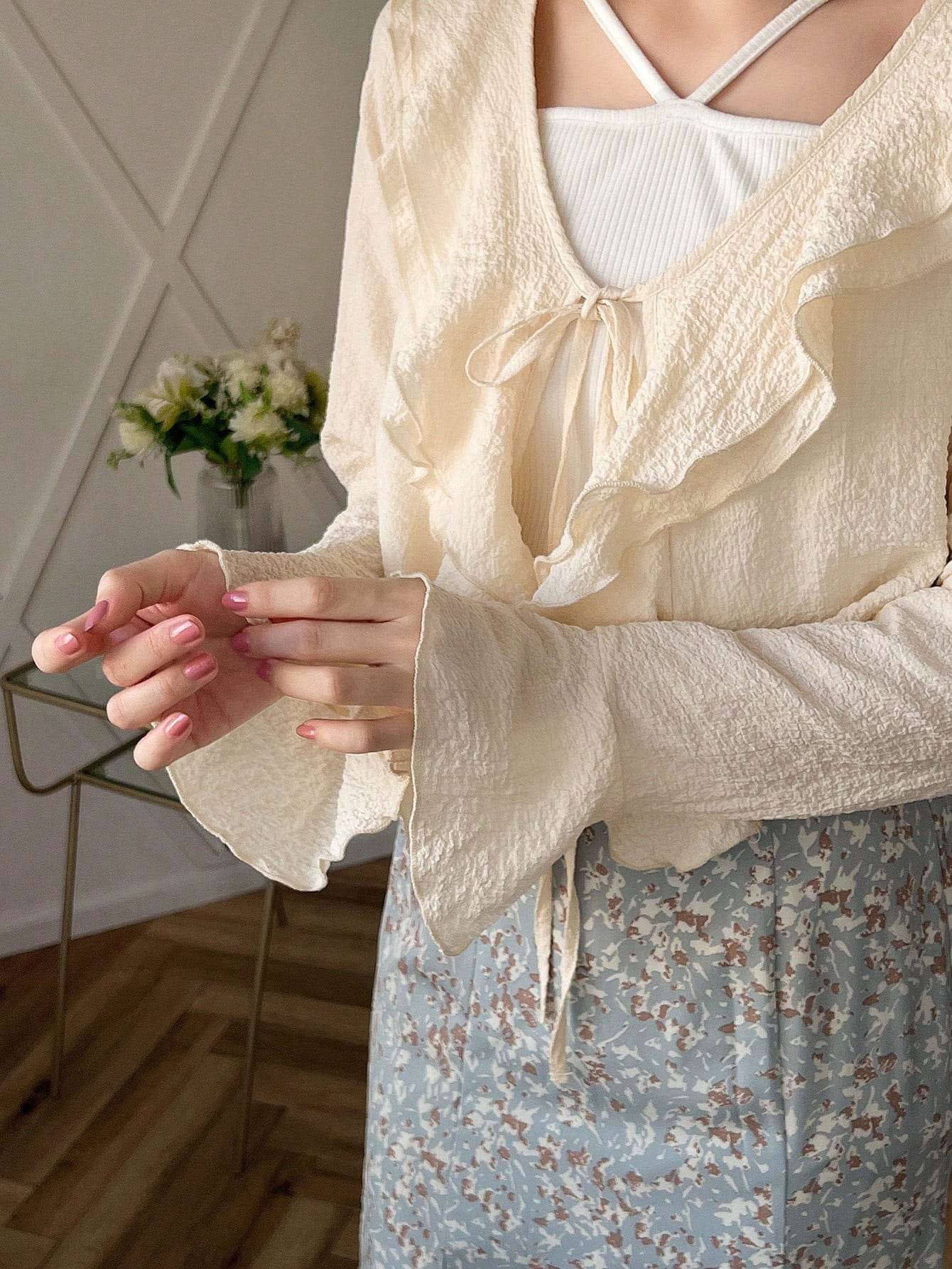 بلوزة نسائية من FRIFUL برباط أمامي وحاشية مكشكشة