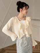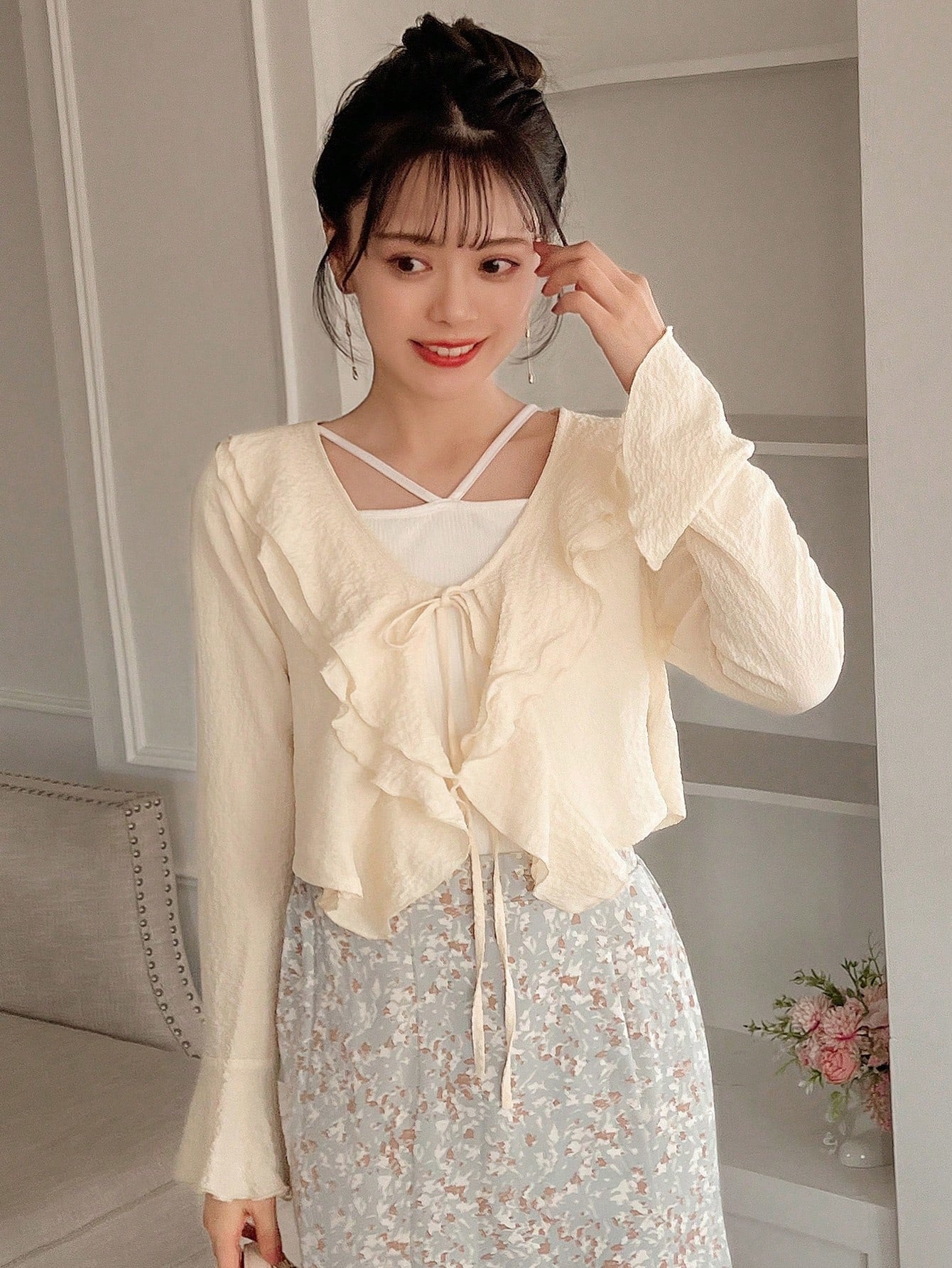 women FRIFUL Women's Hem Ruffle Front Tie Blouse