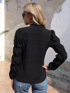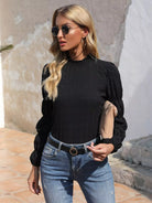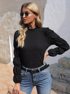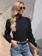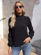 النساء - بلوزة بأكمام منتفخة ورقبة مكشكشة