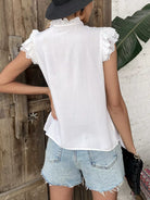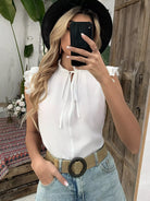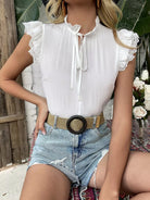 بلوزة بأكمام دانتيل مزينة بربطة عنق مزخرفة بربطة عنق مزينة بالدانتيل
