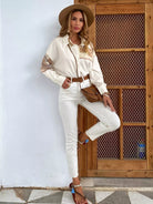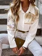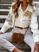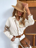 بلوزة بطبعة جرافيك مطبوعة بأزرار أمامية طويلة من الأمام
