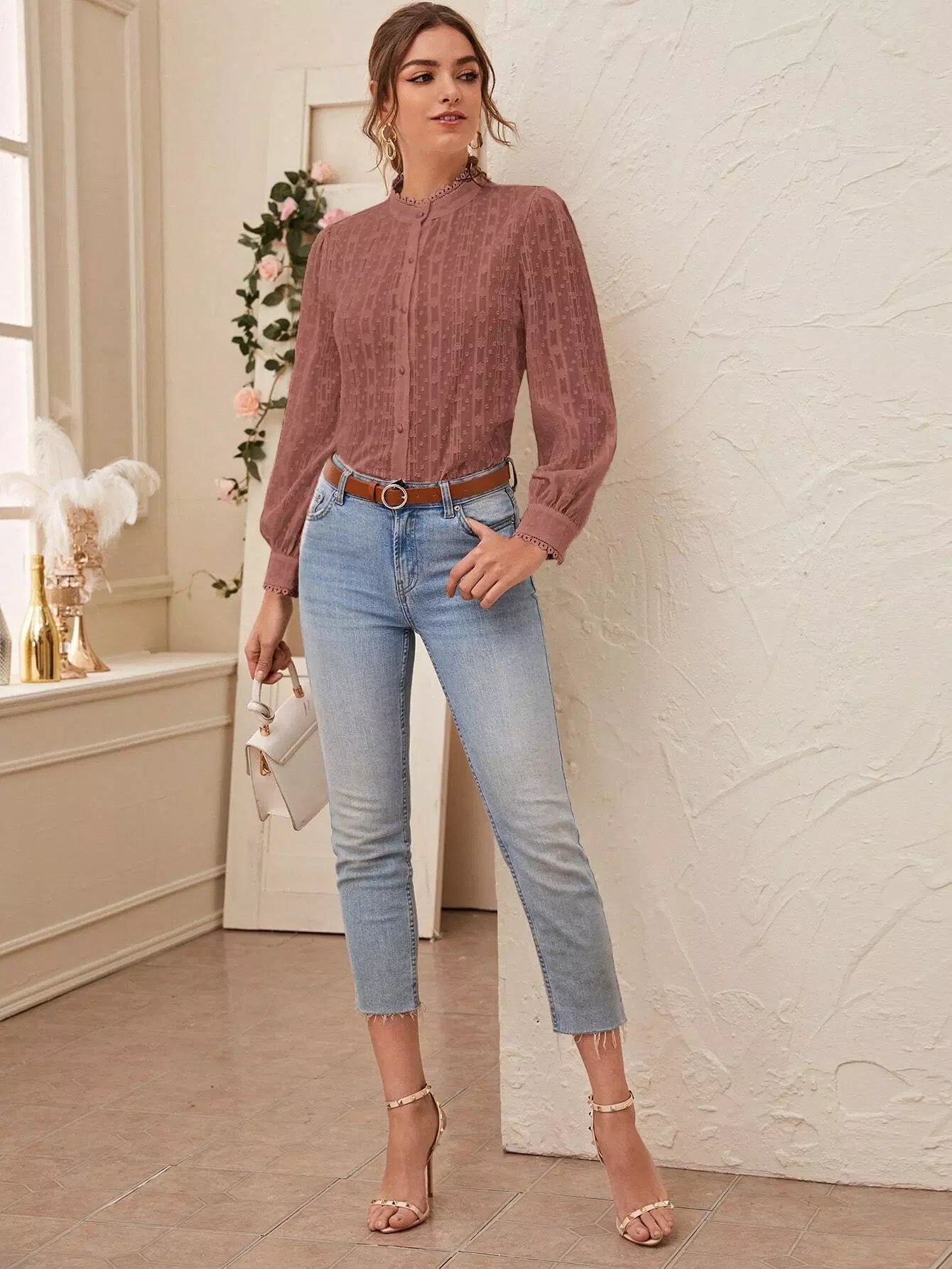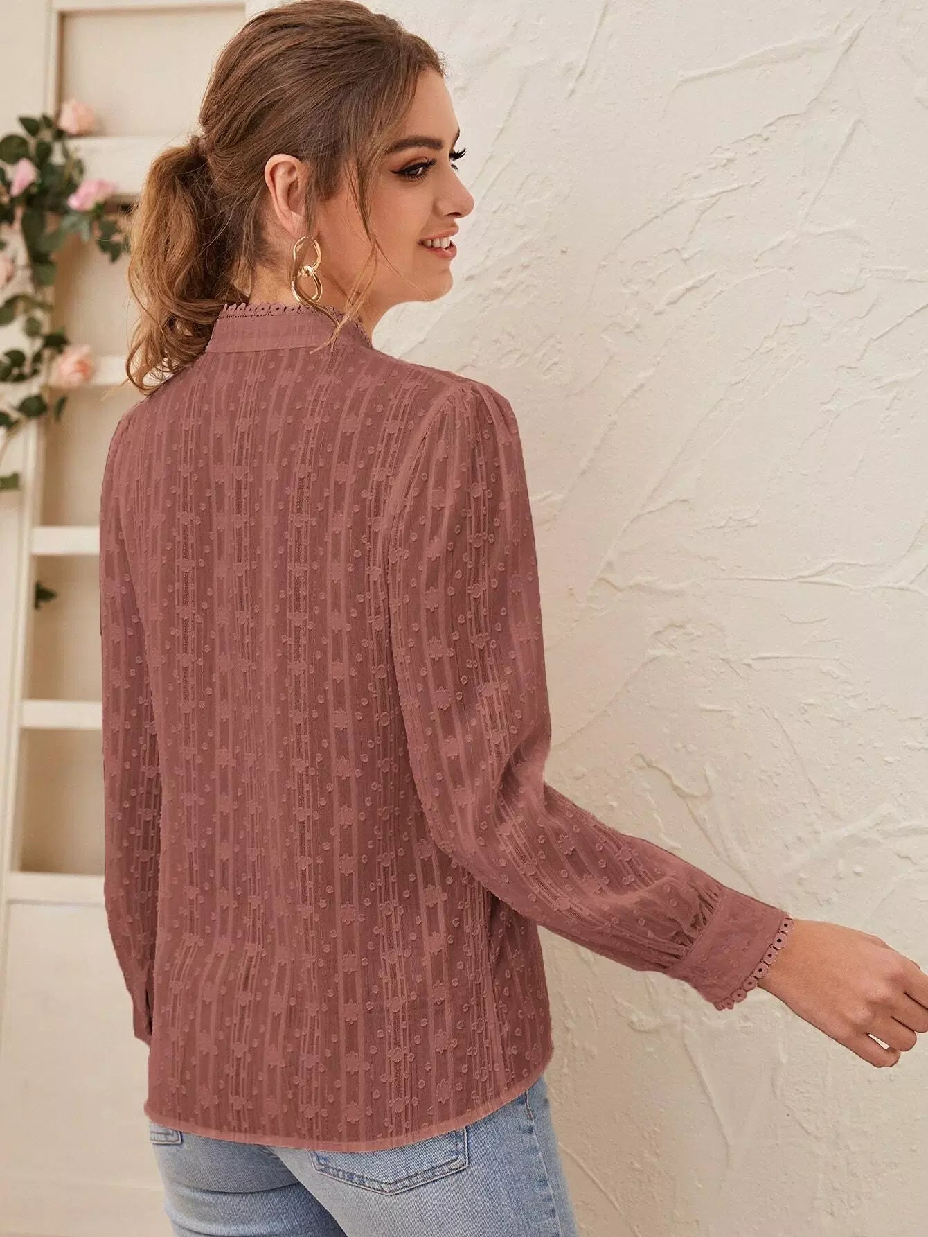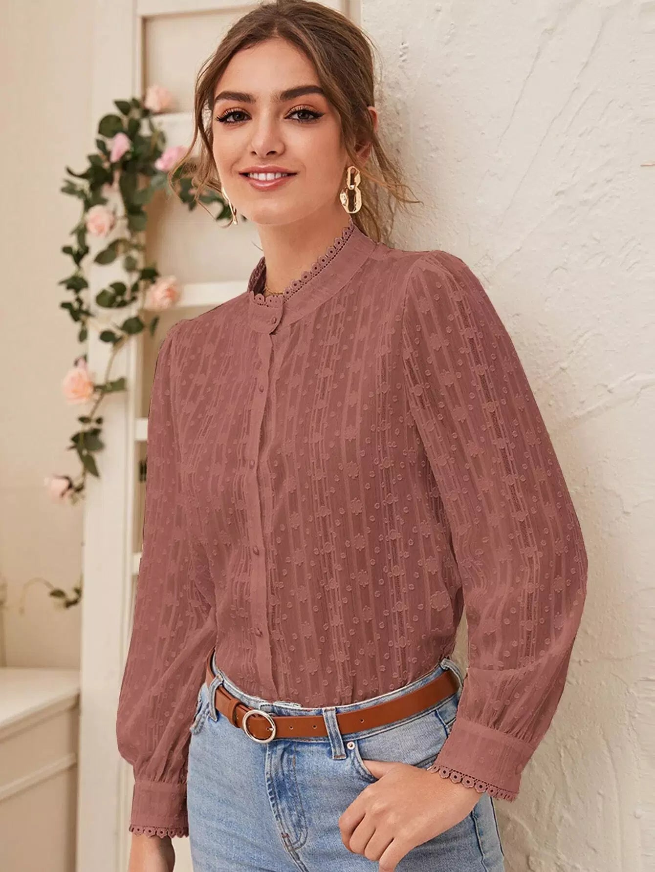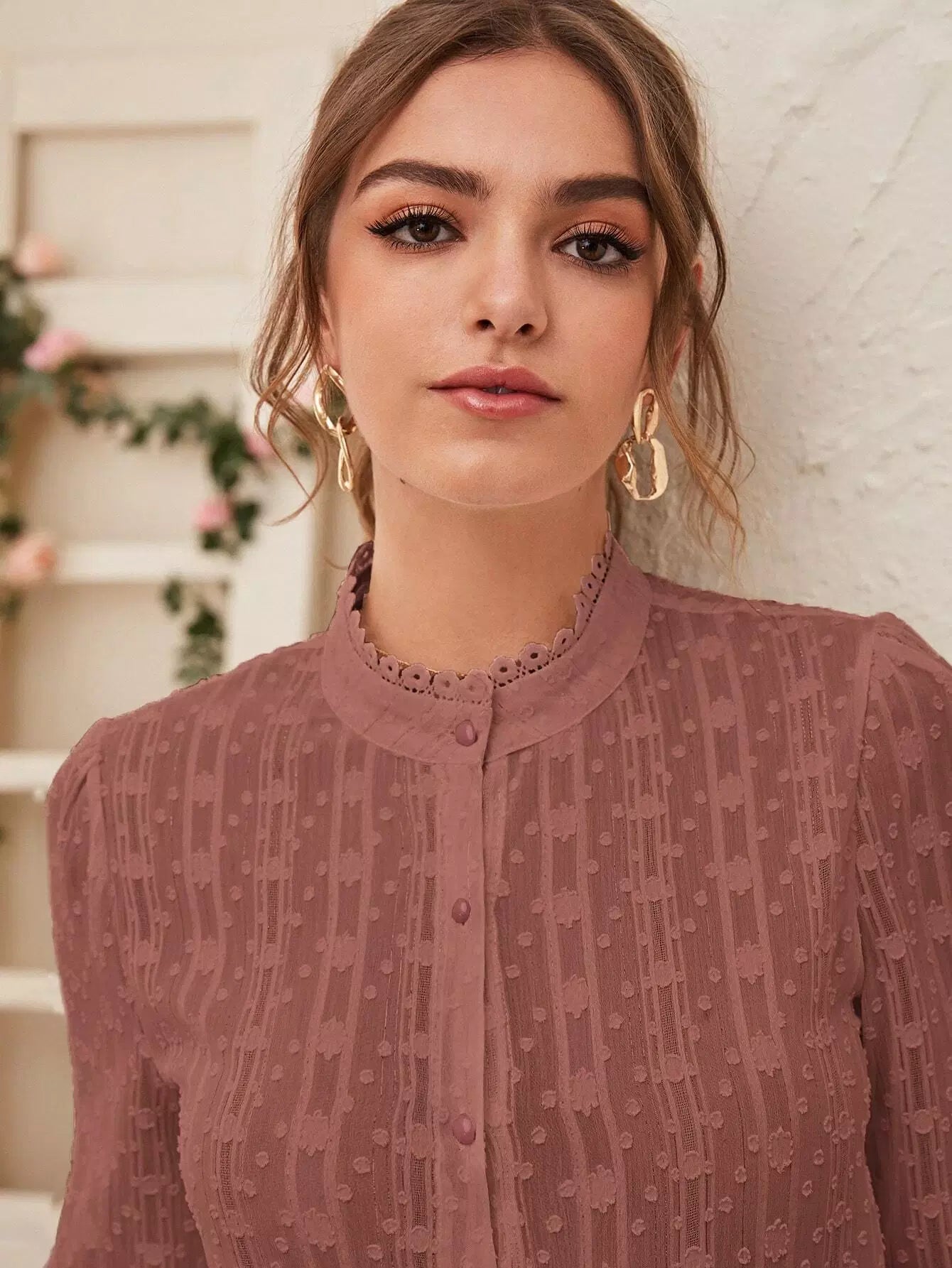 بلوزة شفافة من الدانتيل المخرم بأزرار من الدانتيل المخرم