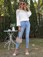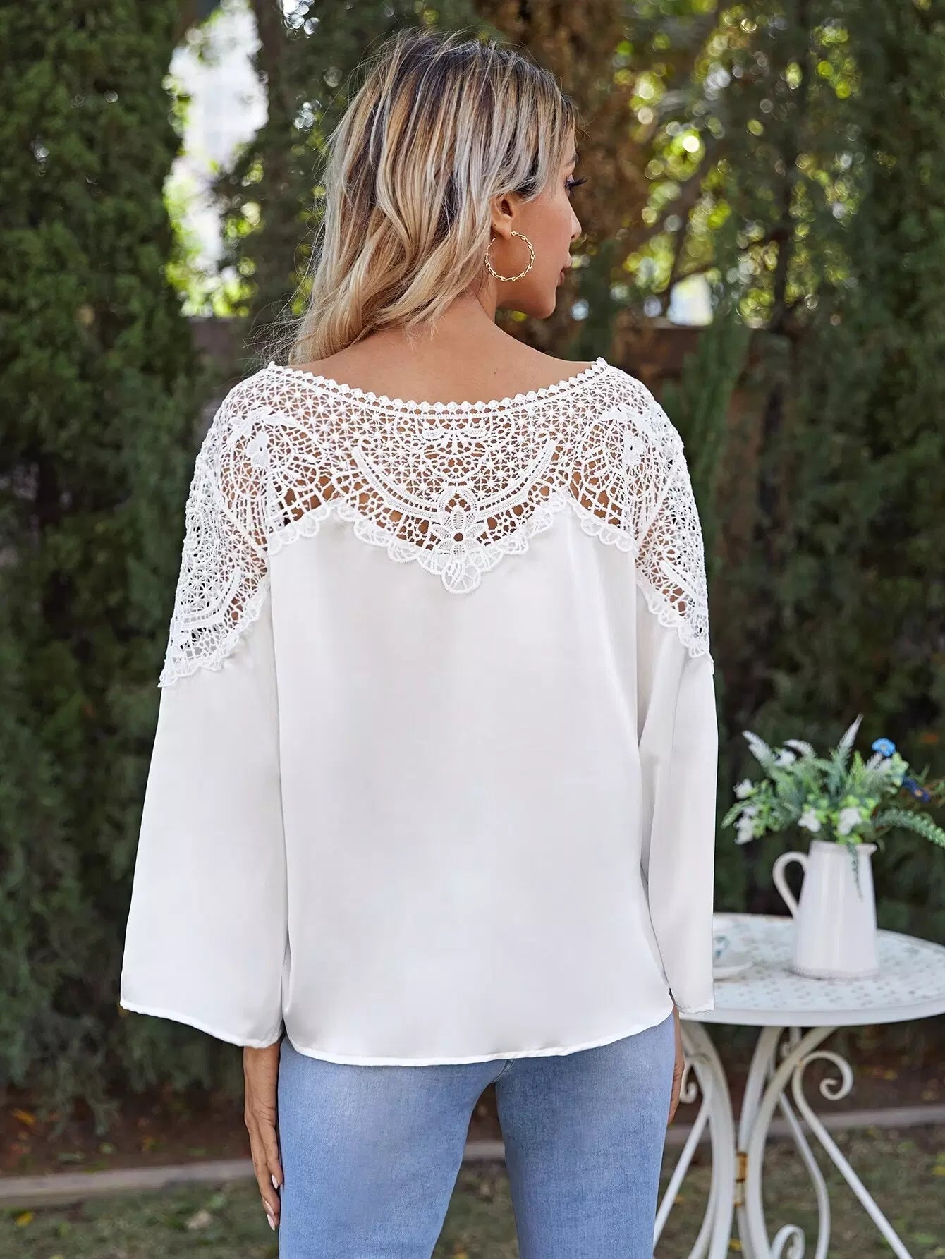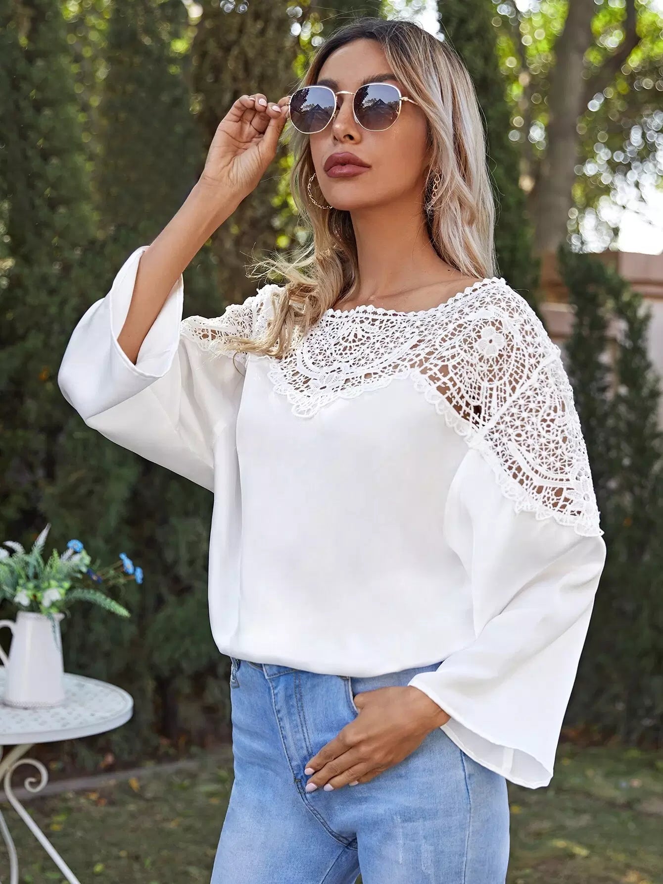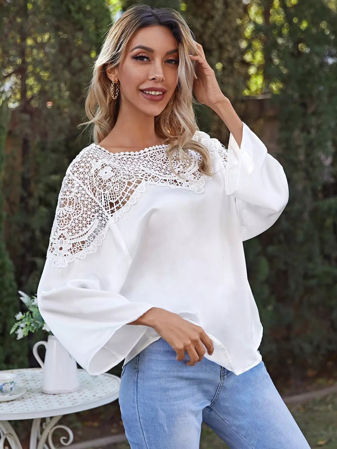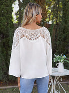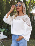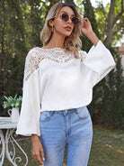 بلوزة بأكمام من الدانتيل المخرّم المخرّم بأكمام من الدانتيل المخرّم