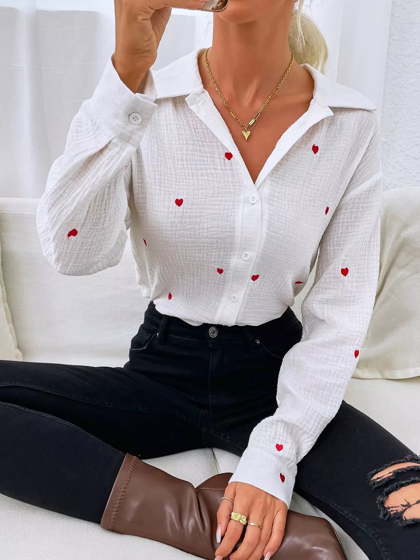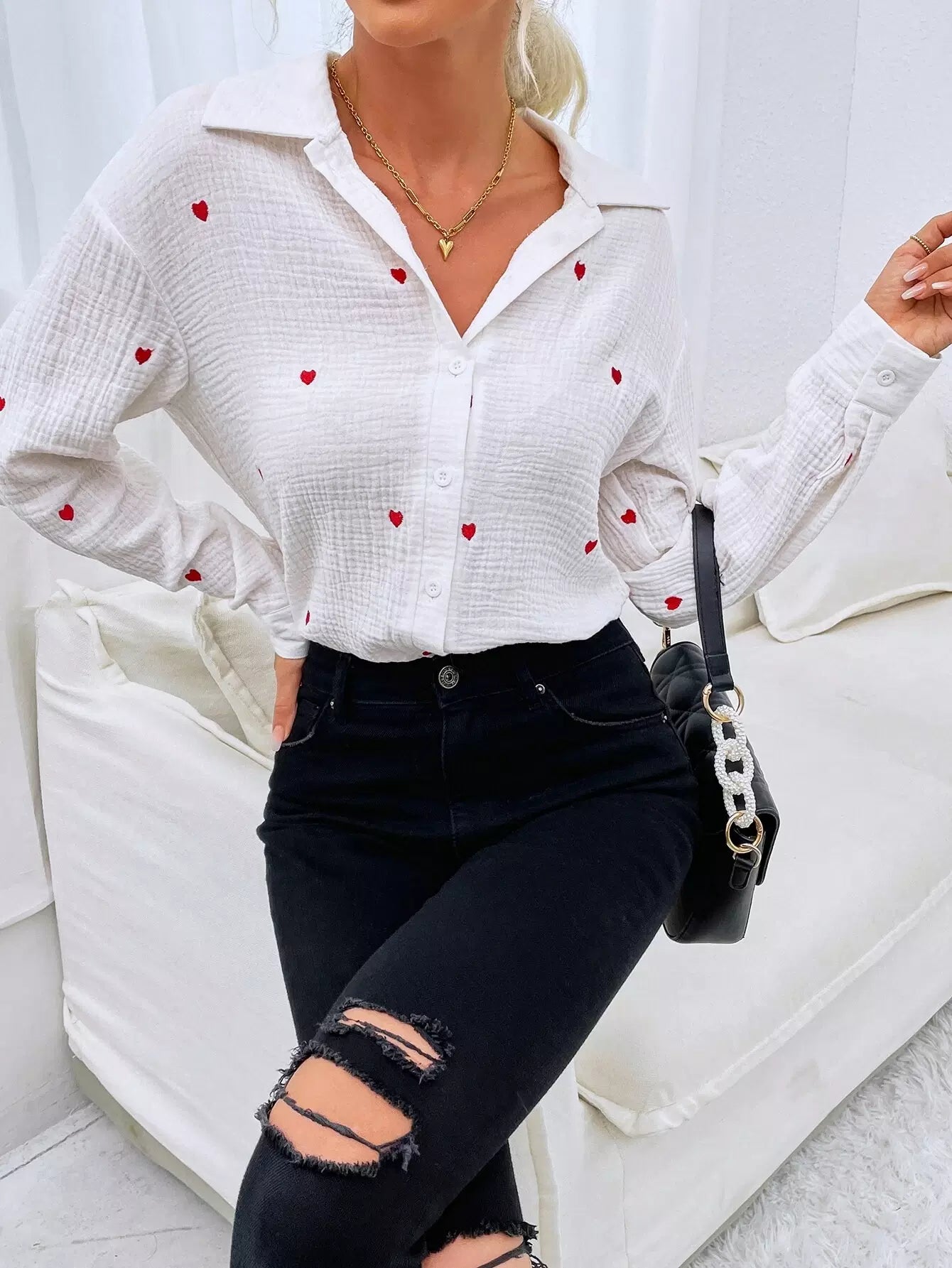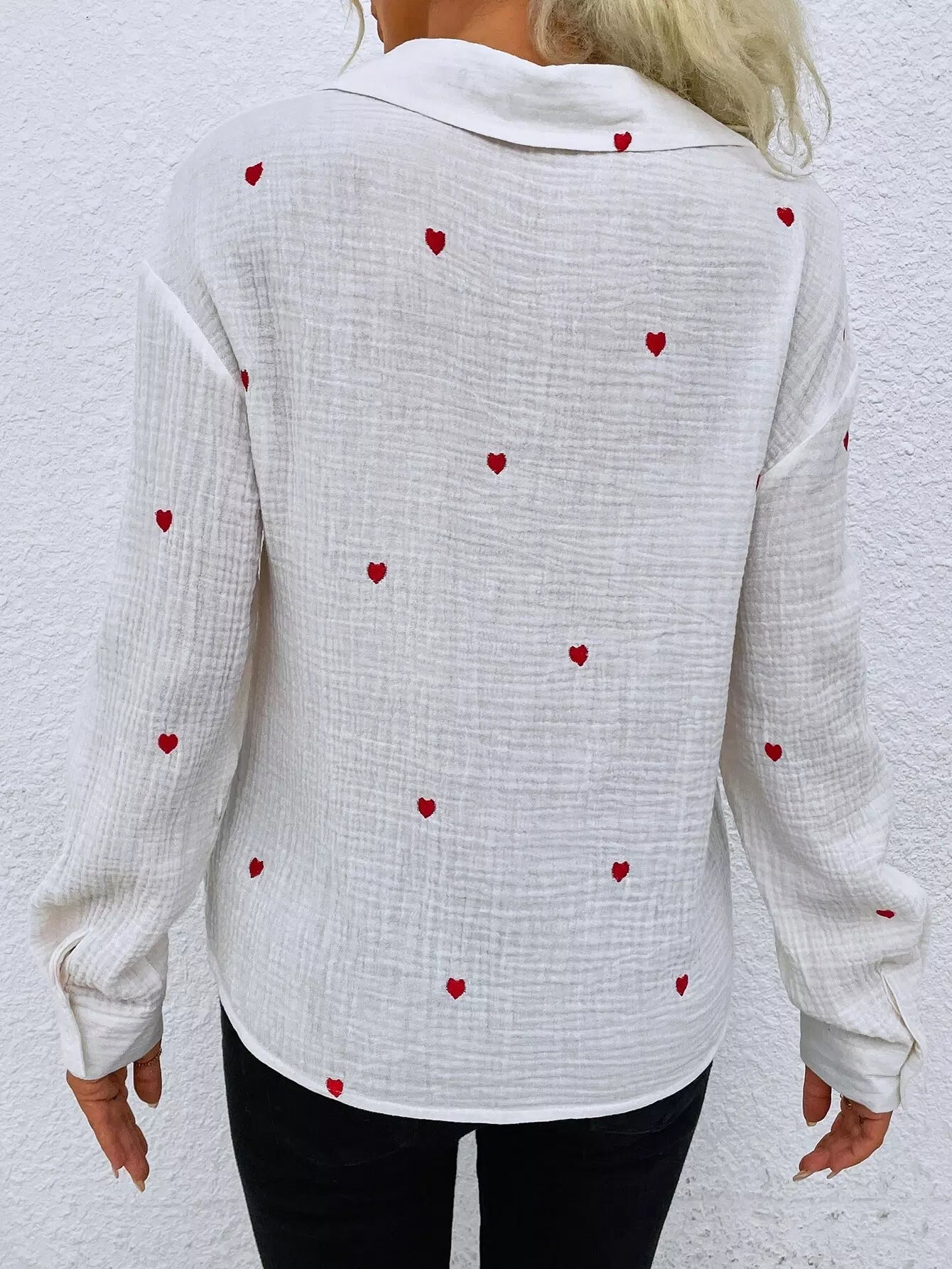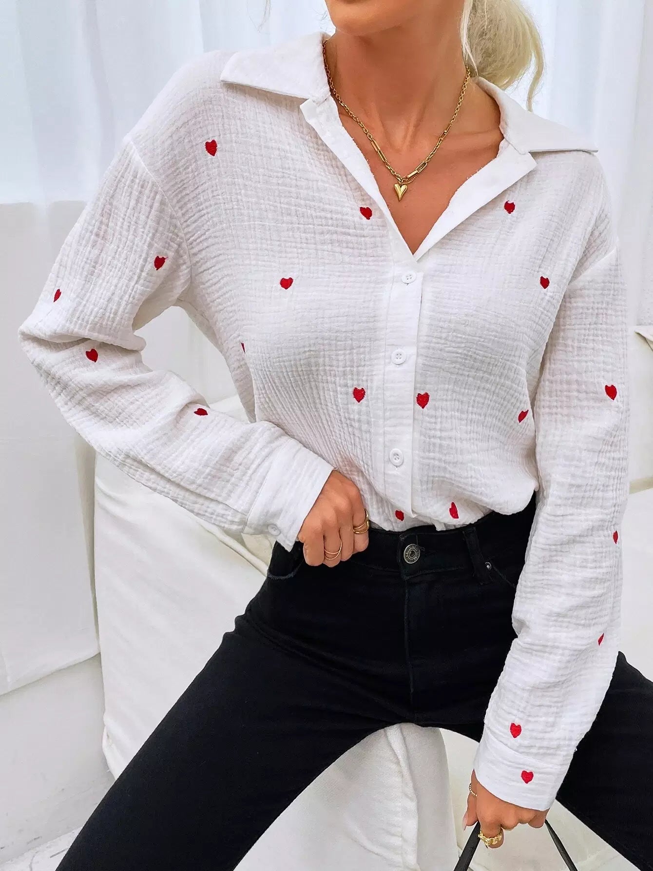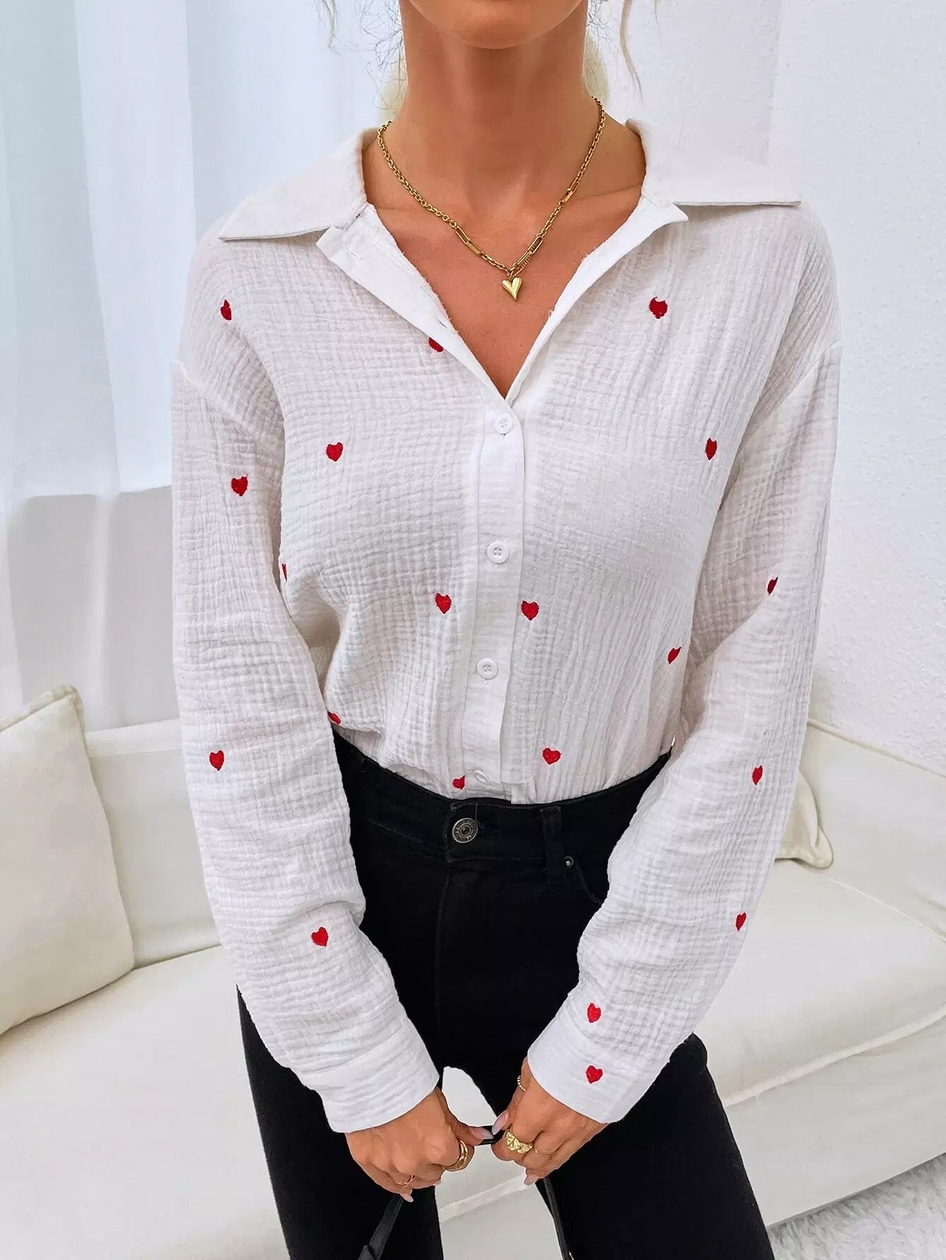 للنساء - قميص مطرز على شكل قلب منسدل الكتف