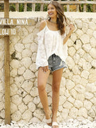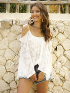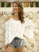 بلوزة بأكتاف باردة مزينة بالجاكار