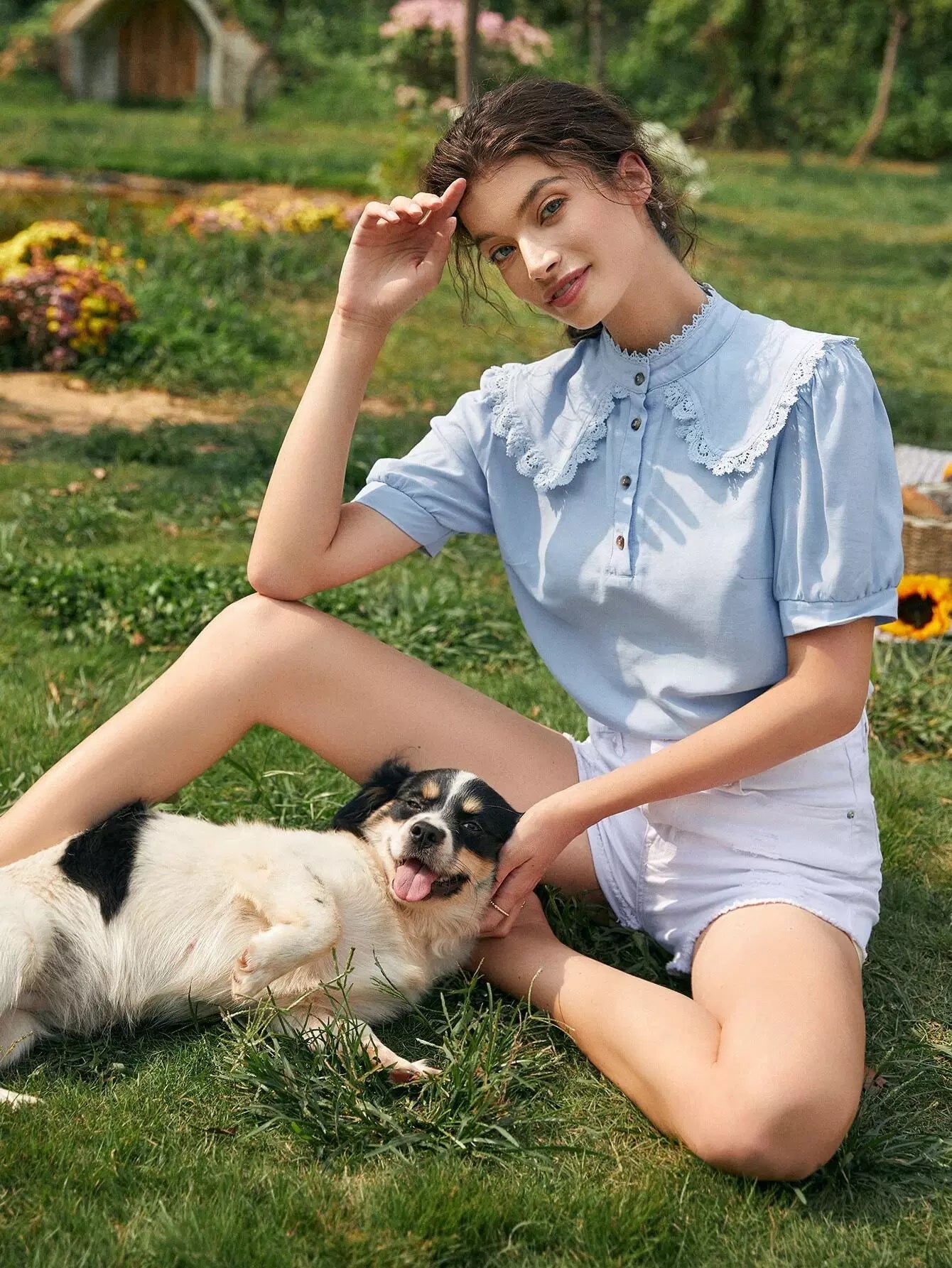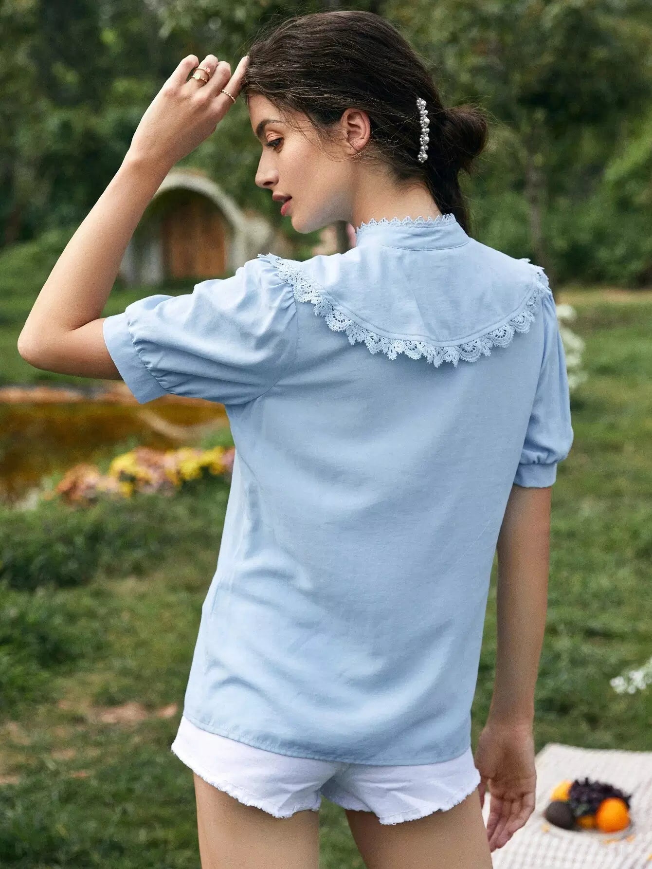 بلوزة بياقة بيتر بان وحواف من الدانتيل