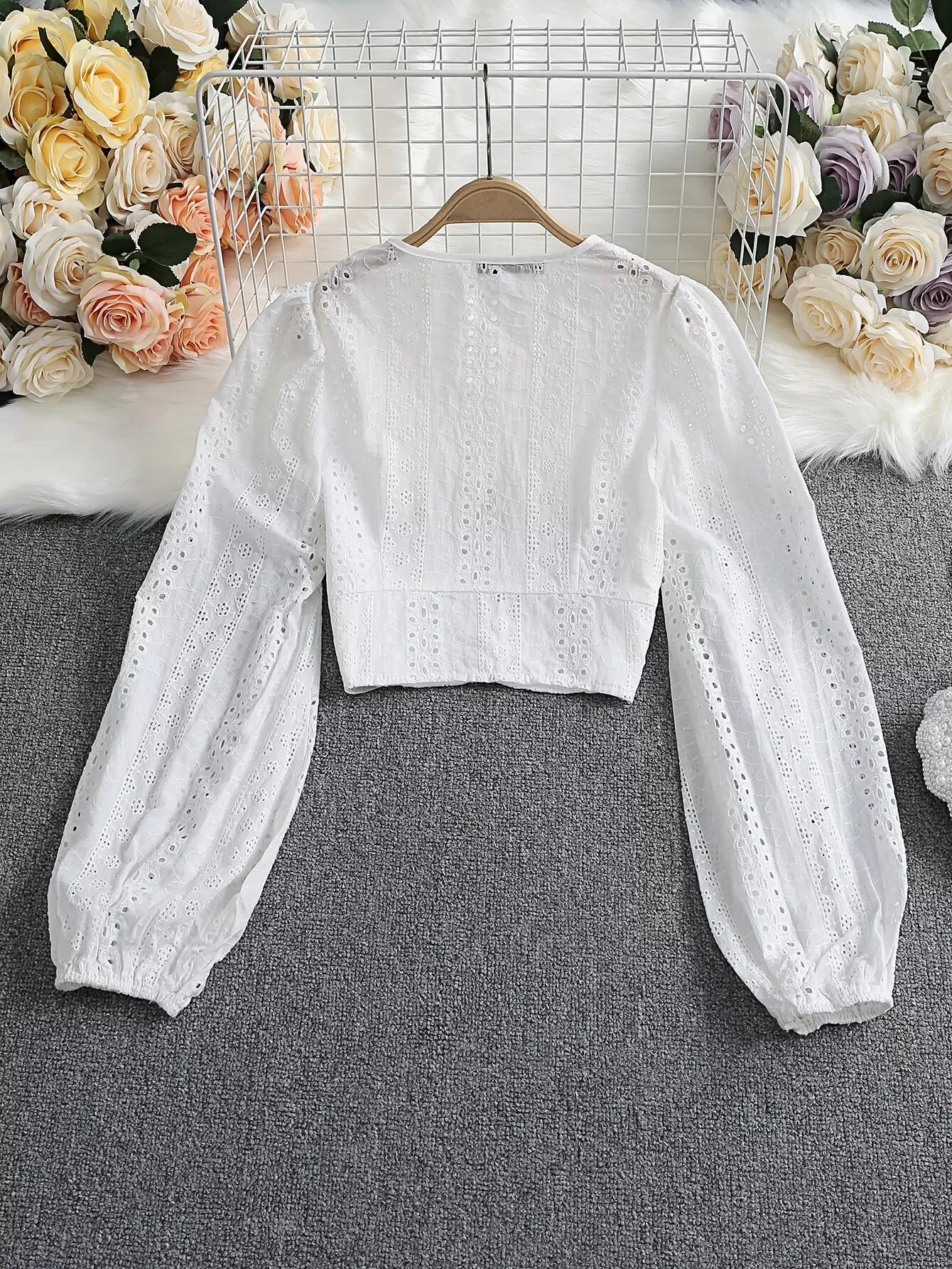 بلوزة بأكمام بأزرار أمامية بأزرار من الأمام