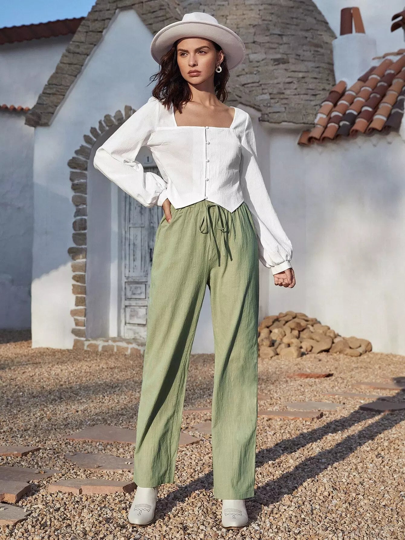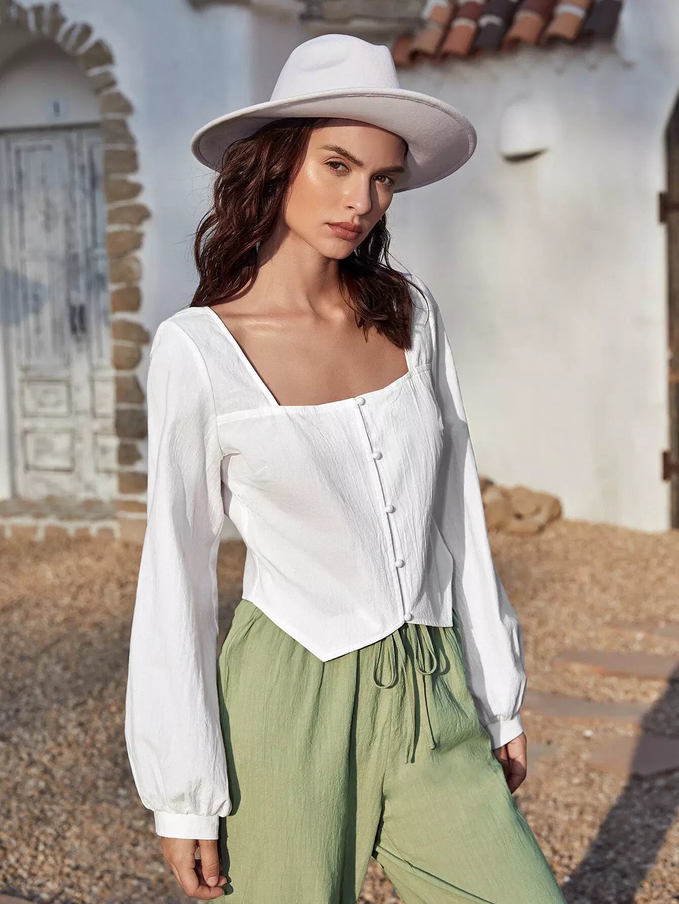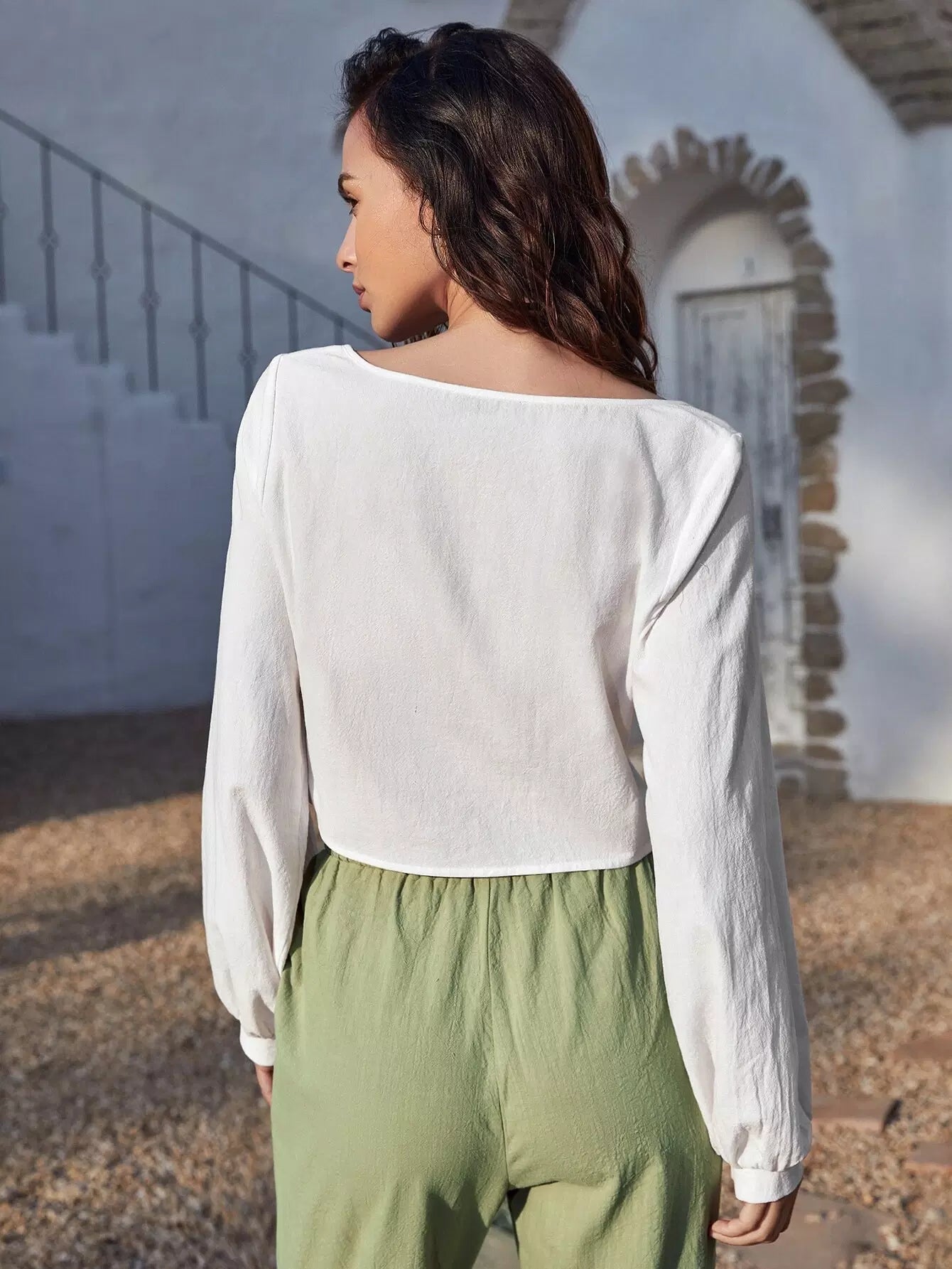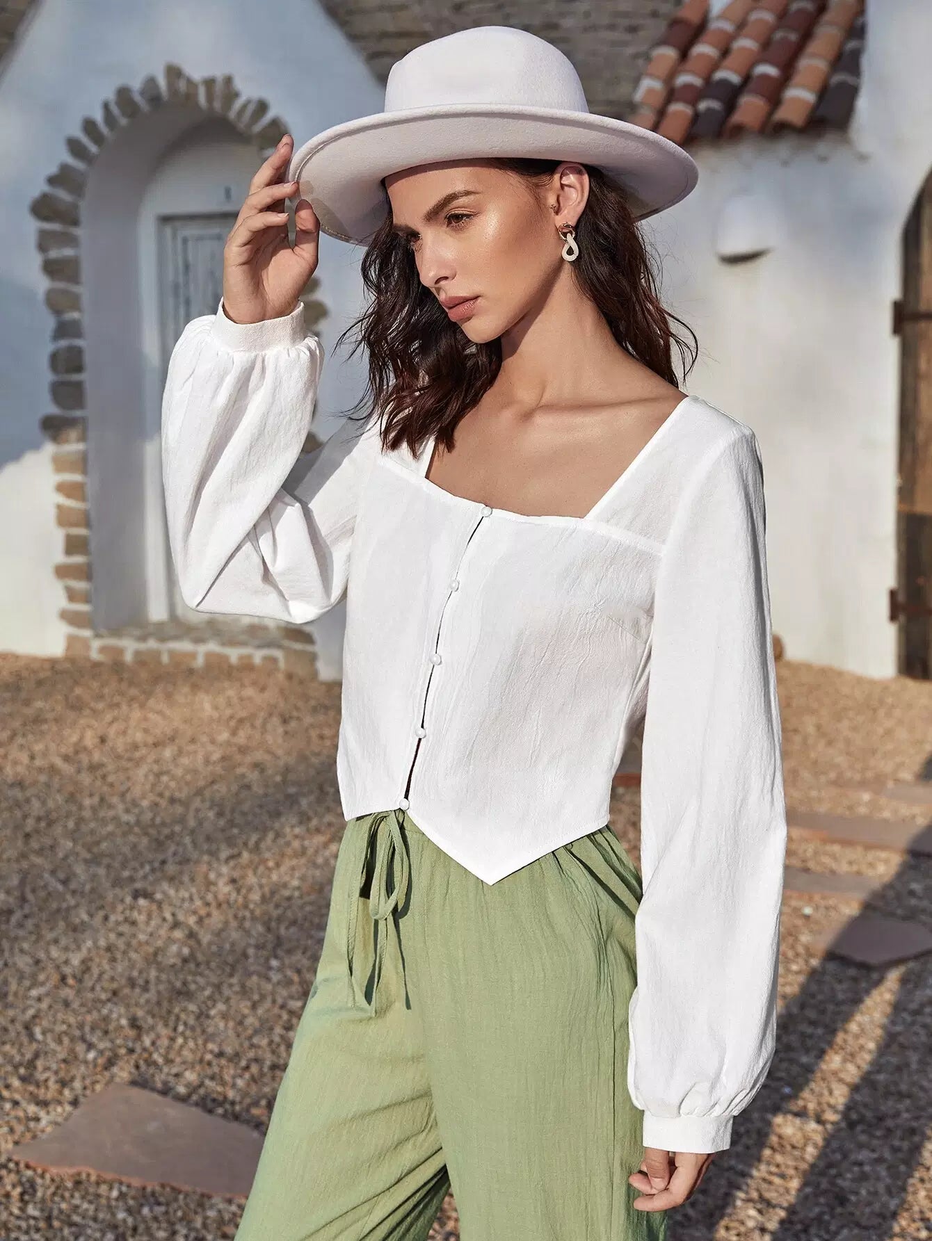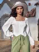 بلوزة سادة بأكمام بأزرار بأكمام فانوسية