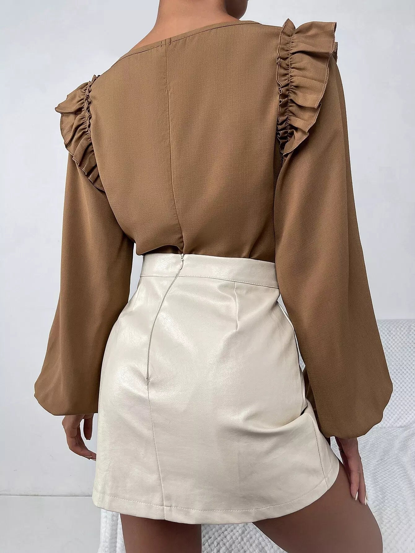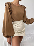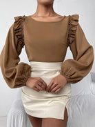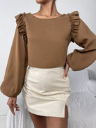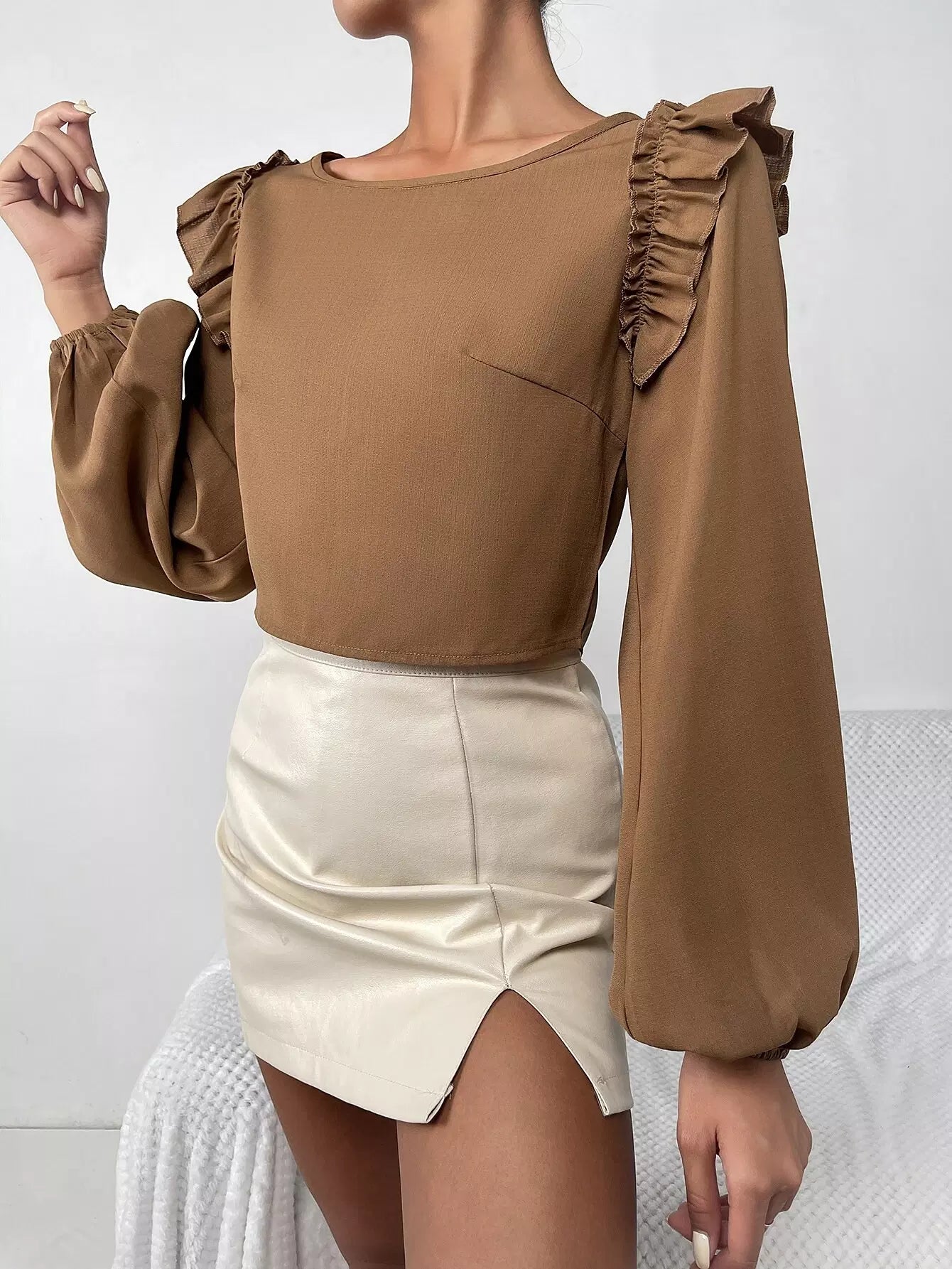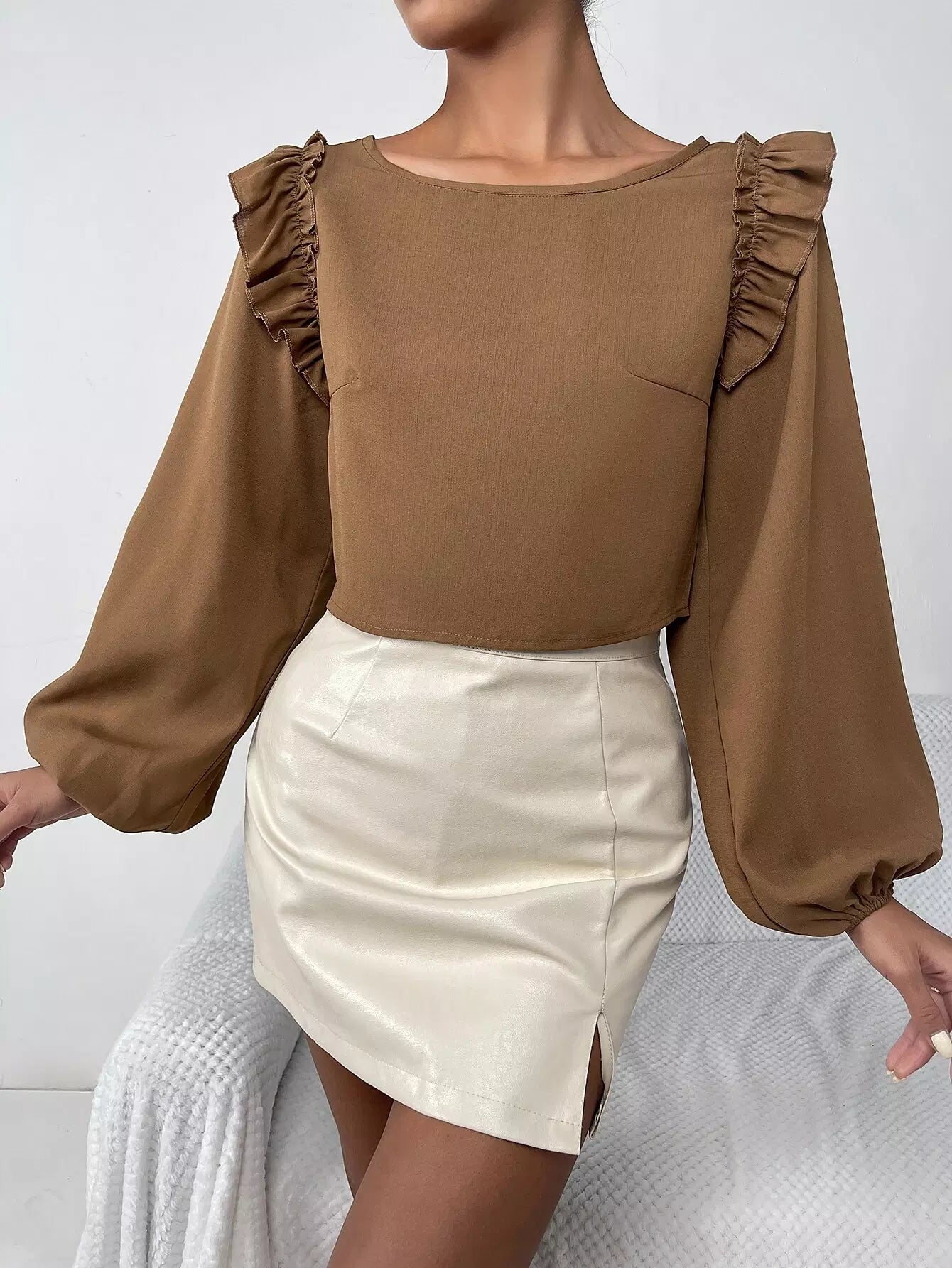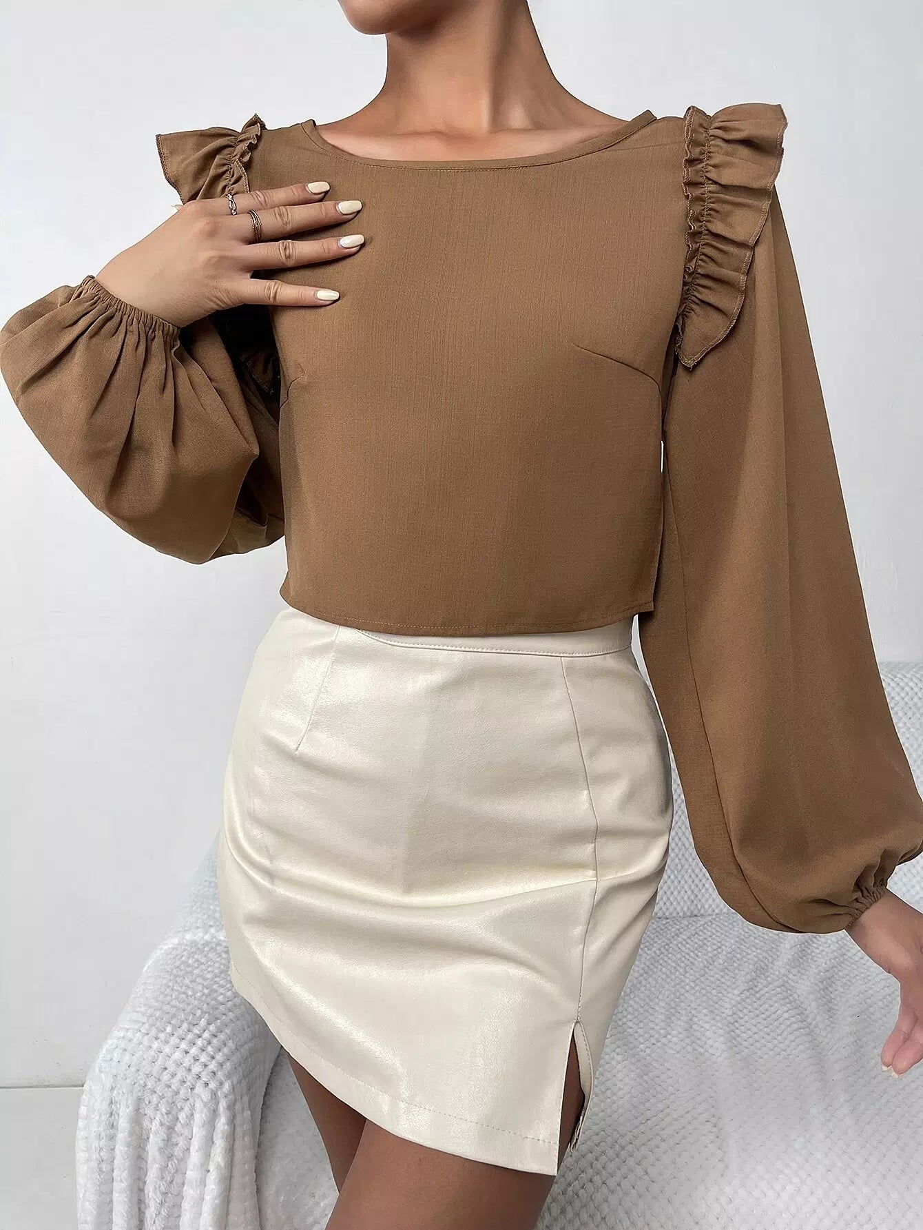 بلوزة بأكمام كشكش بأطراف مكشكشة من الفانوس