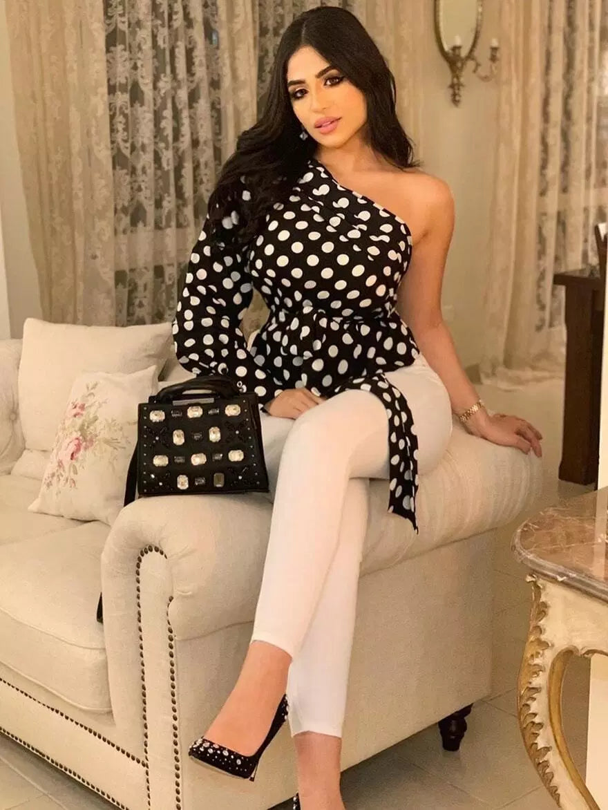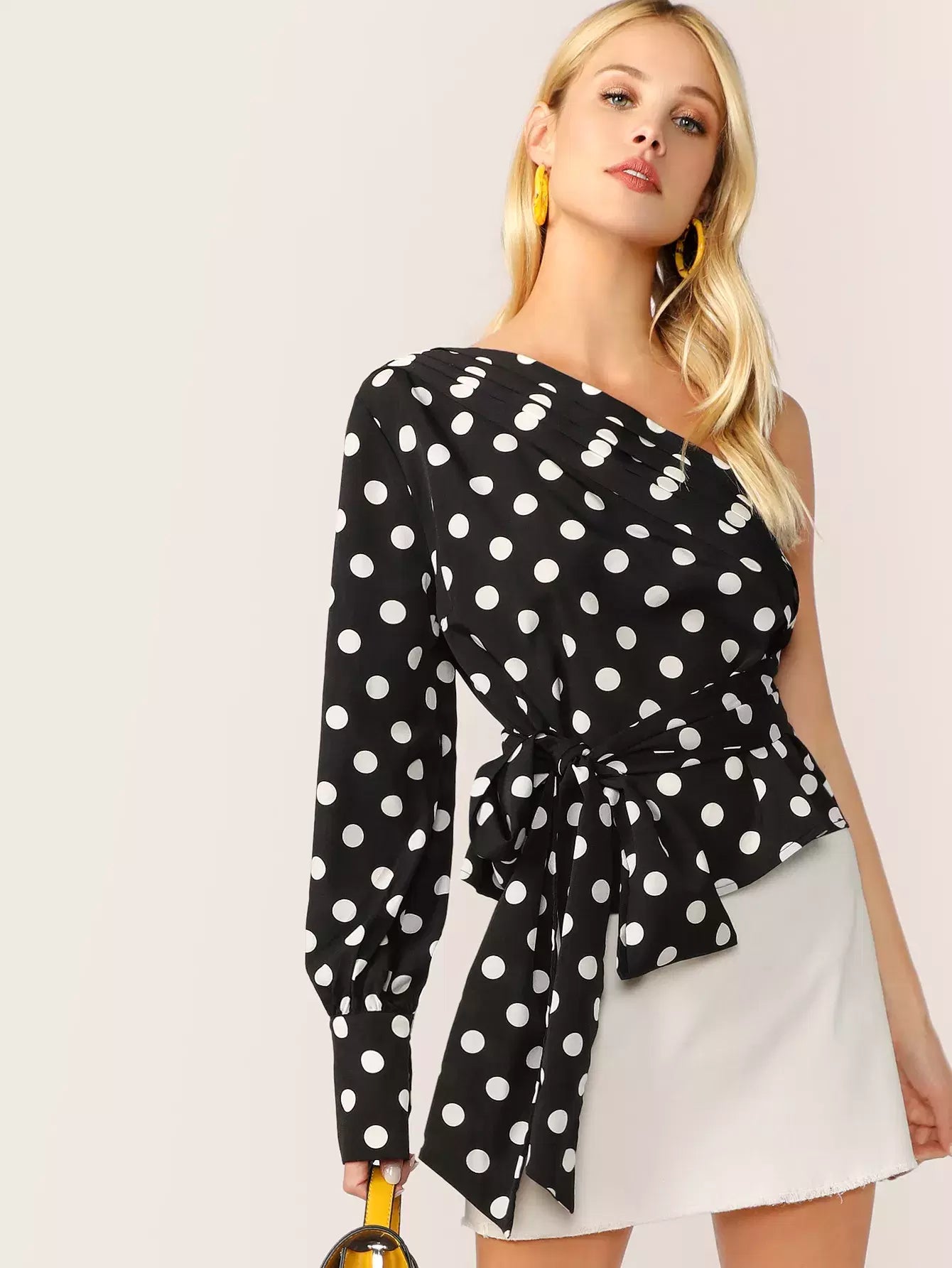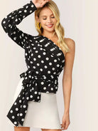 بلوزة ذات طبقات قابلة للطي بكتف واحد بدون حزام
