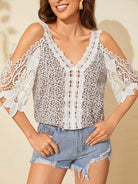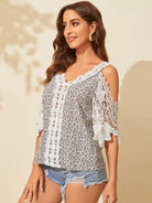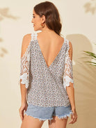 بلوزة مكشوفة الكتفين من الدانتيل المتباين بنقشة جلد النمر