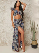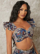 بلوزة قصيرة بفتحة صدر مكشكشة مكشكشة بفتحة صدر مكشكشة بطبعة جلد النمر ونقشة بيزلي