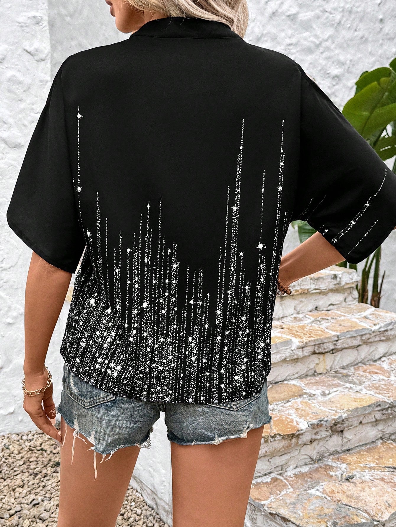LUNE Spring Sequin & Digital Print Hollow Sleeve Blouse