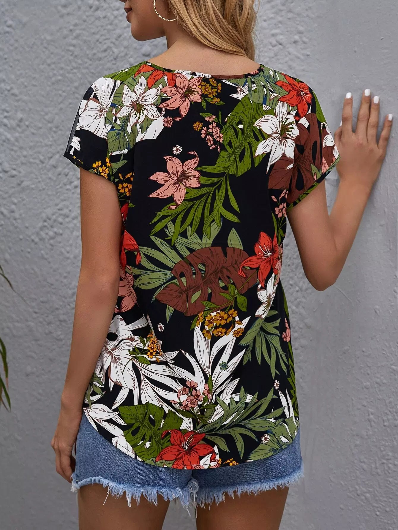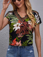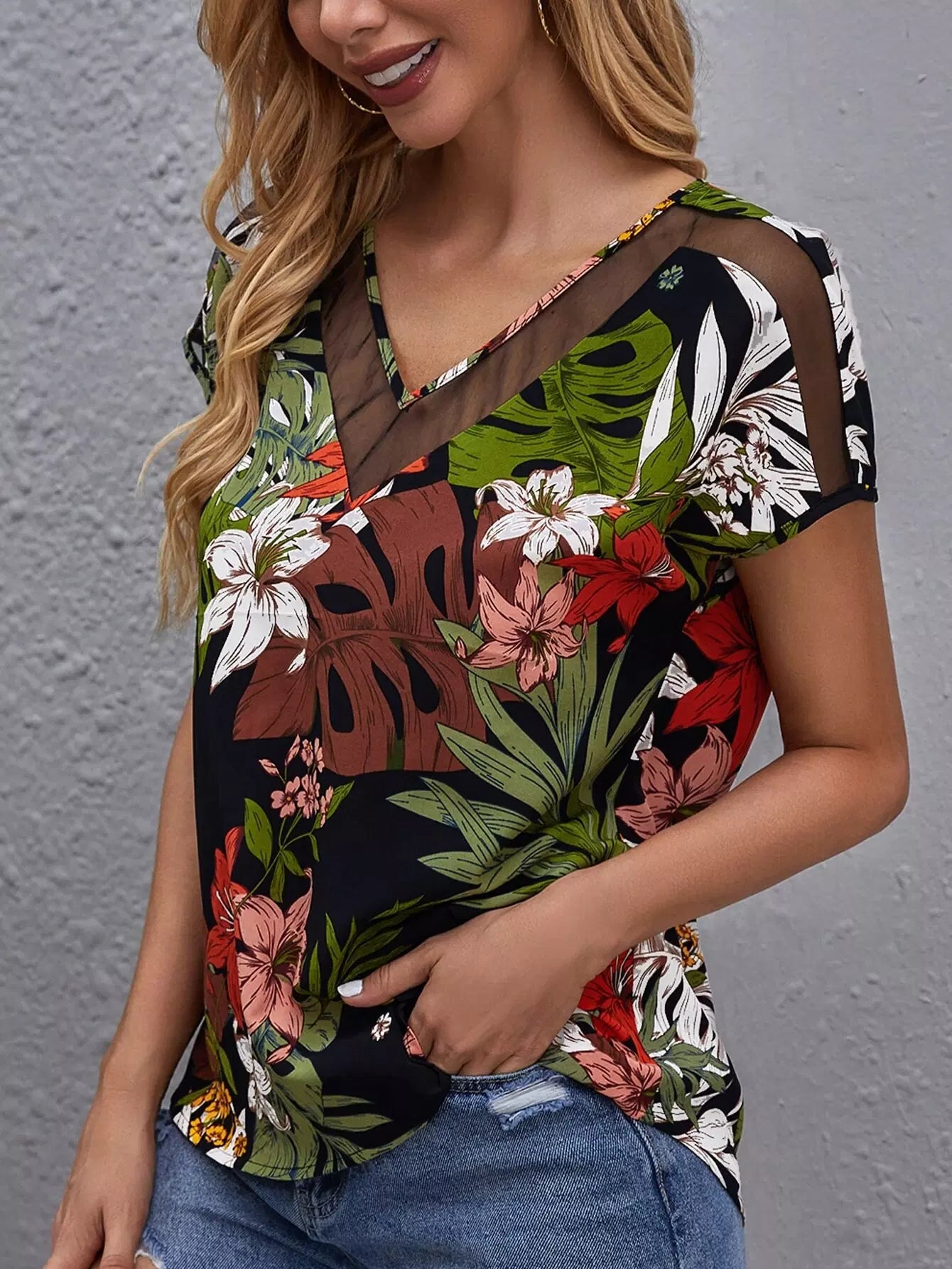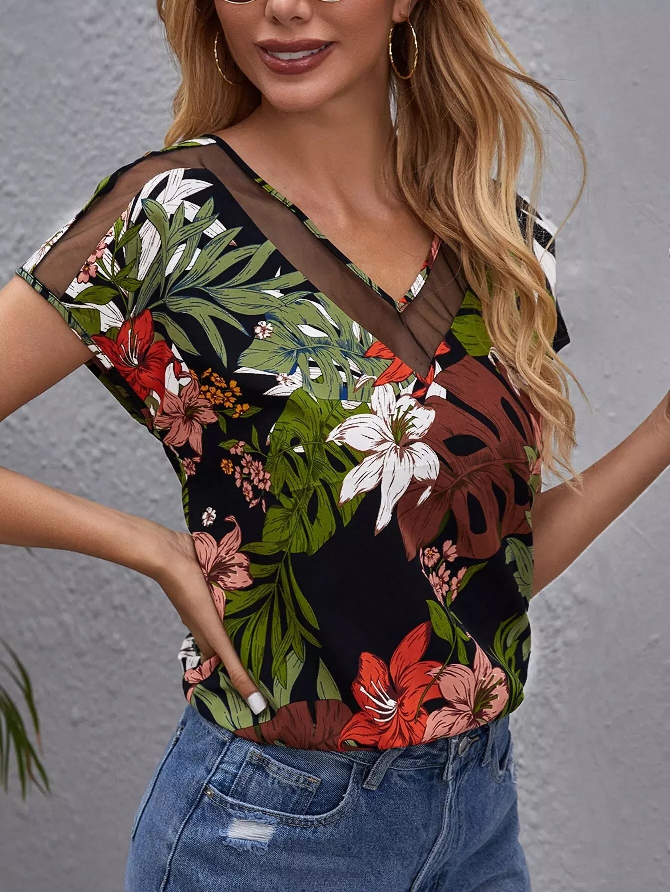 بلوزة بطبعة استوائية مع حشوة شبكية