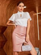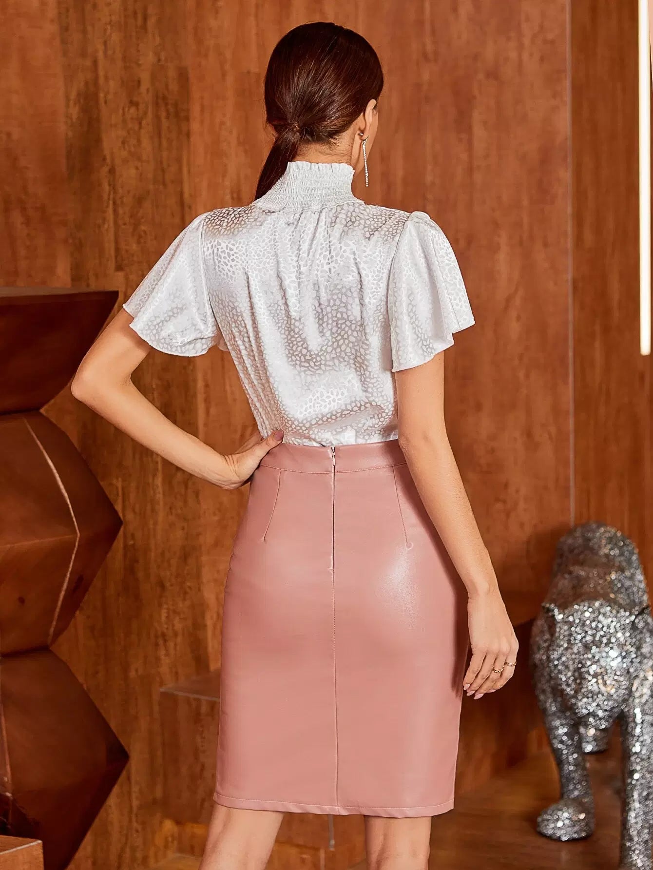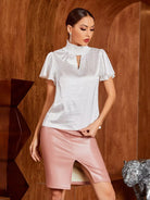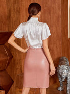 بلوزة ساتان بأكمام من الساتان برقبة وهمية على شكل فراشة