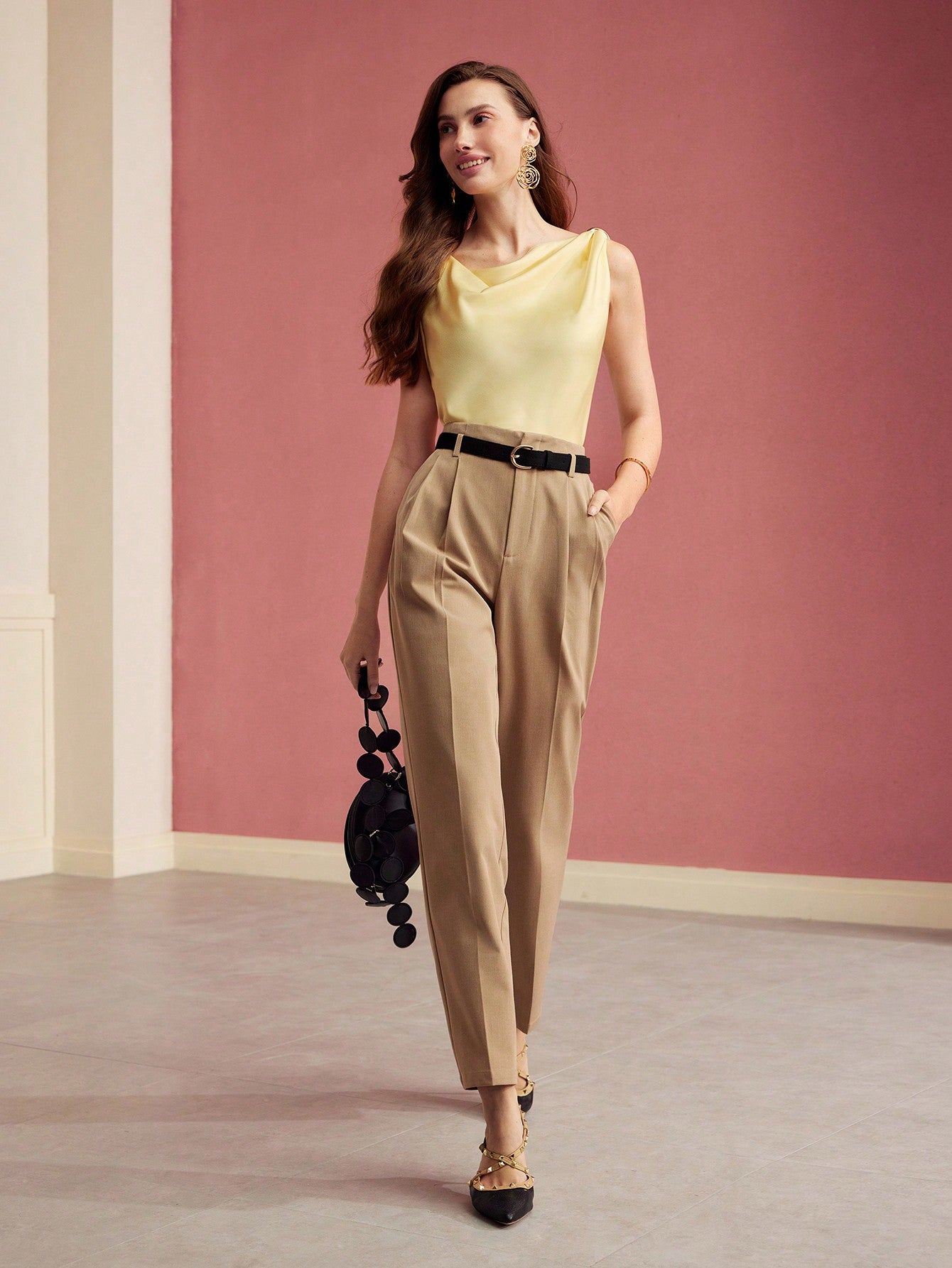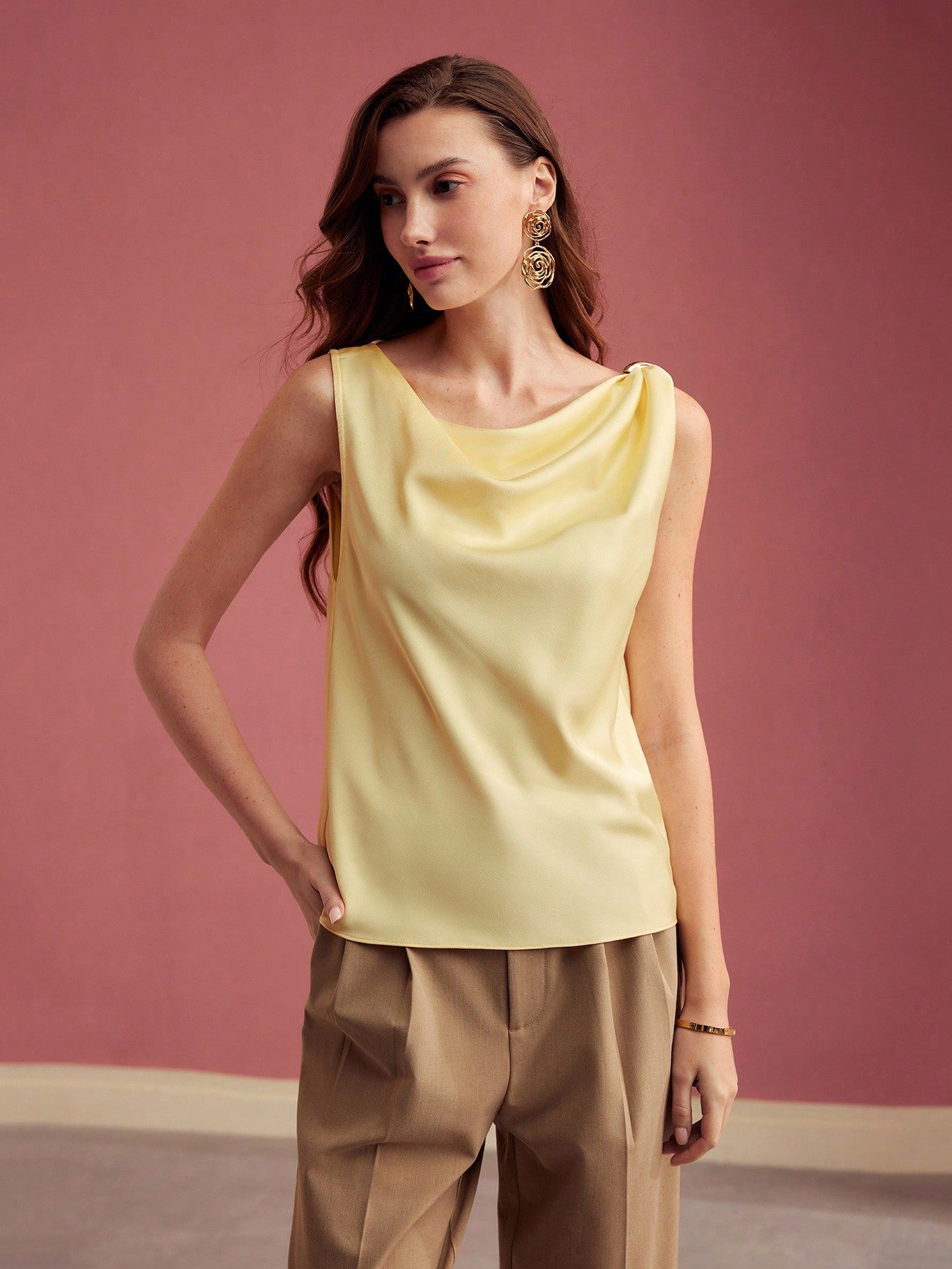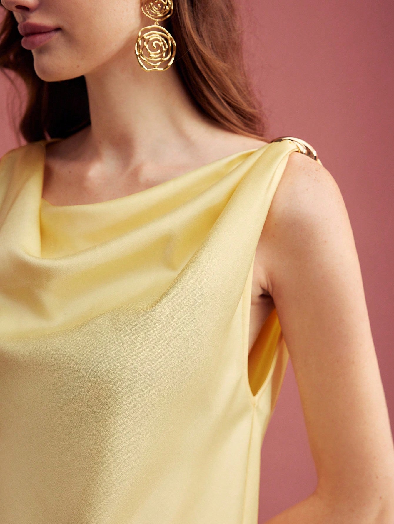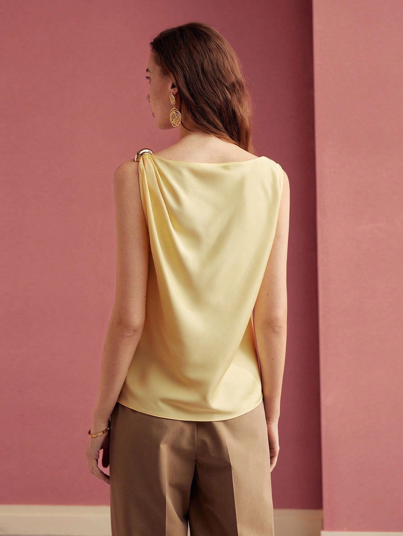 MOTF PREMIUM COWL NECK METAL DETAIL SLEEVELESS BLOUSE,VALENTINE'S DAY