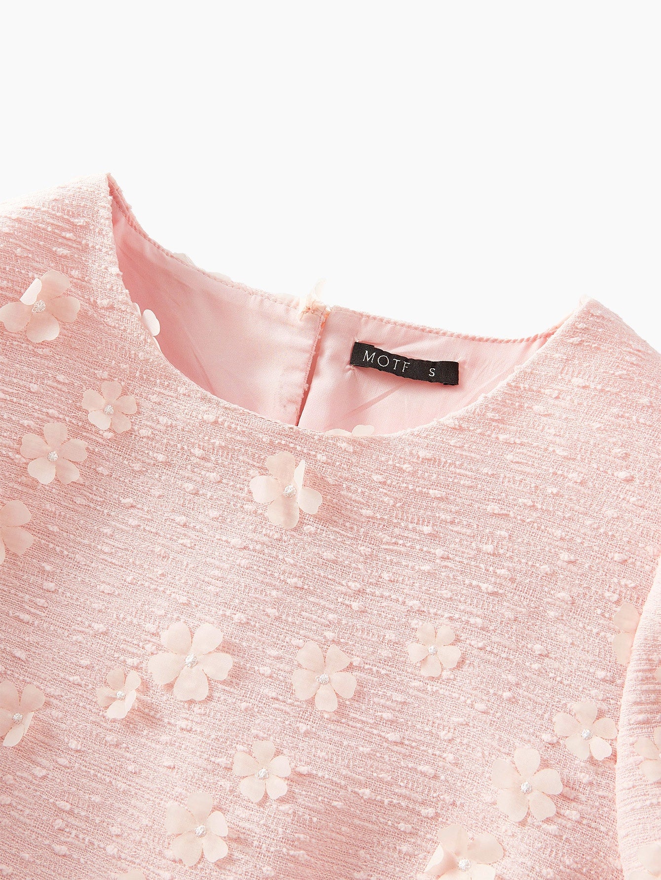 بلوزة MOTF PREMIUM FLORA APPLIQUES بأكمام قصيرة