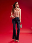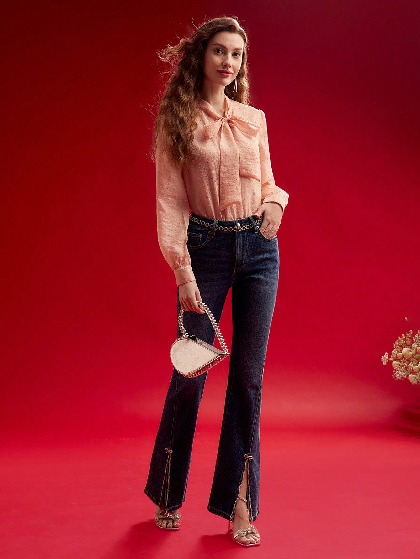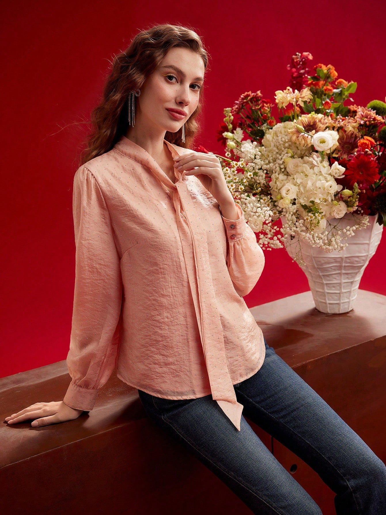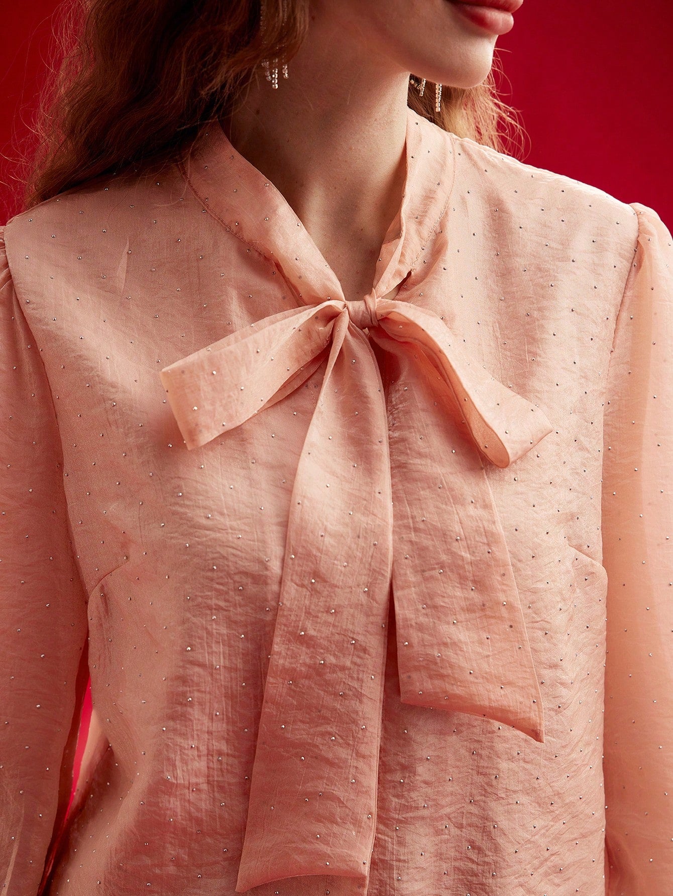 MOTF PREMIUM RHINESTONE DETAIL TIE NECK BLOUSE,SPRING/SUMMER