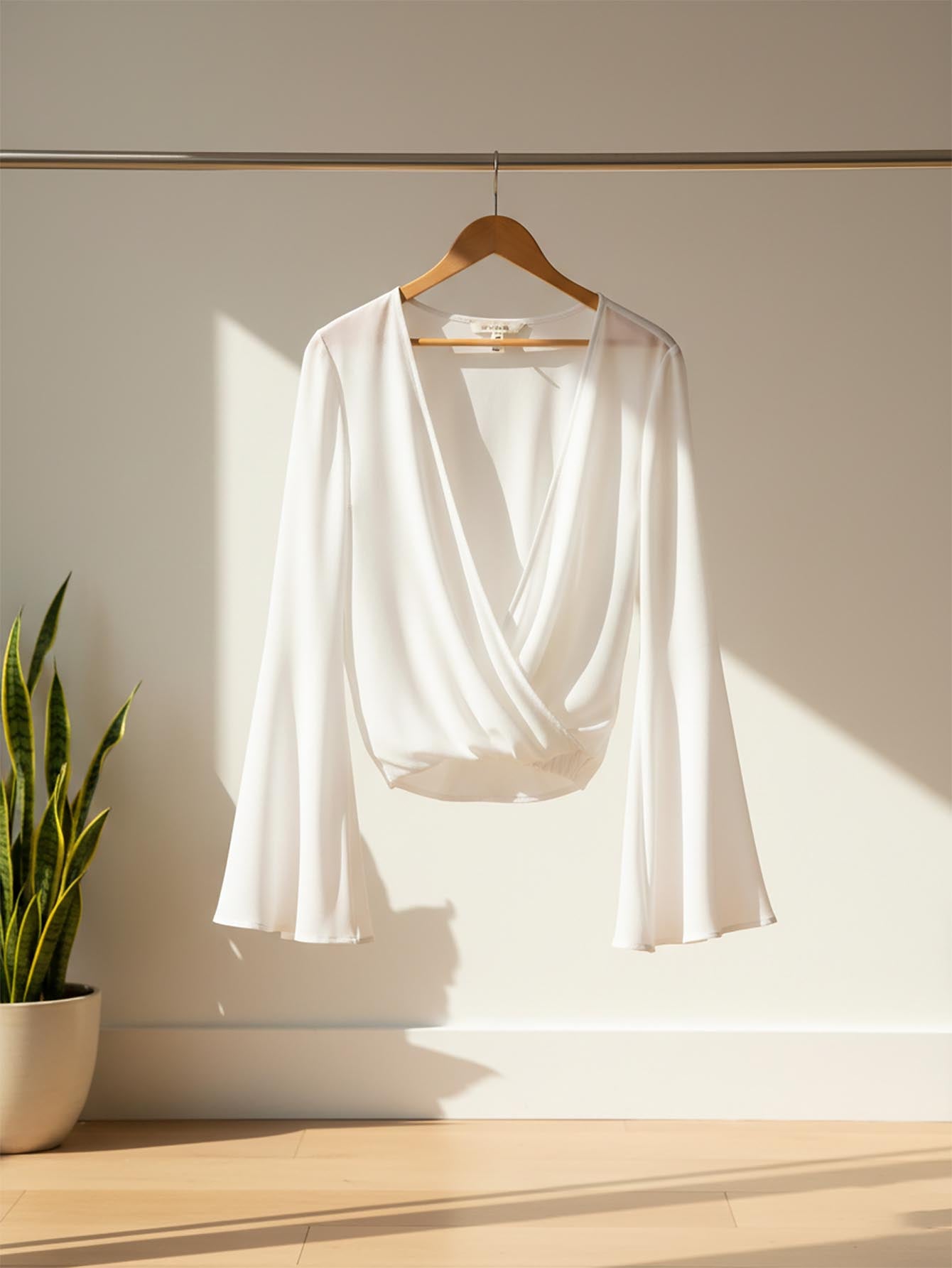 بلوزة موسيرا بأكمام طويلة شفافة بفتحة صدر عميقة للغاية، بقصة مريحة، مثالية لعطلات إيبيزا، ولإطلالة جذابة على الشاطئ، ولمهرجانات الشاطئ في الجزيرة البيضاء، ولعطلات الغرب الأمريكي، وللخروج والحفلات، ولخريف وشتاء وعيد الميلاد.