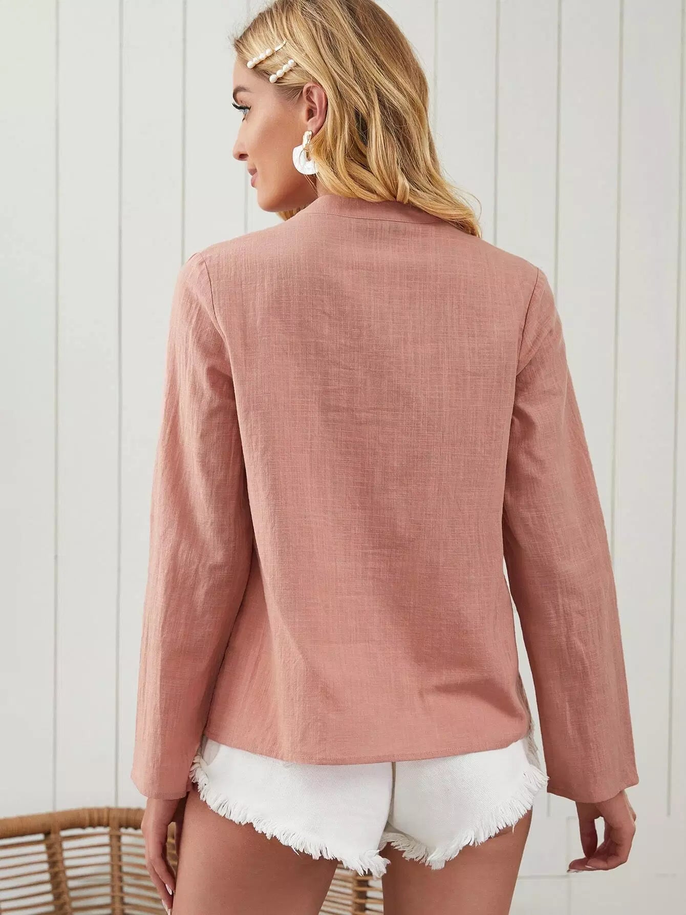 بلوزة بفتحة رقبة وأكمام ملفوفة