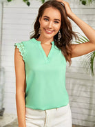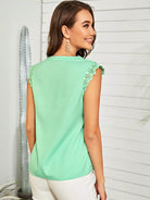 بلوزة بحواف من الدانتيل وفتحة رقبة
