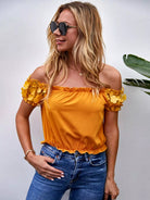 النساء - بلوزة مزينة بكشكشة مكشوفة الكتفين