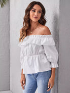 للنساء - بلوزة بيبلوم بدون أكتاف مكشكشة