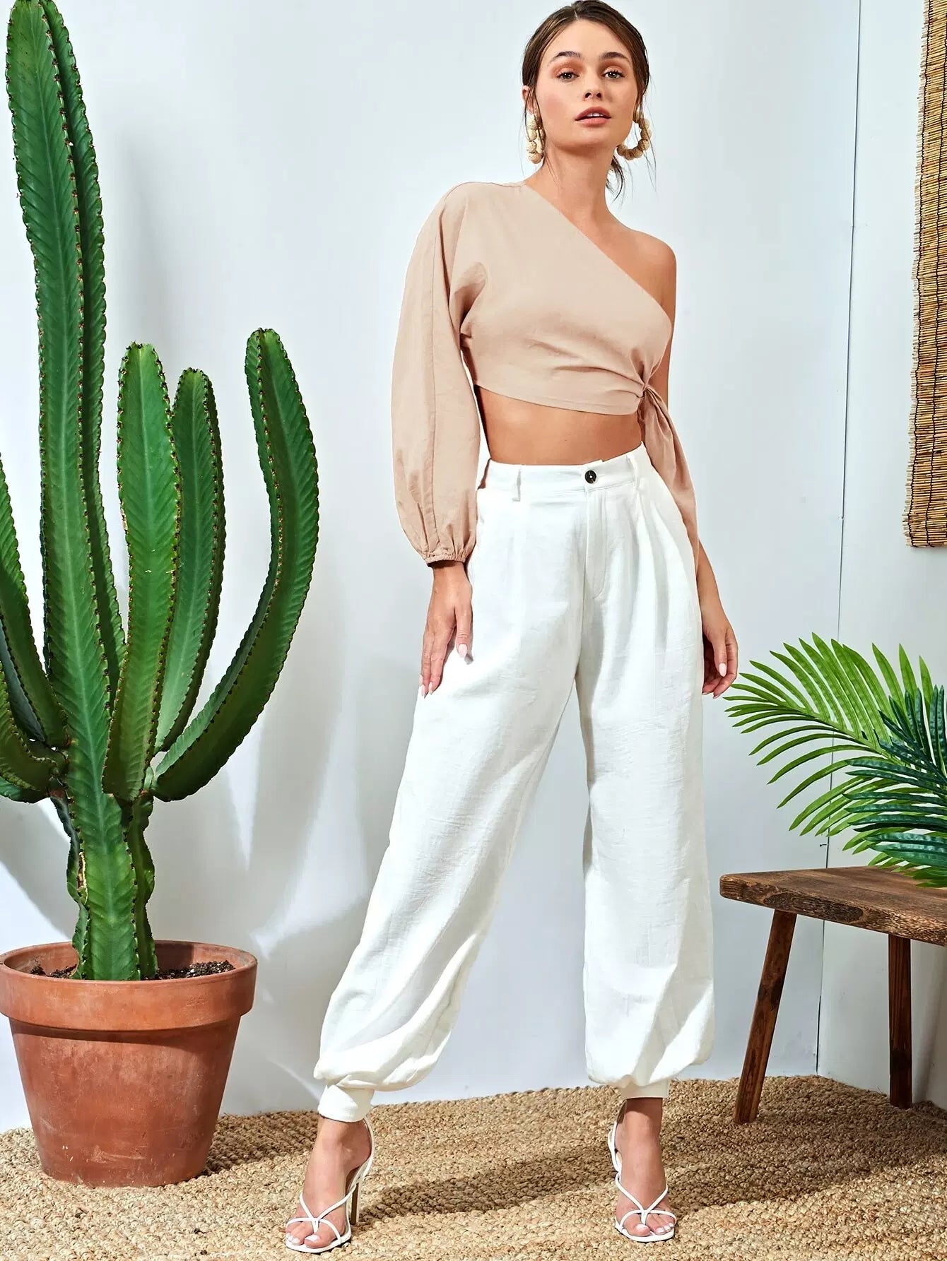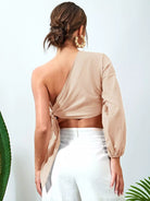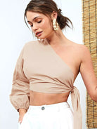 بلوزة قصيرة بكتف واحد مع عقدة جانبية على كتف واحد