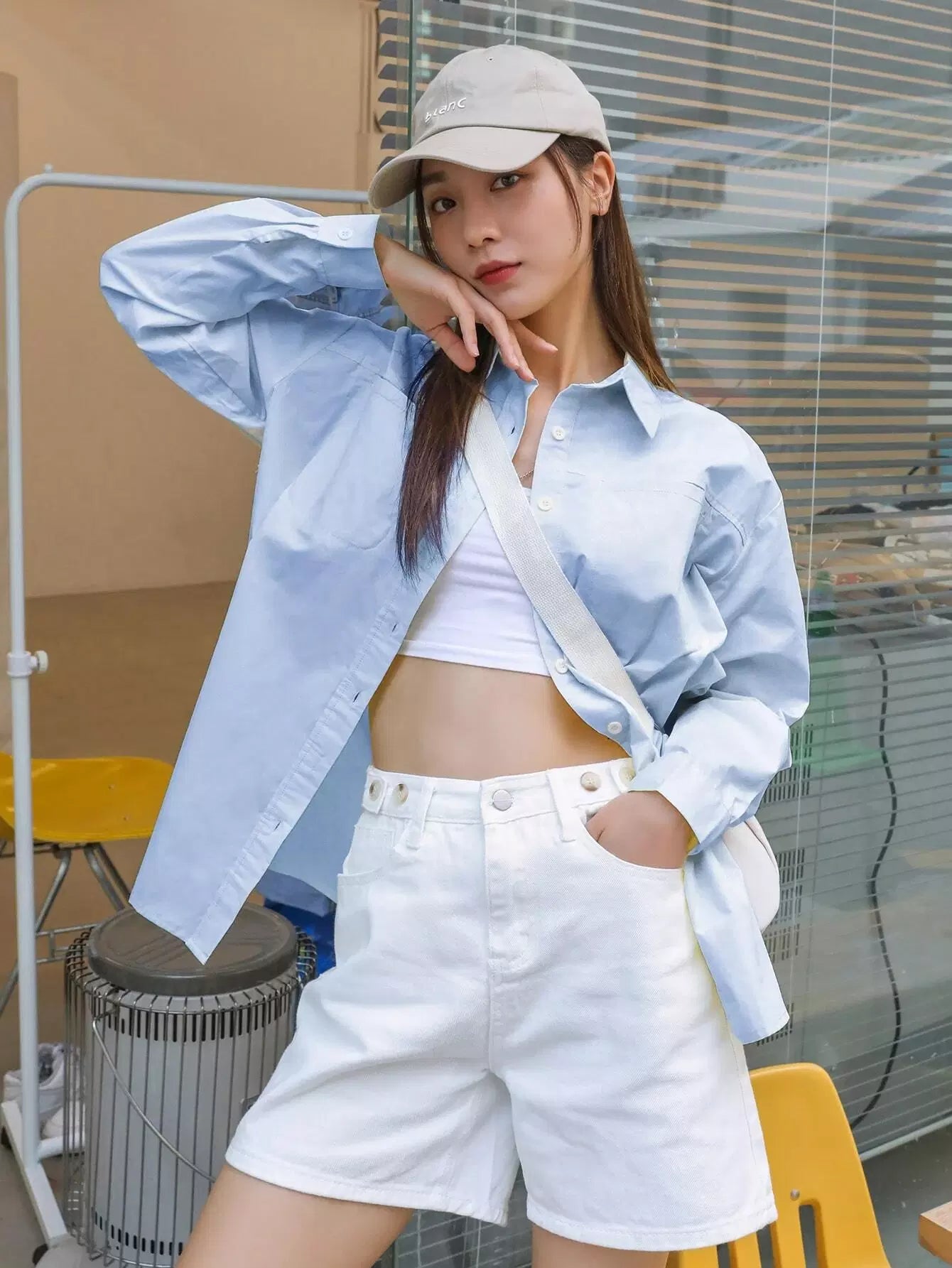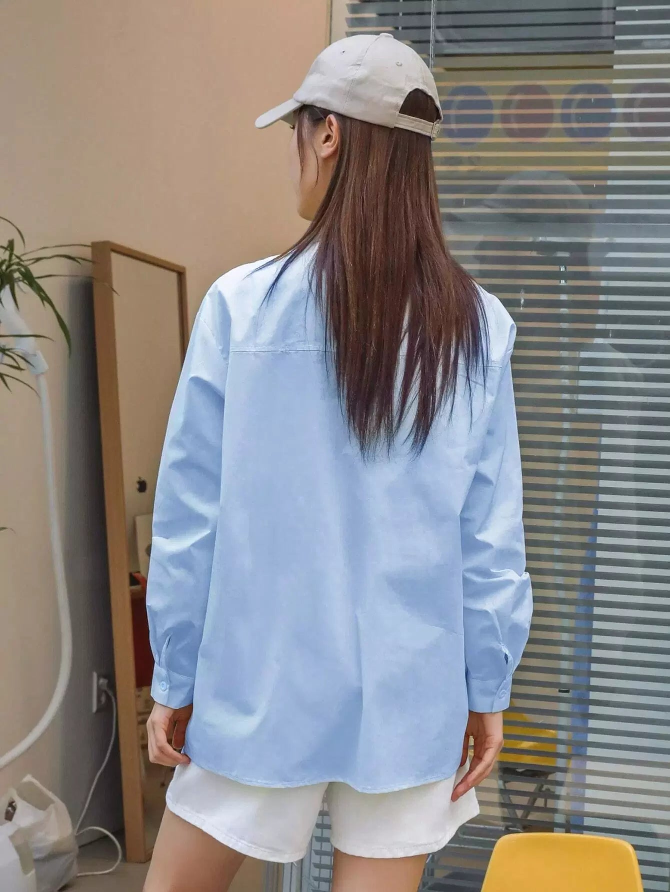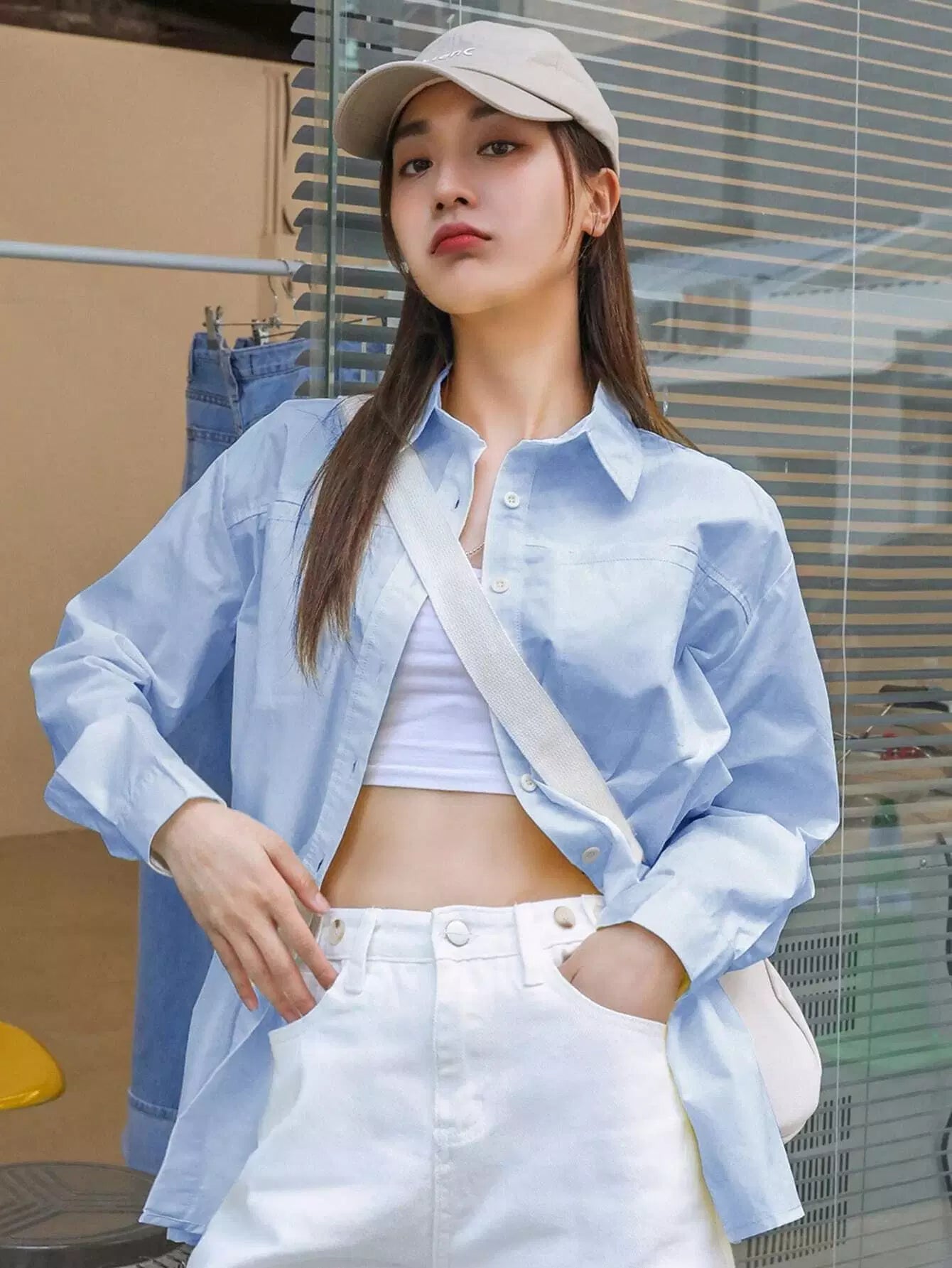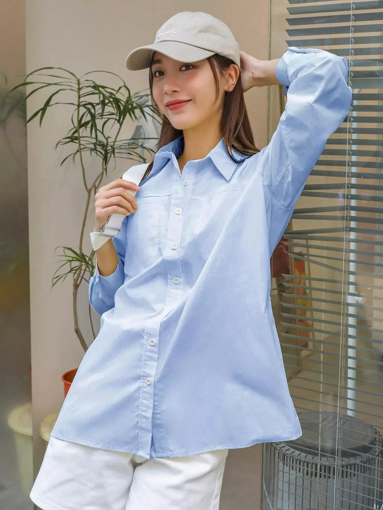 قميص كبير الحجم بأزرار أمامية وأكتاف منسدلة