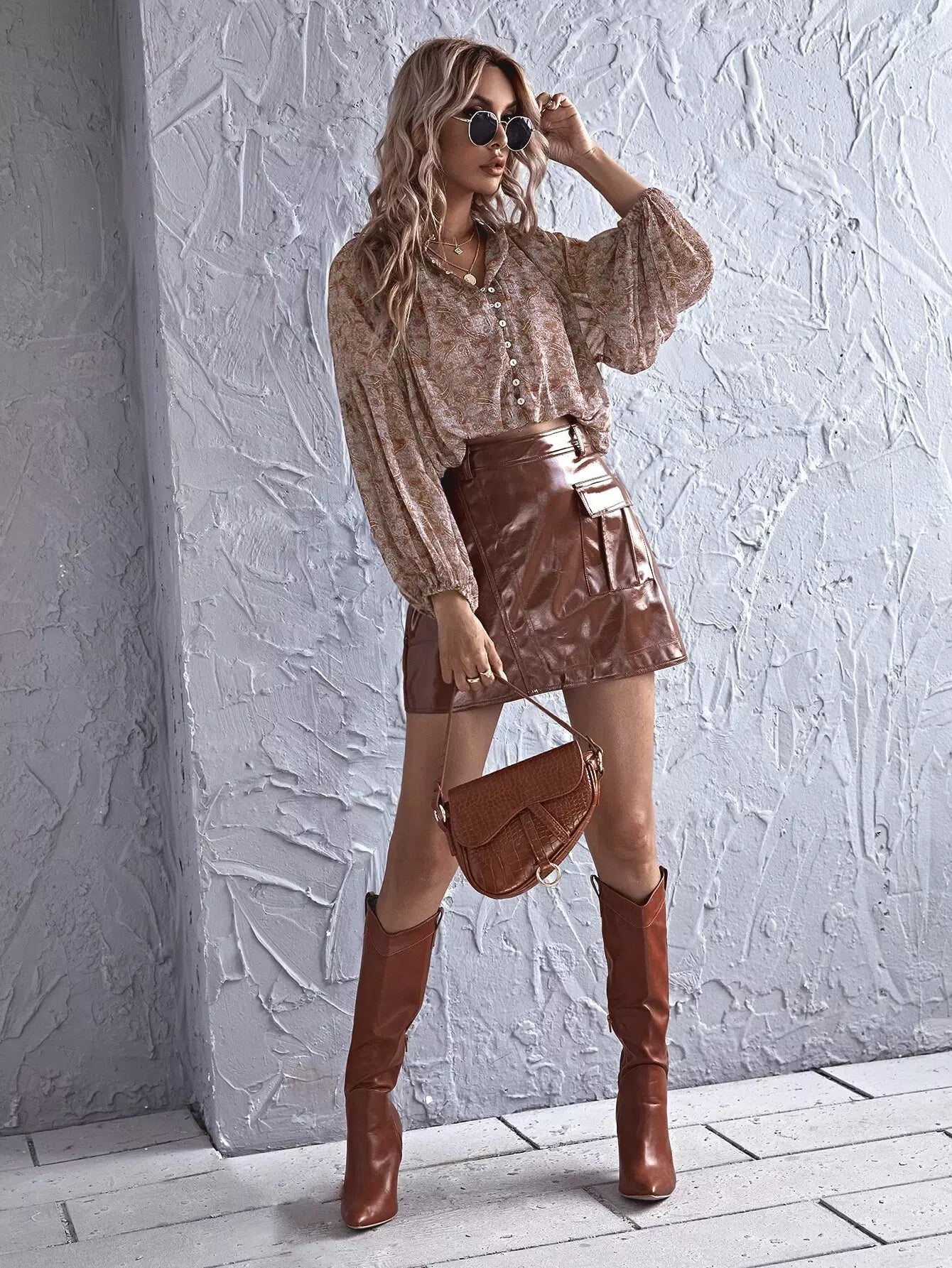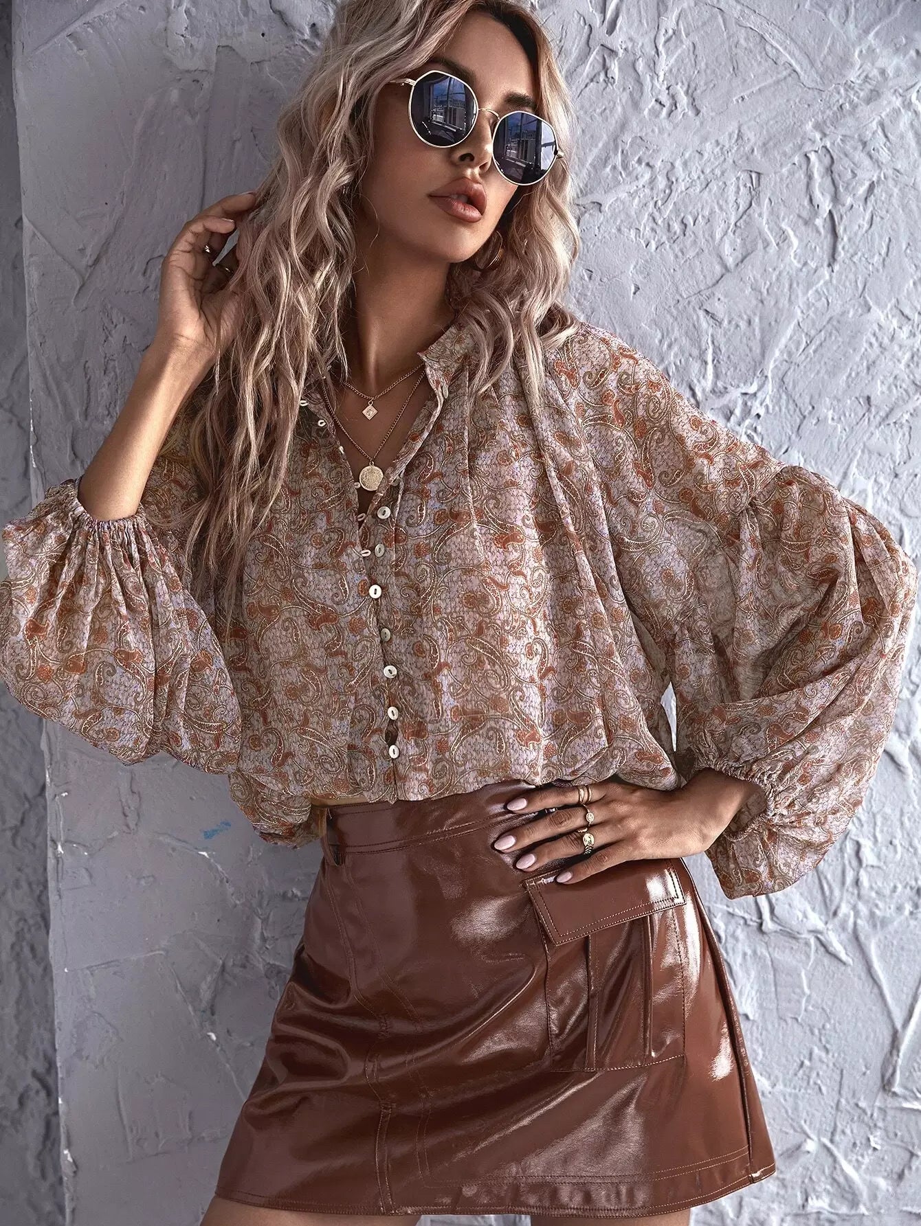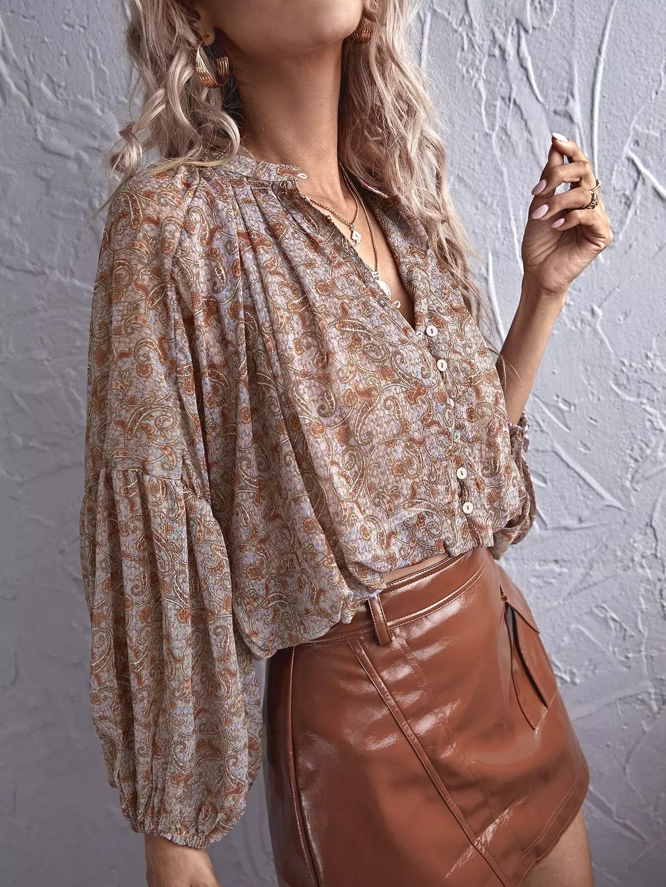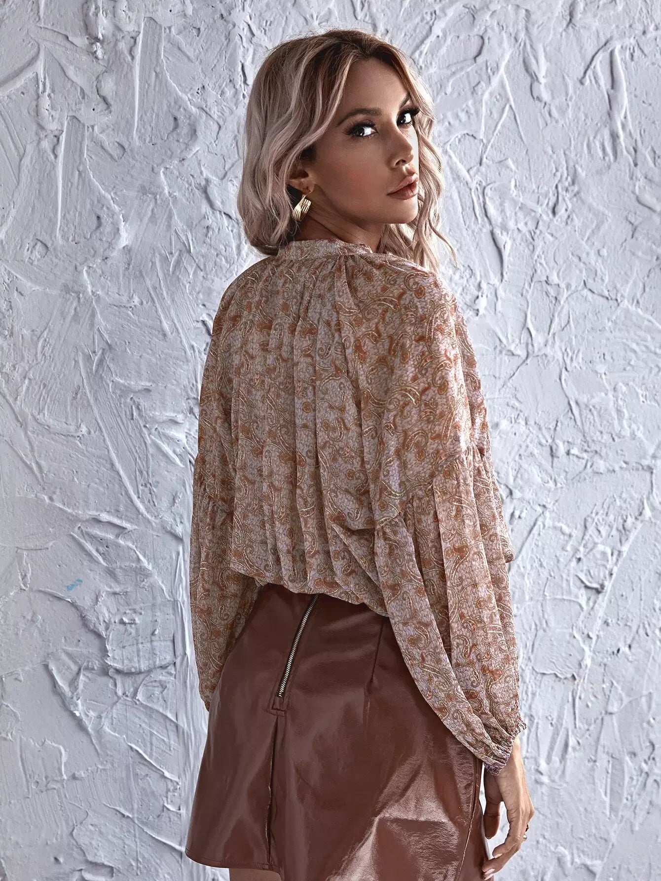 بلوزة قصيرة منسدلة الكتفين مطبوعة بطبعة بيزلي