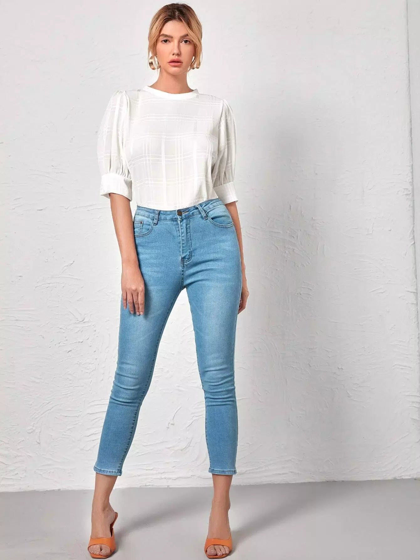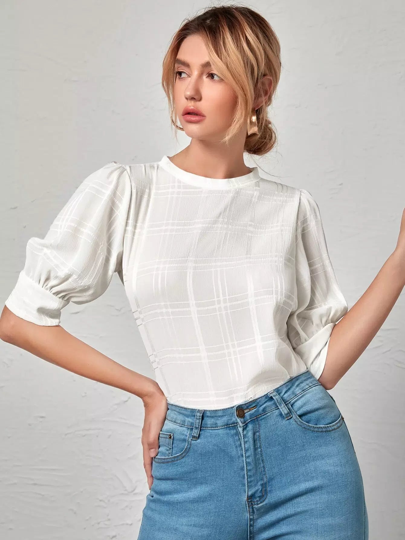 بلوزة منقوشة منقوشة بأكمام منفوشة بفتحة ظهر منفوشة