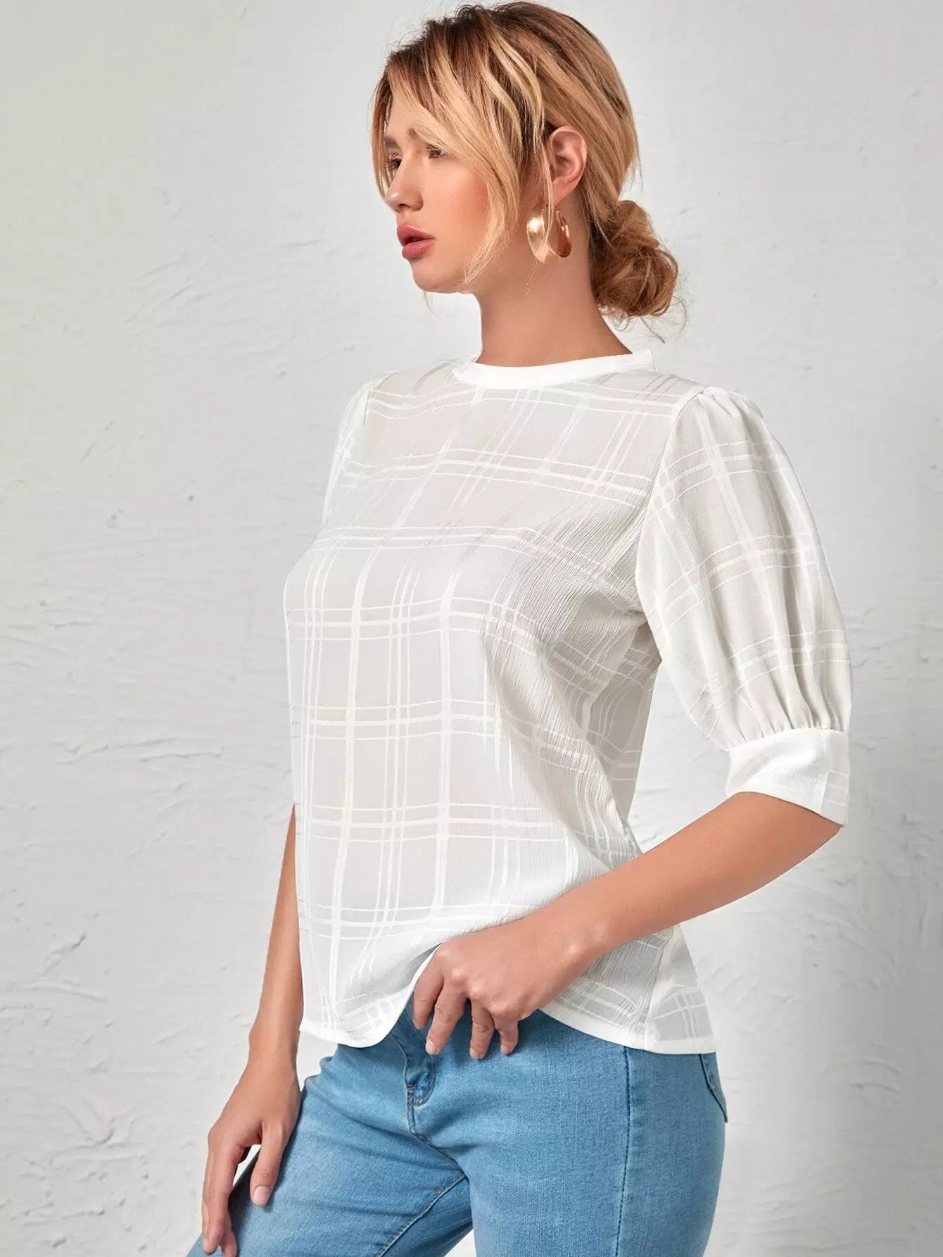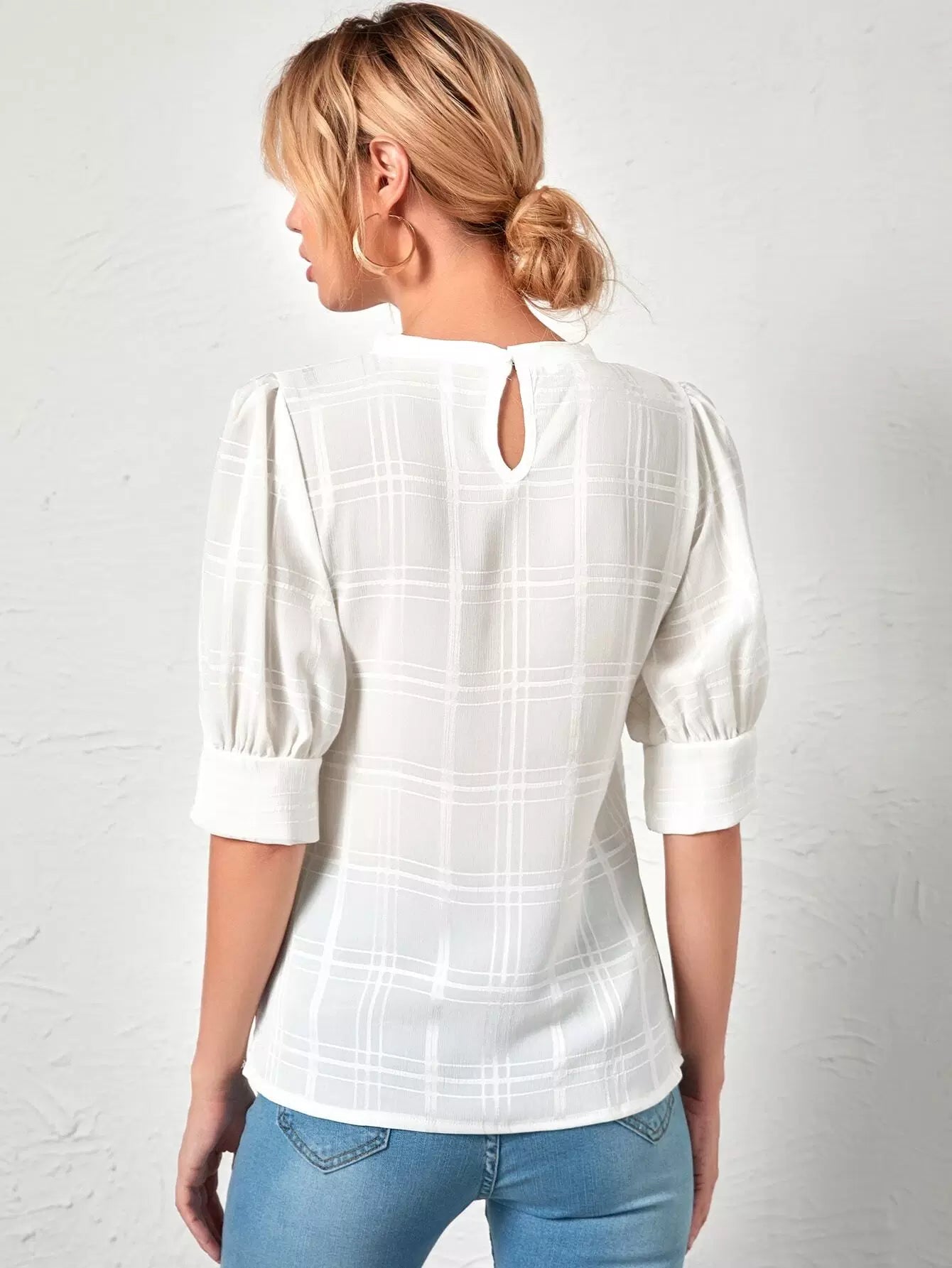 للنساء - بلوزة منقوشة ذات أكمام منتفخة وفتحة خلفية