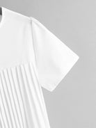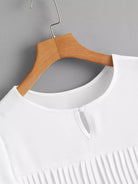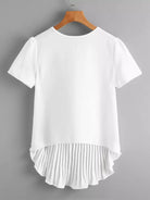 للنساء - بلوزة سادة ذات ثنيات وحاشية مرتفعة ومنخفضة