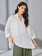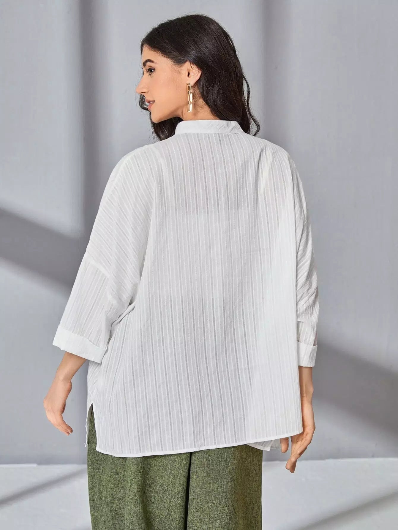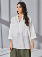 بلوزة شفافة ذات ياقة قائمة وجيب أمامي
