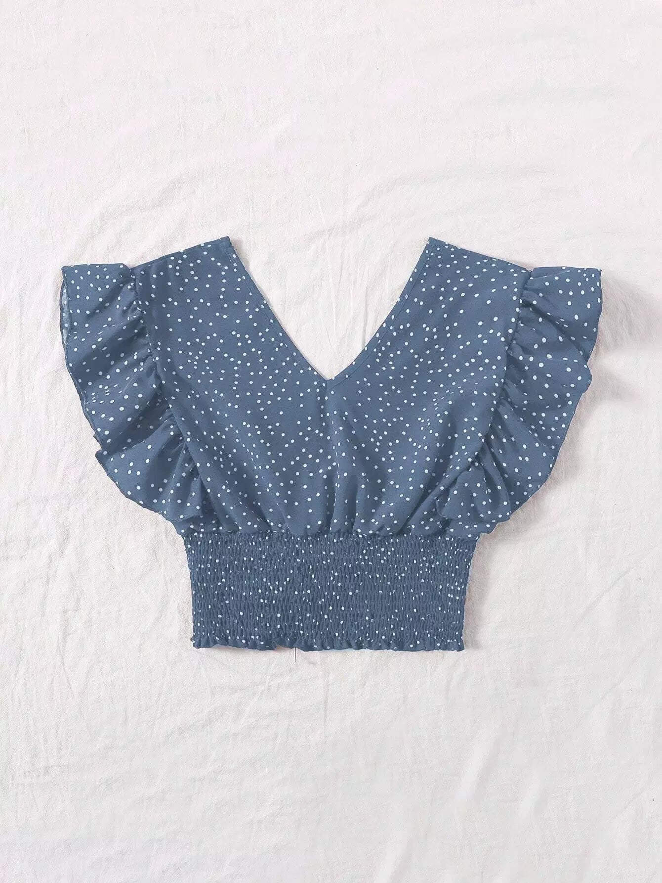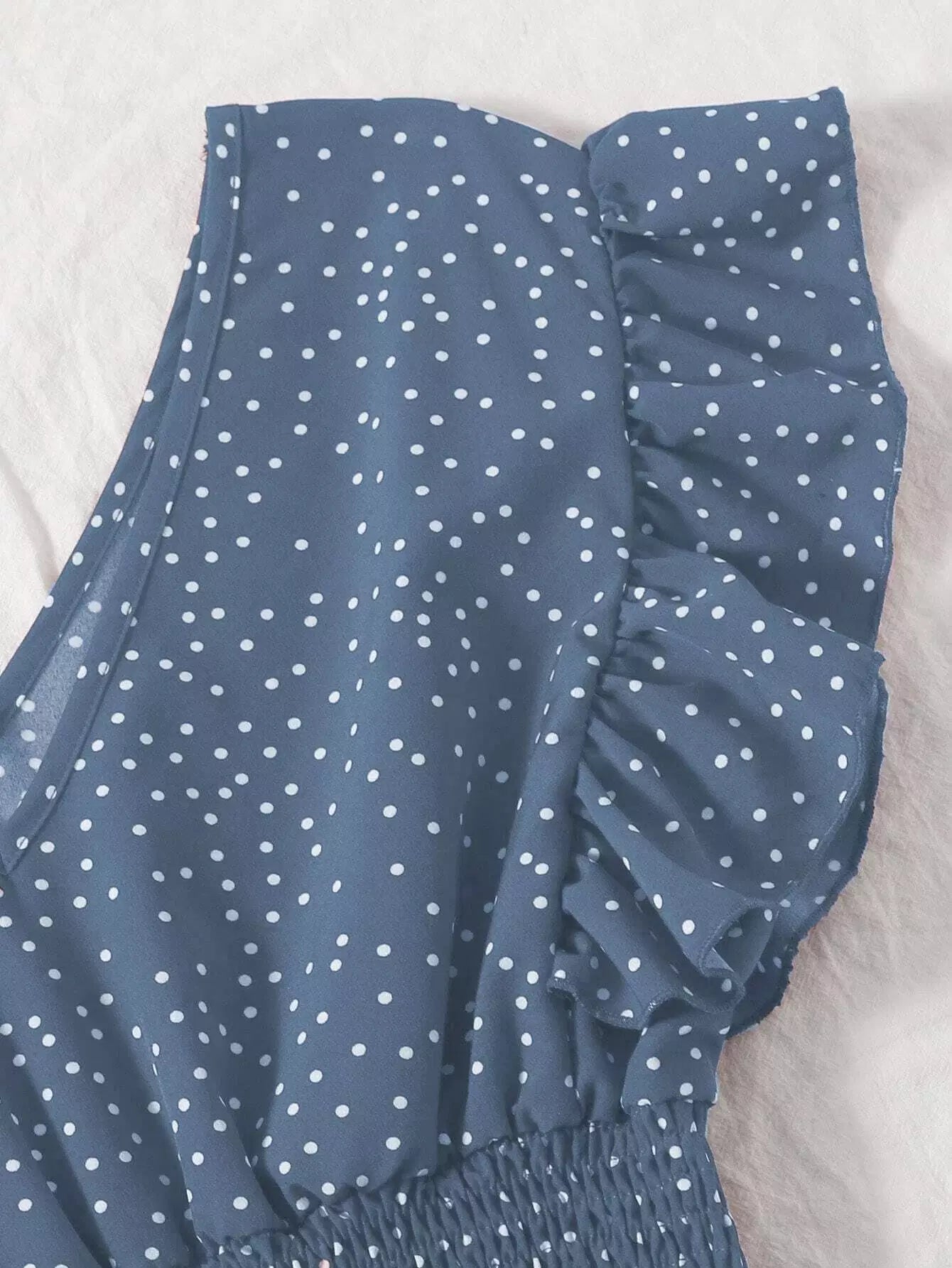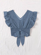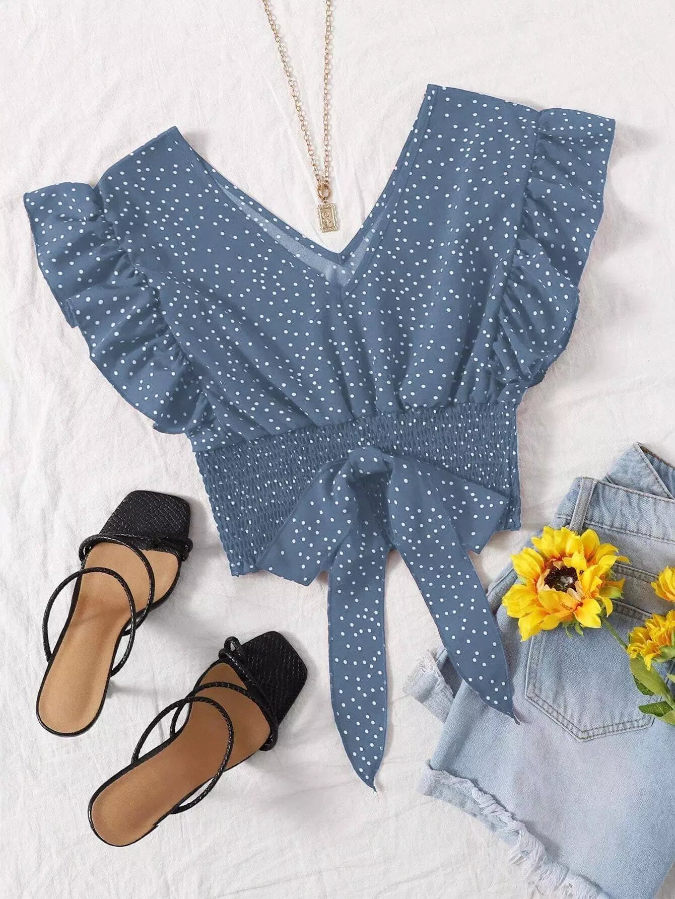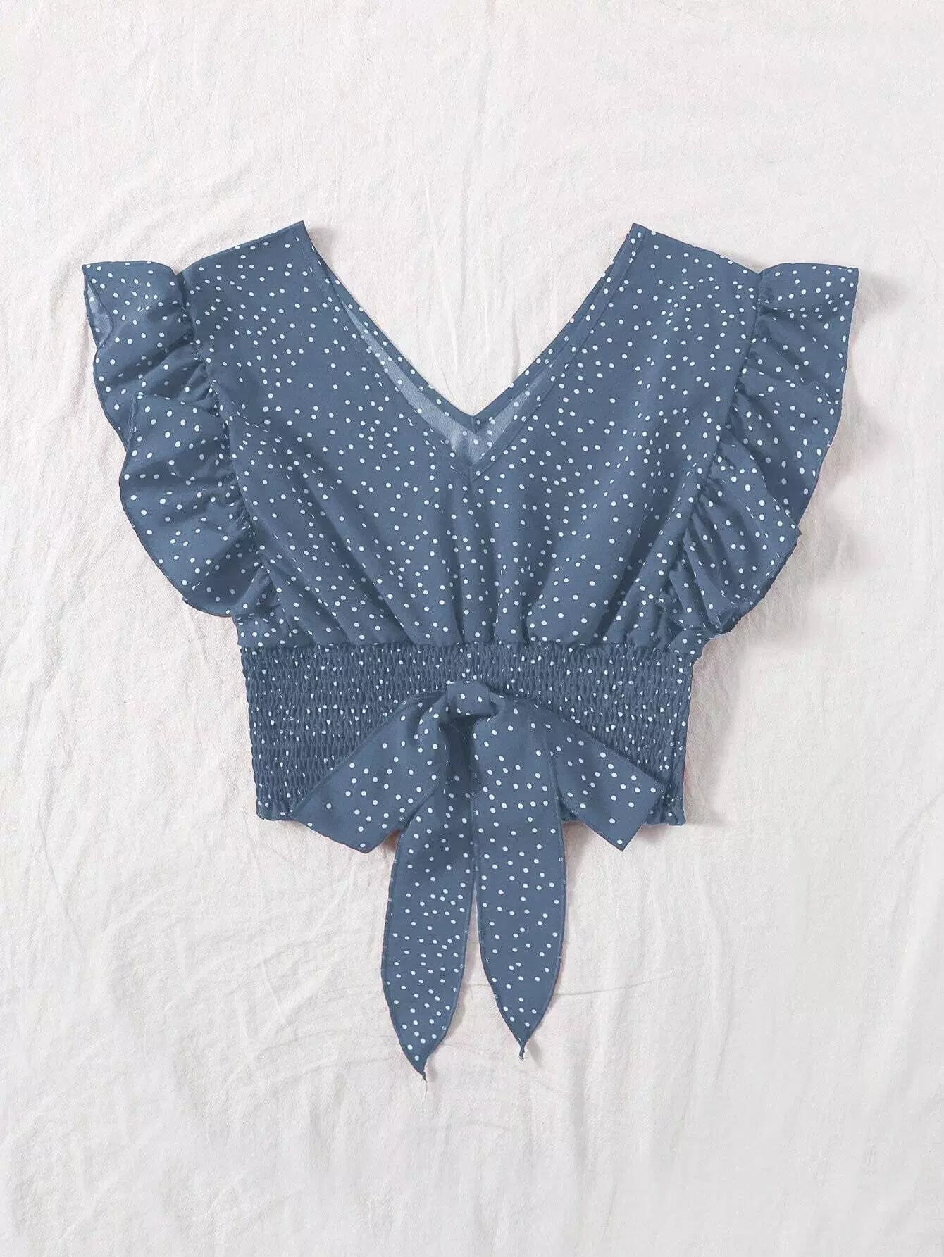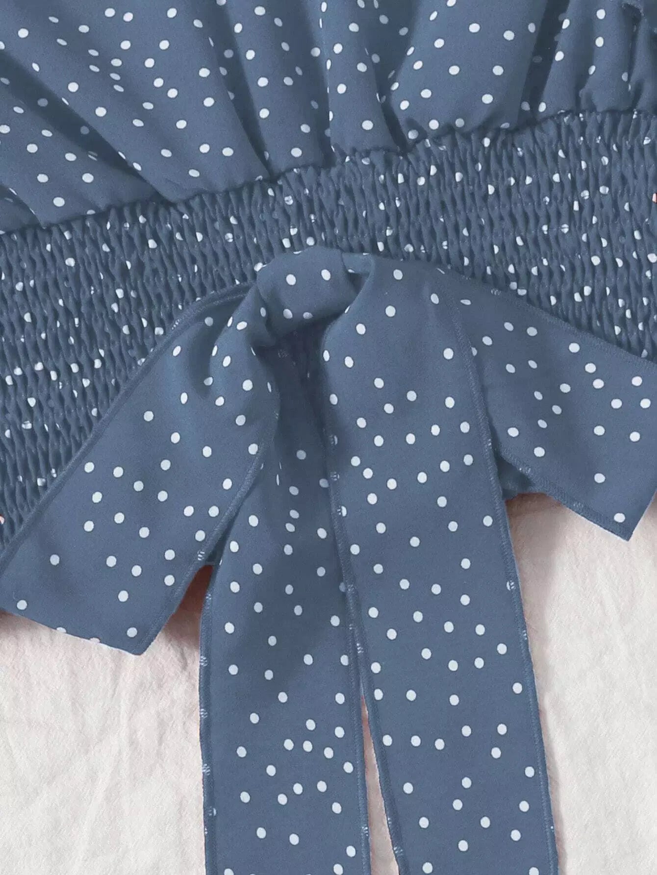 بلوزة منقّطة منقّطة بشريط مزين بعقدة على شكل شيرد