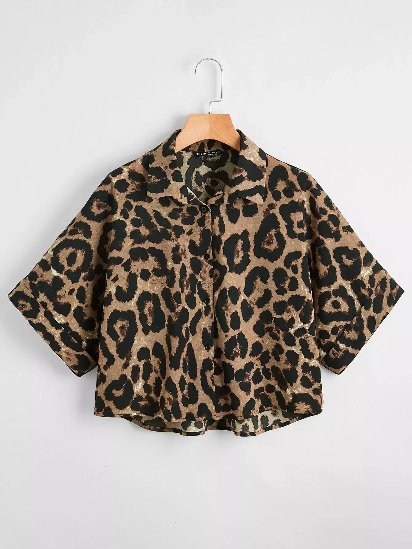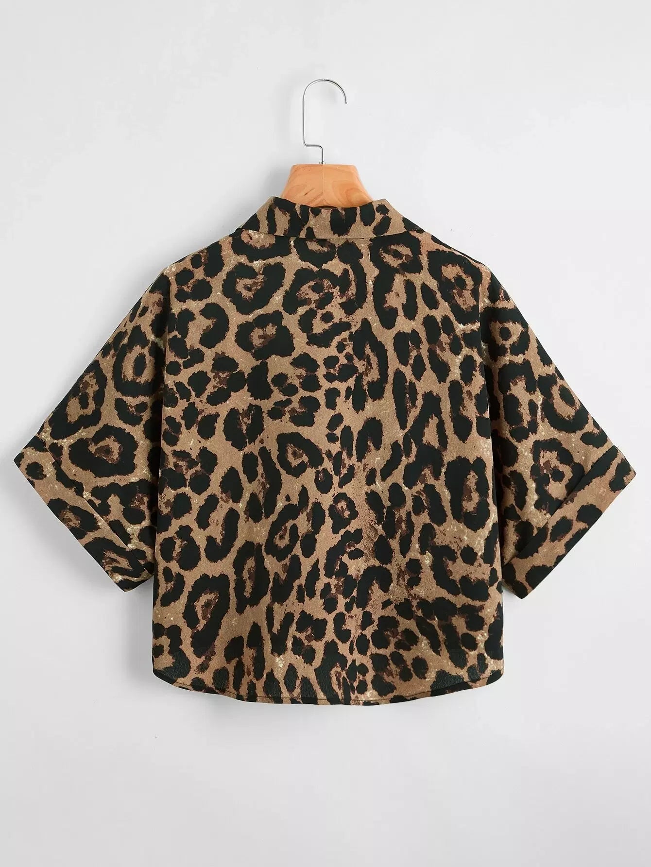 قميص بأكمام ملفوفة على شكل جلد النمر