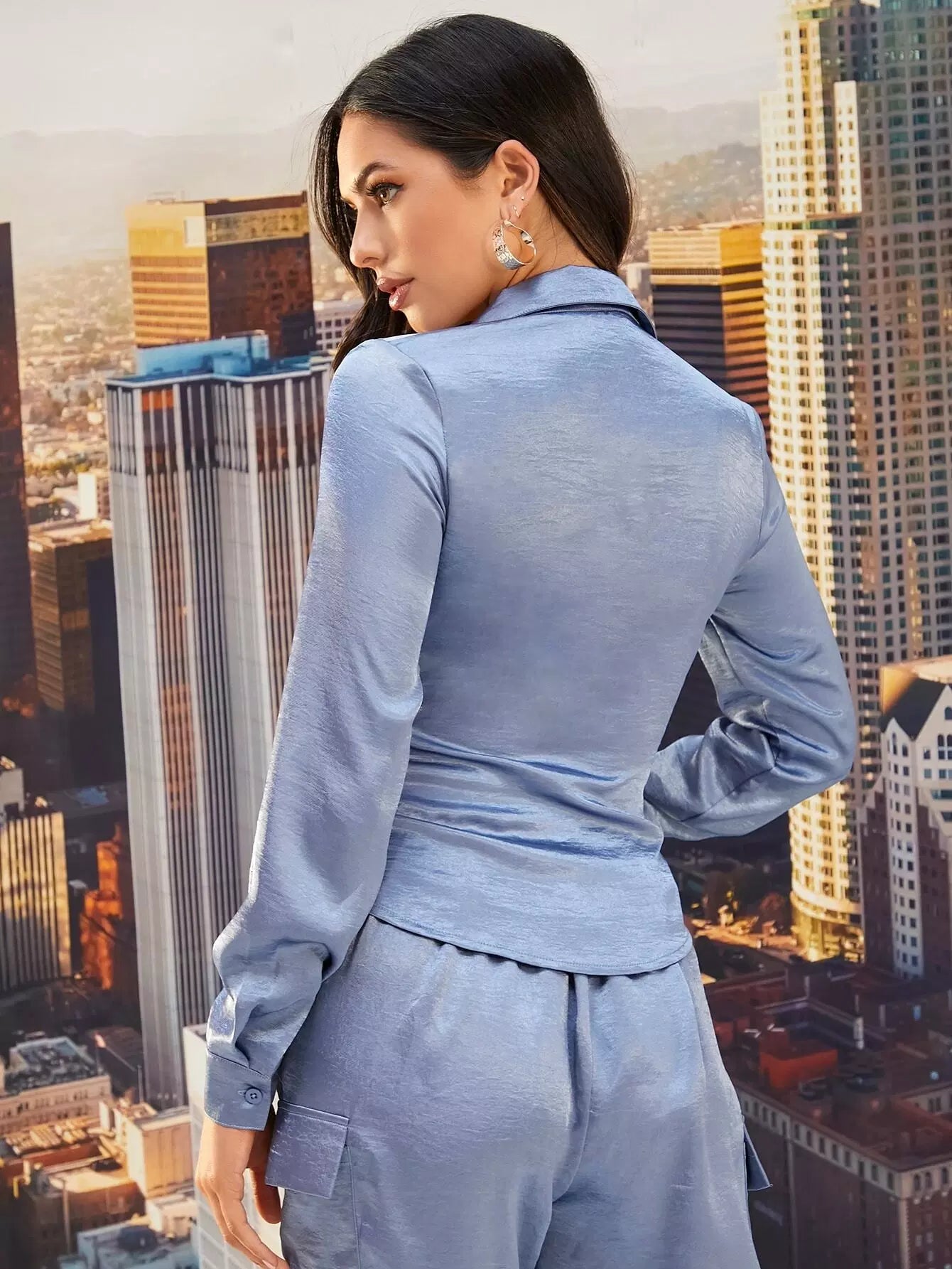 قميص من الساتان ذو تفاصيل مكشكشة بصدر واحد