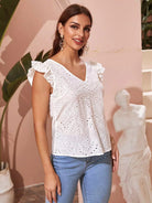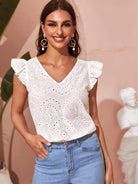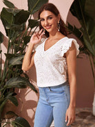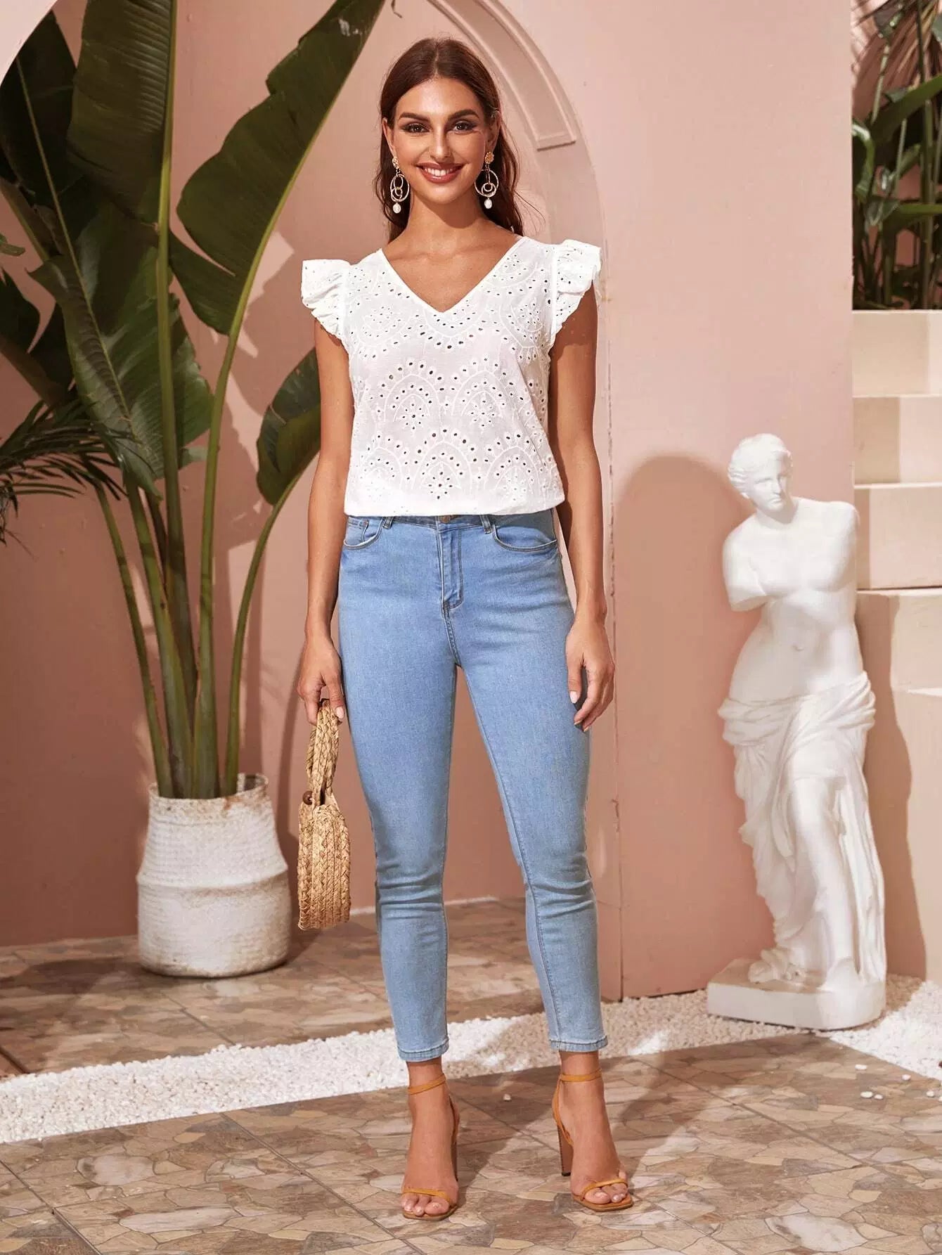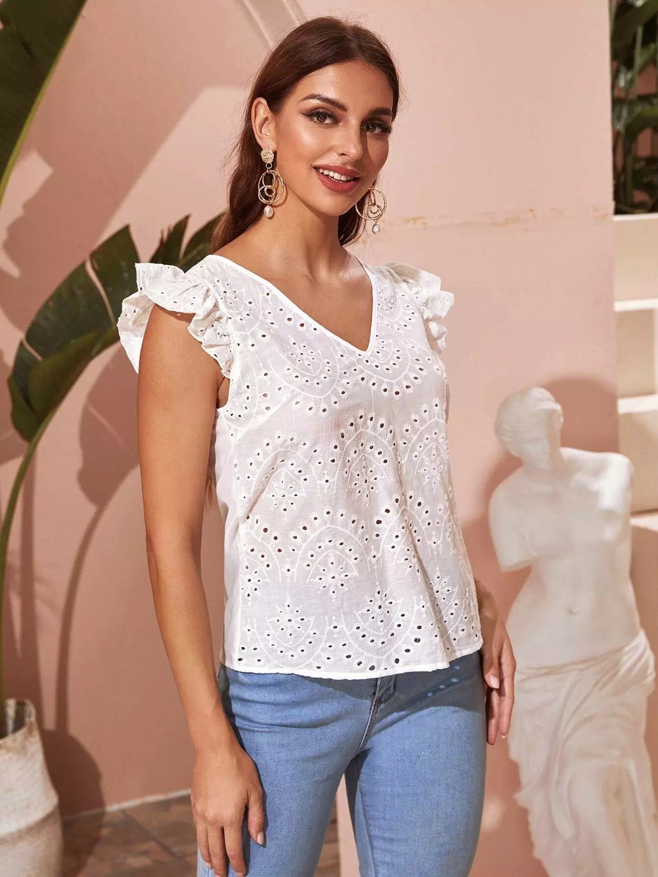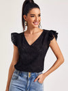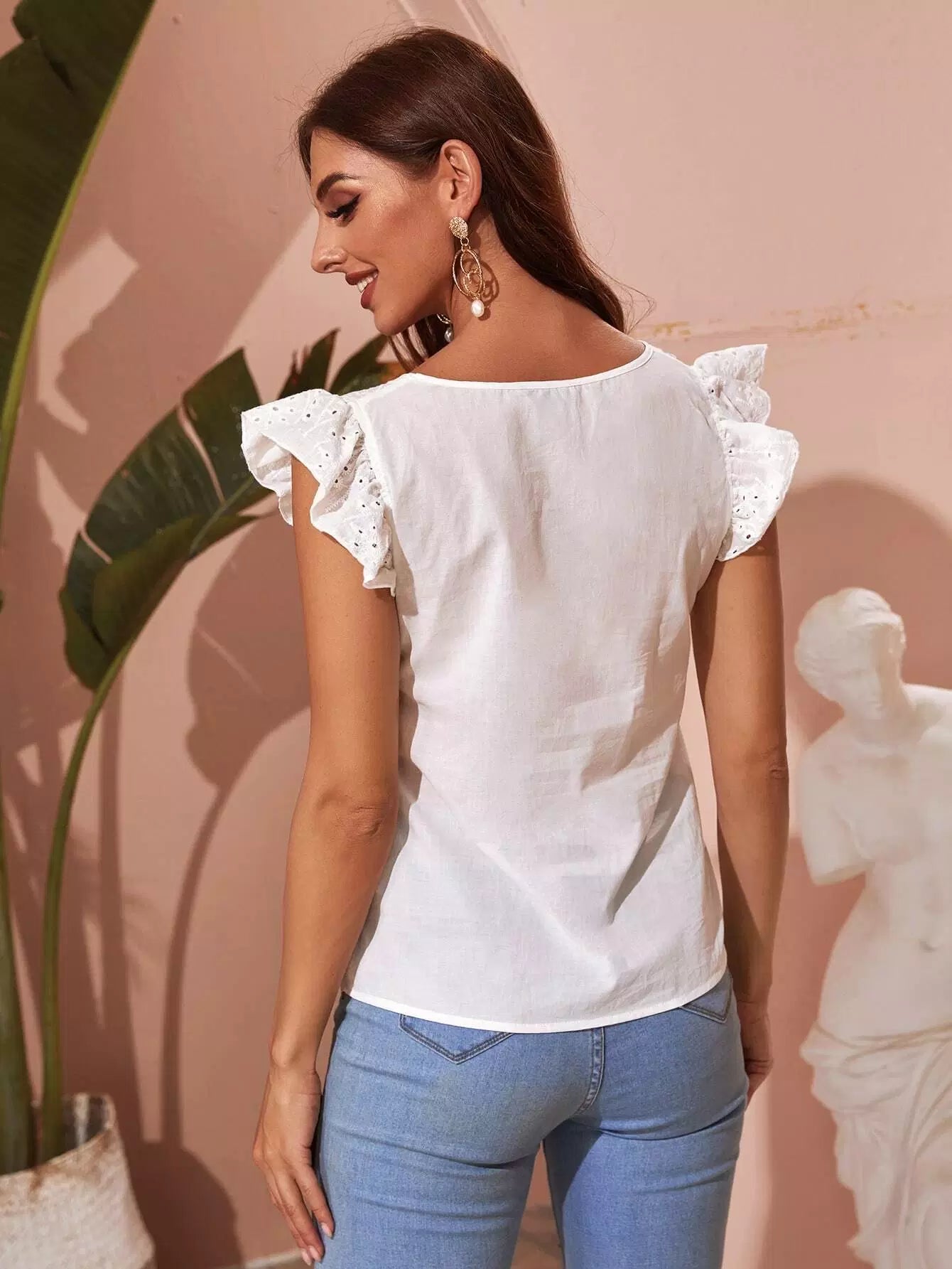 بلوزة بفتحة أكمام مكشكشة بفتحة ذراعين مكشكشة