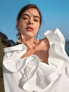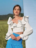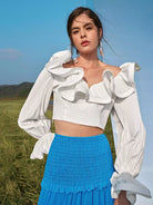 توب بأكمام كشكش بأكمام كشكش مطوية