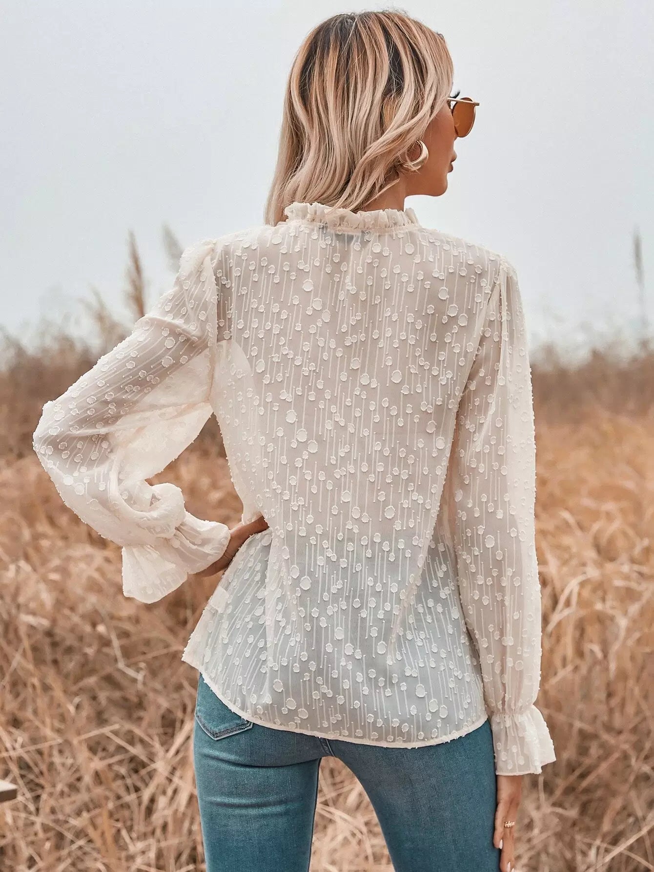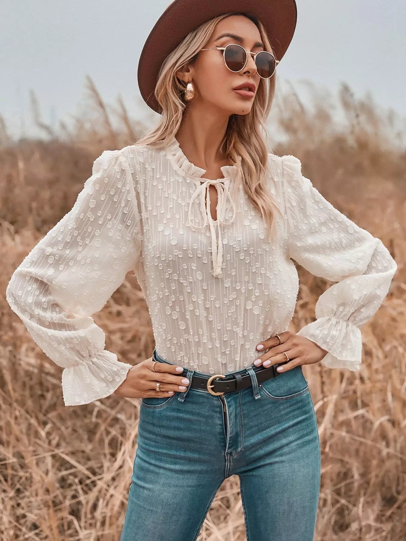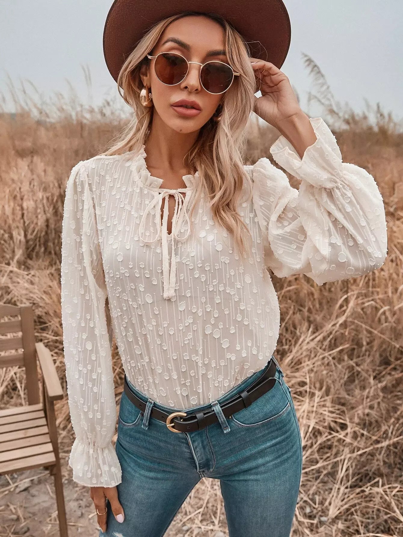 النساء - بلوزة شيفون برقبة مكشكشة وربطة عنق