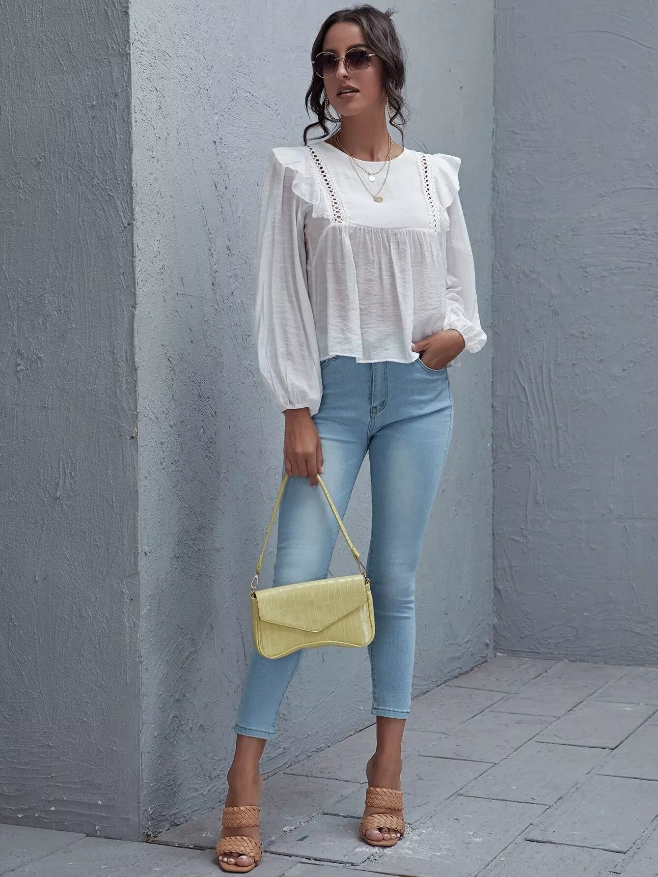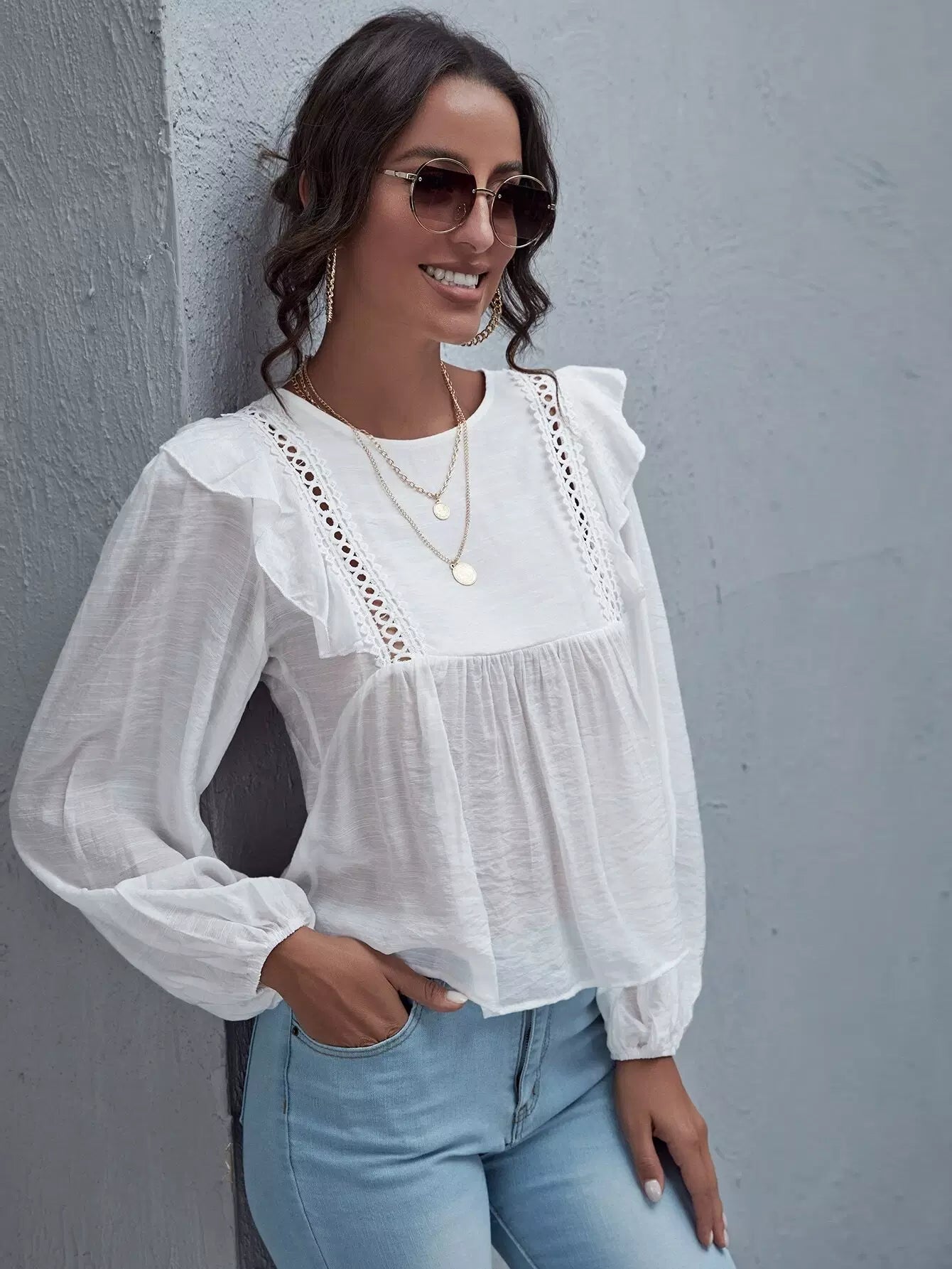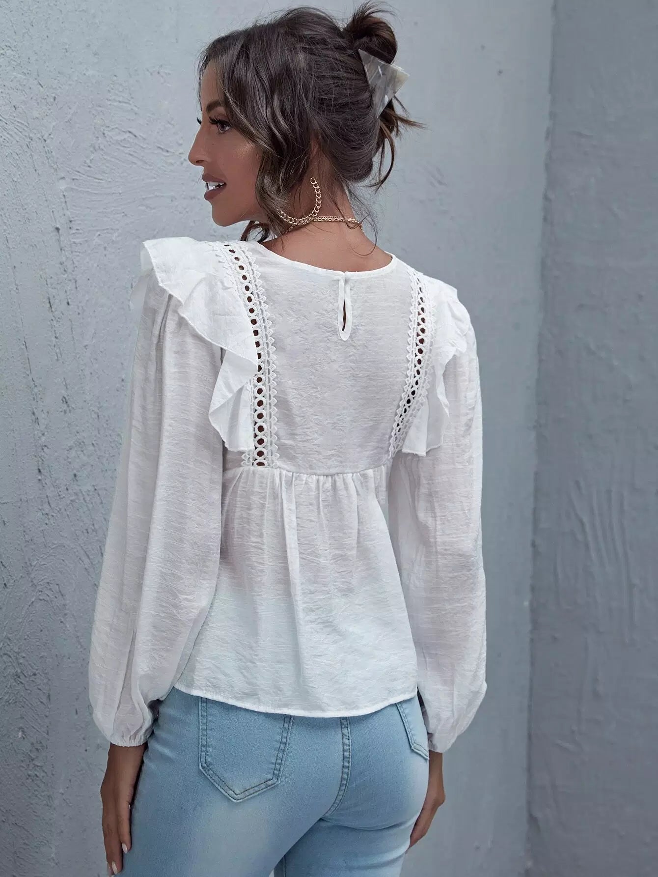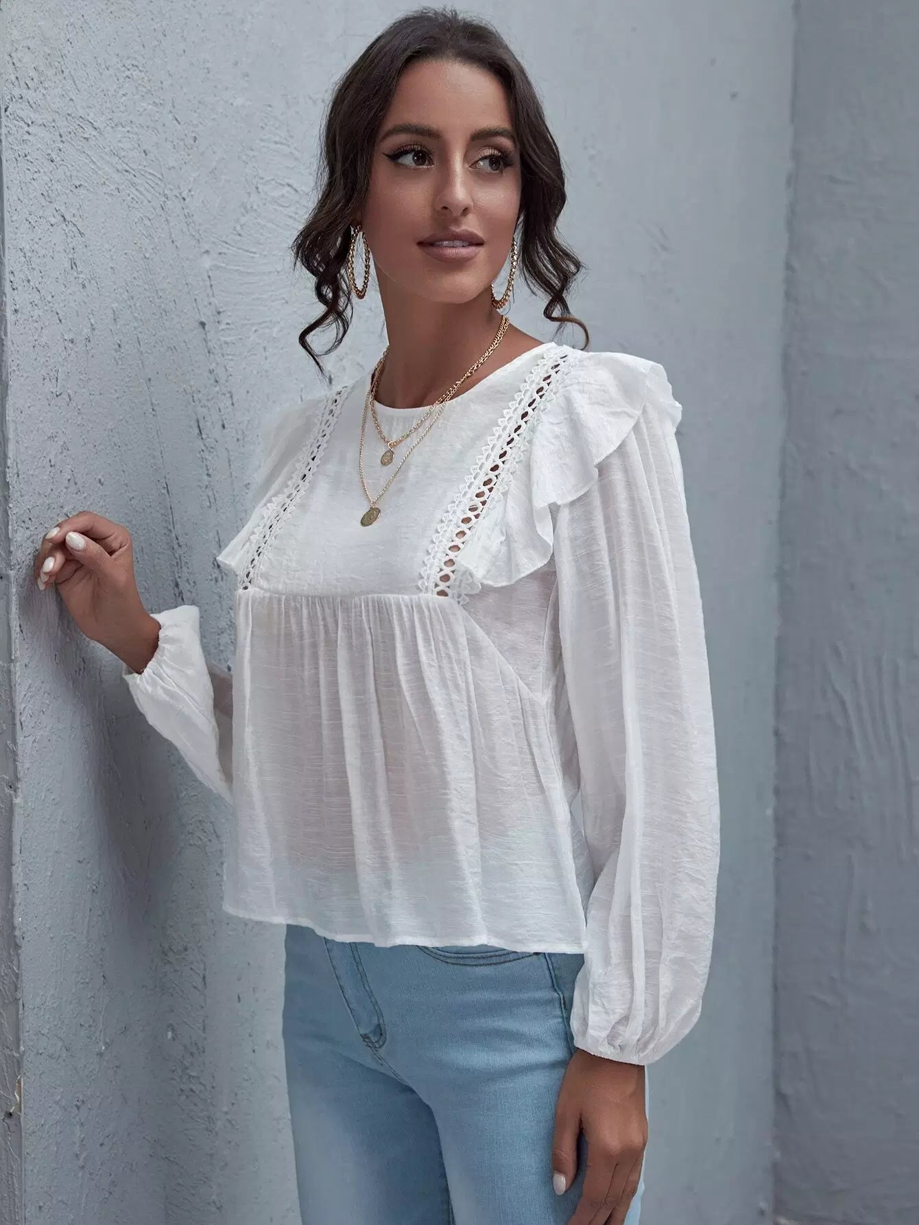 توب بحواف مكشكشة من الدانتيل بتطريز كشكش