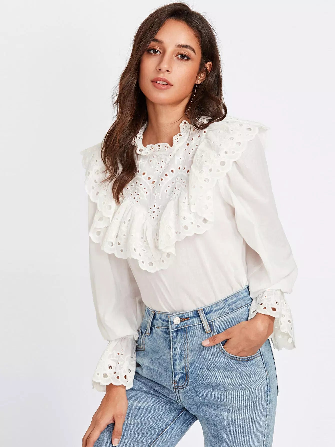 بلوزة شيفتي ذات حواف مكشكشة من الكشكشة