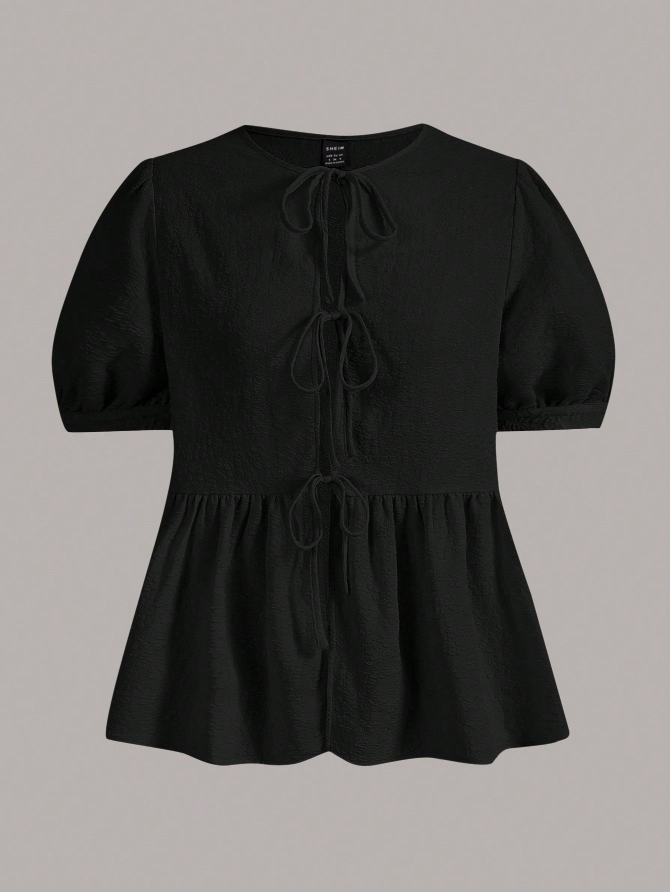 بلوزة SHEINNEu برباط أمامي وحاشية مكشكشة