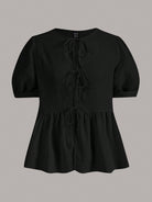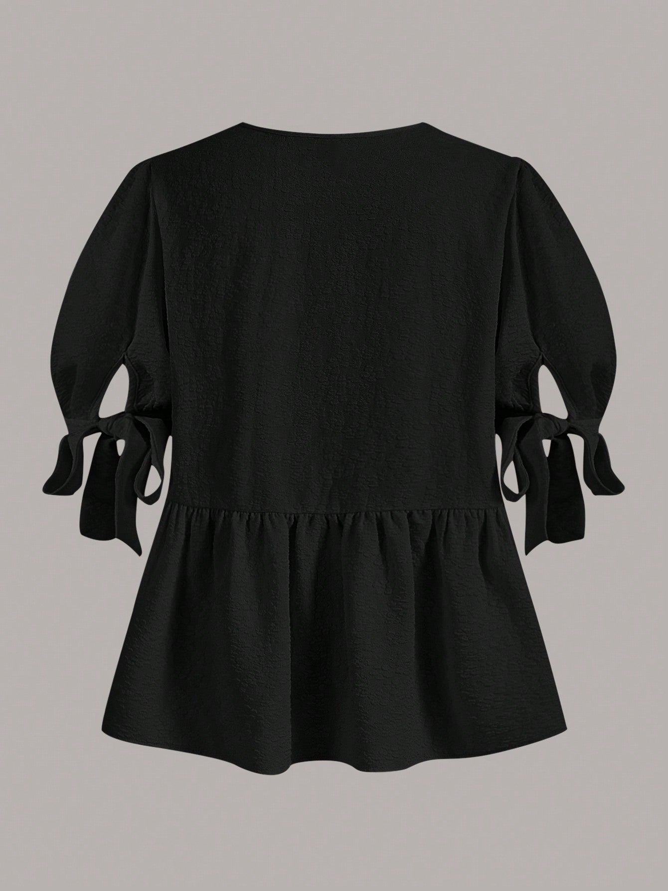 SHEINNeu Solid Tie Front Ruffle Hem Blouse
