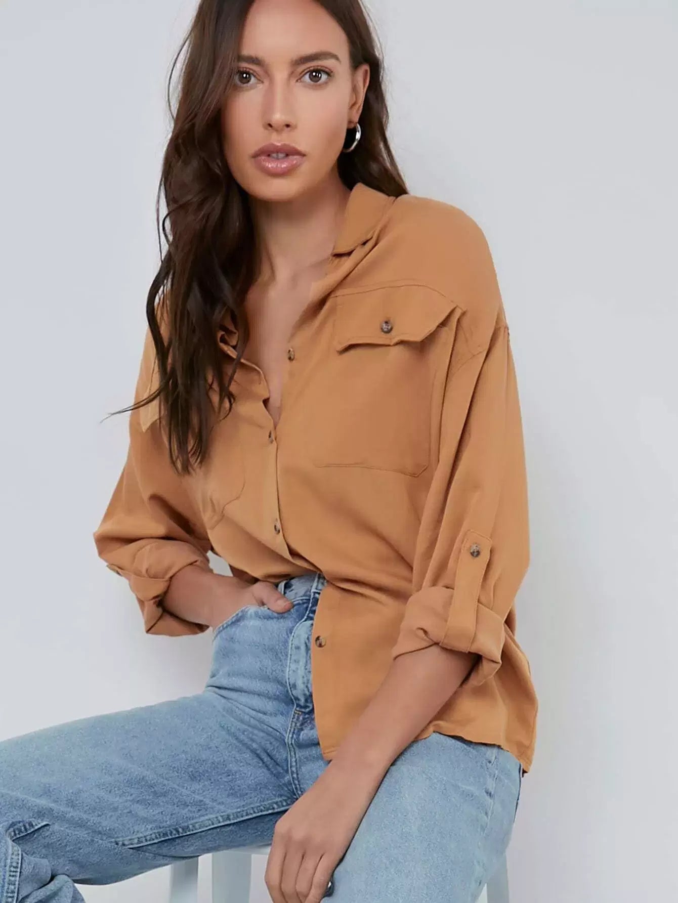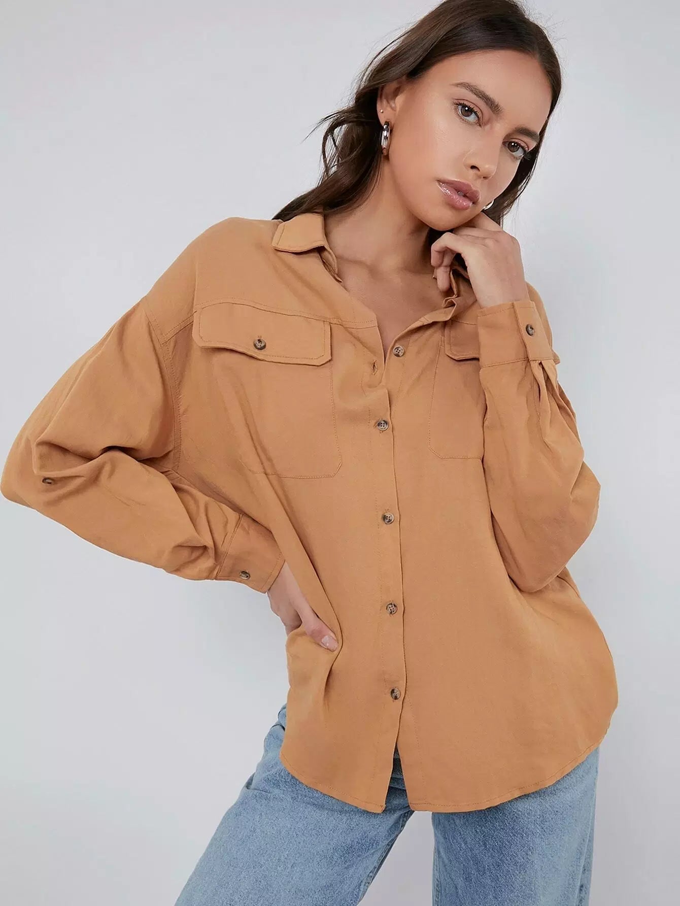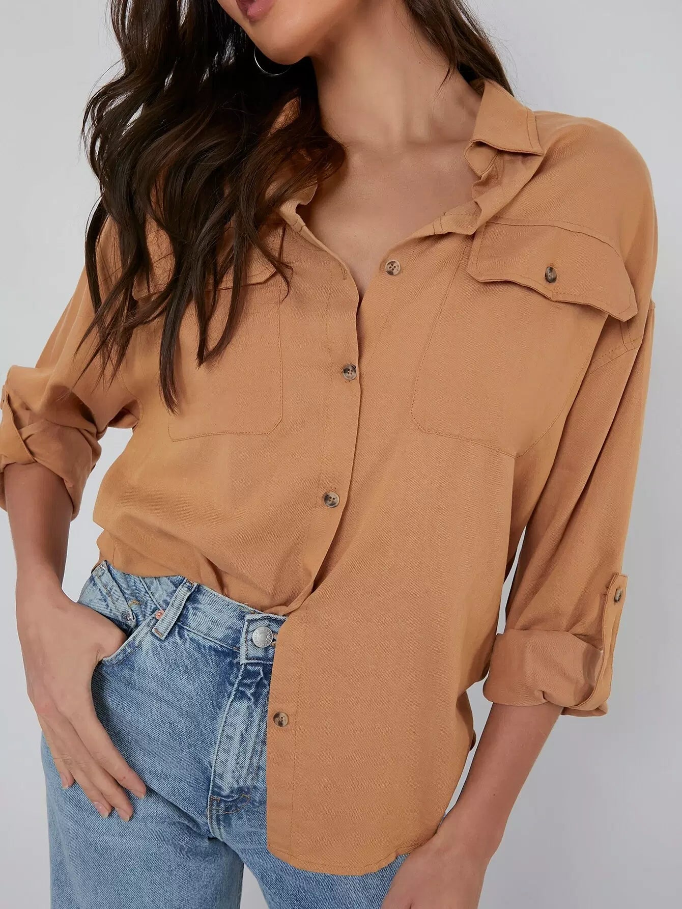 بلوزة بجيب بفتحة صدر واحدة