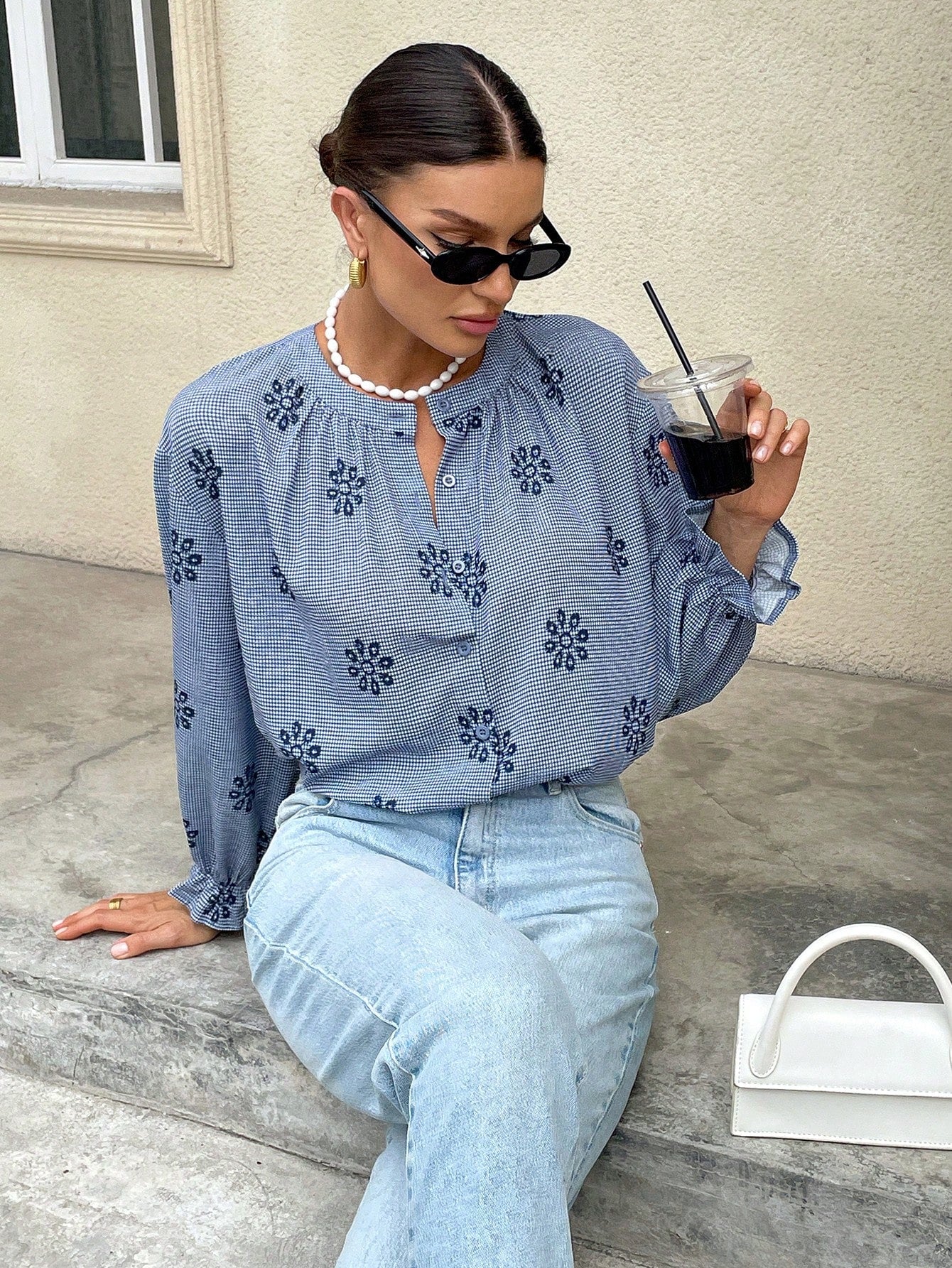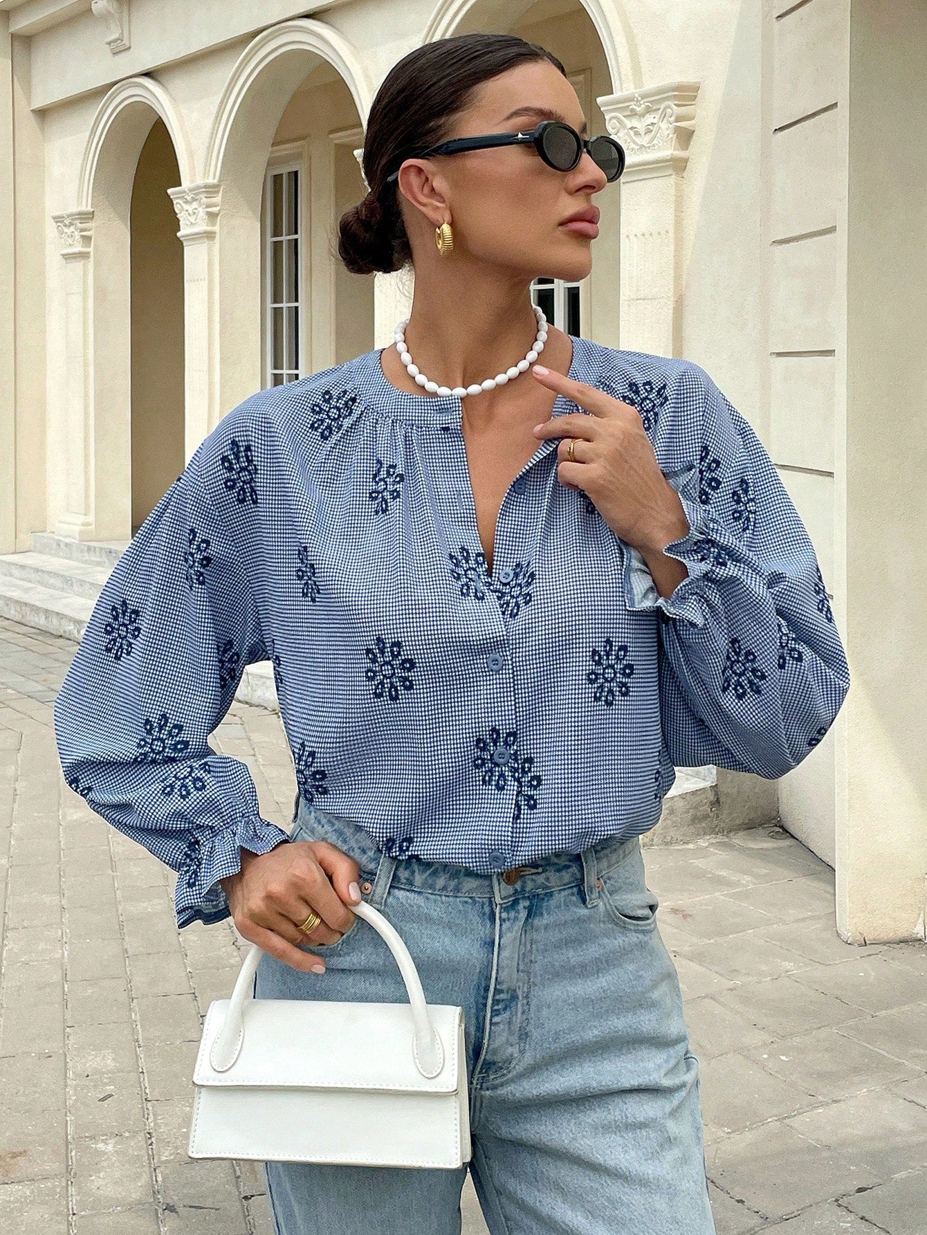 Siren Gaze Women's Casual Commuting Plaid Embroidery Shirt