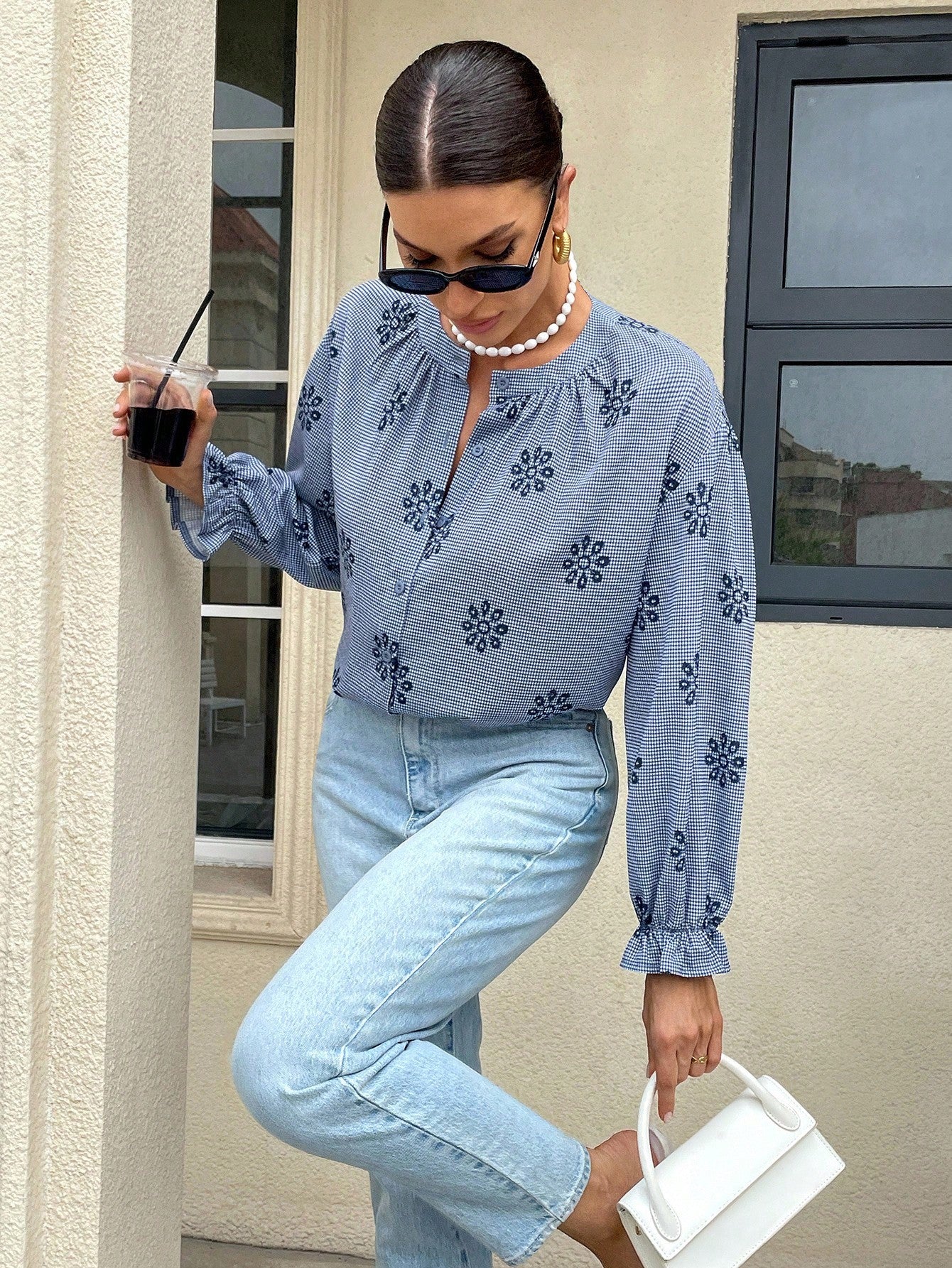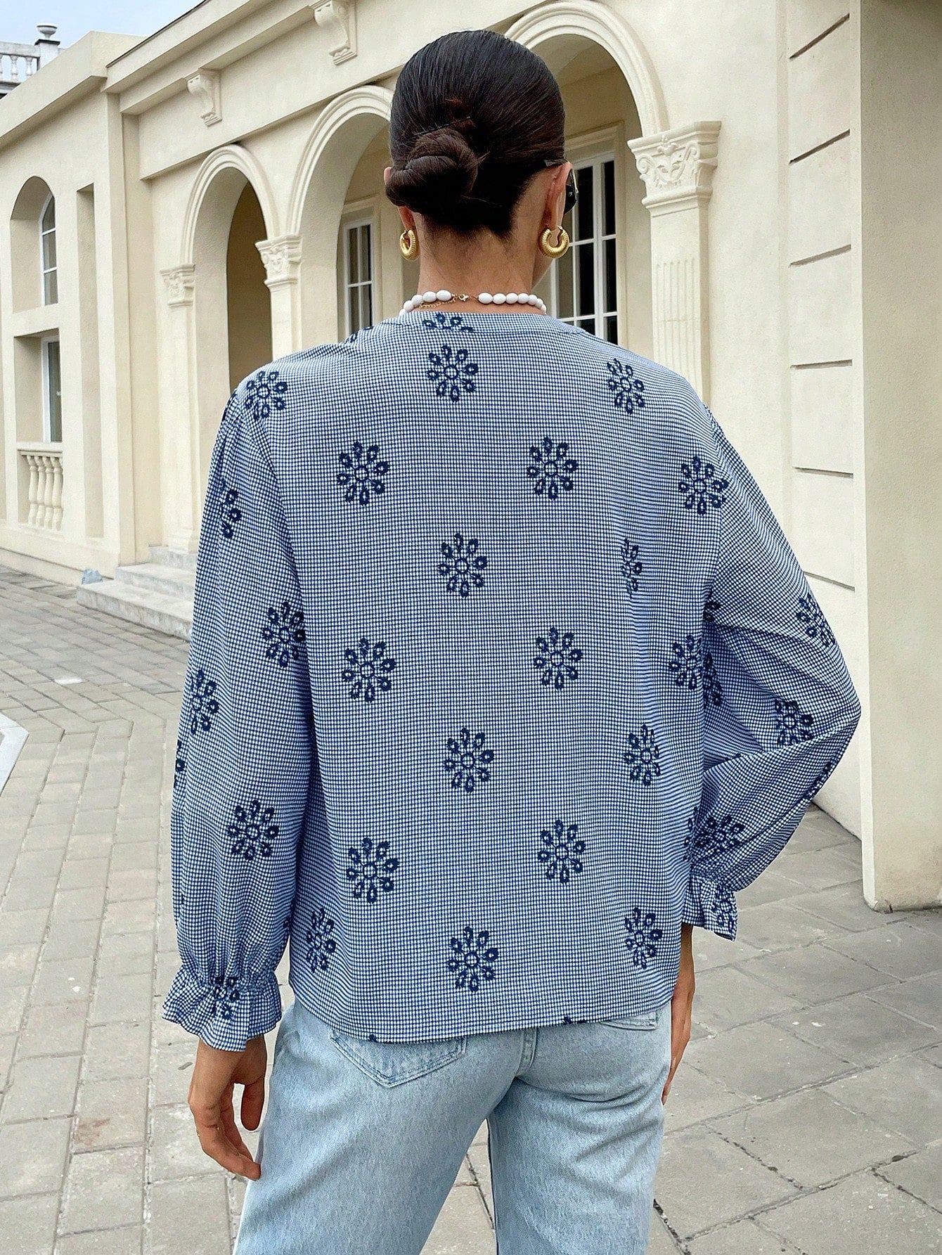 قميص نسائي كاجوال من Siren Gaze بنقشة مربعات مطرزة