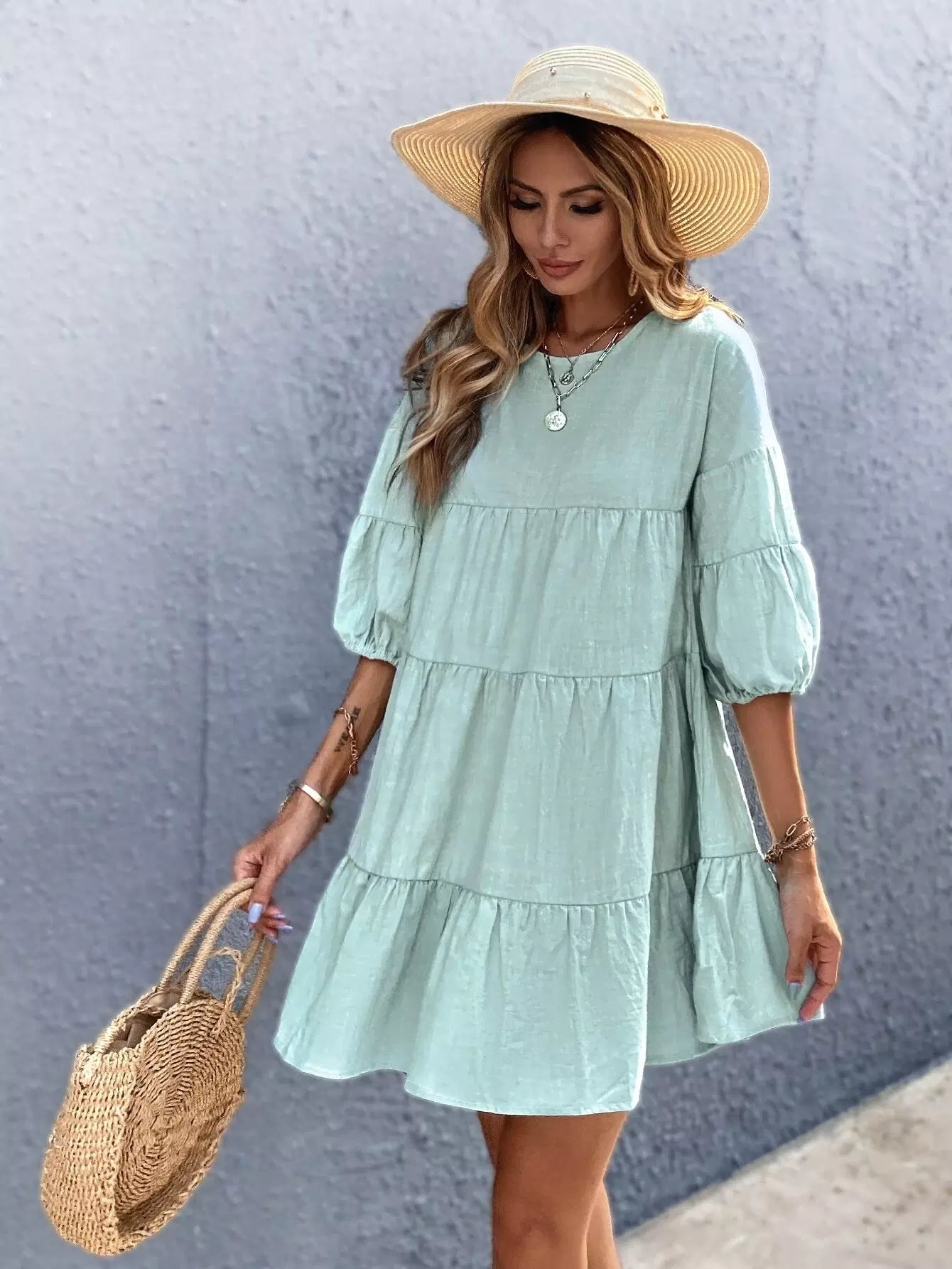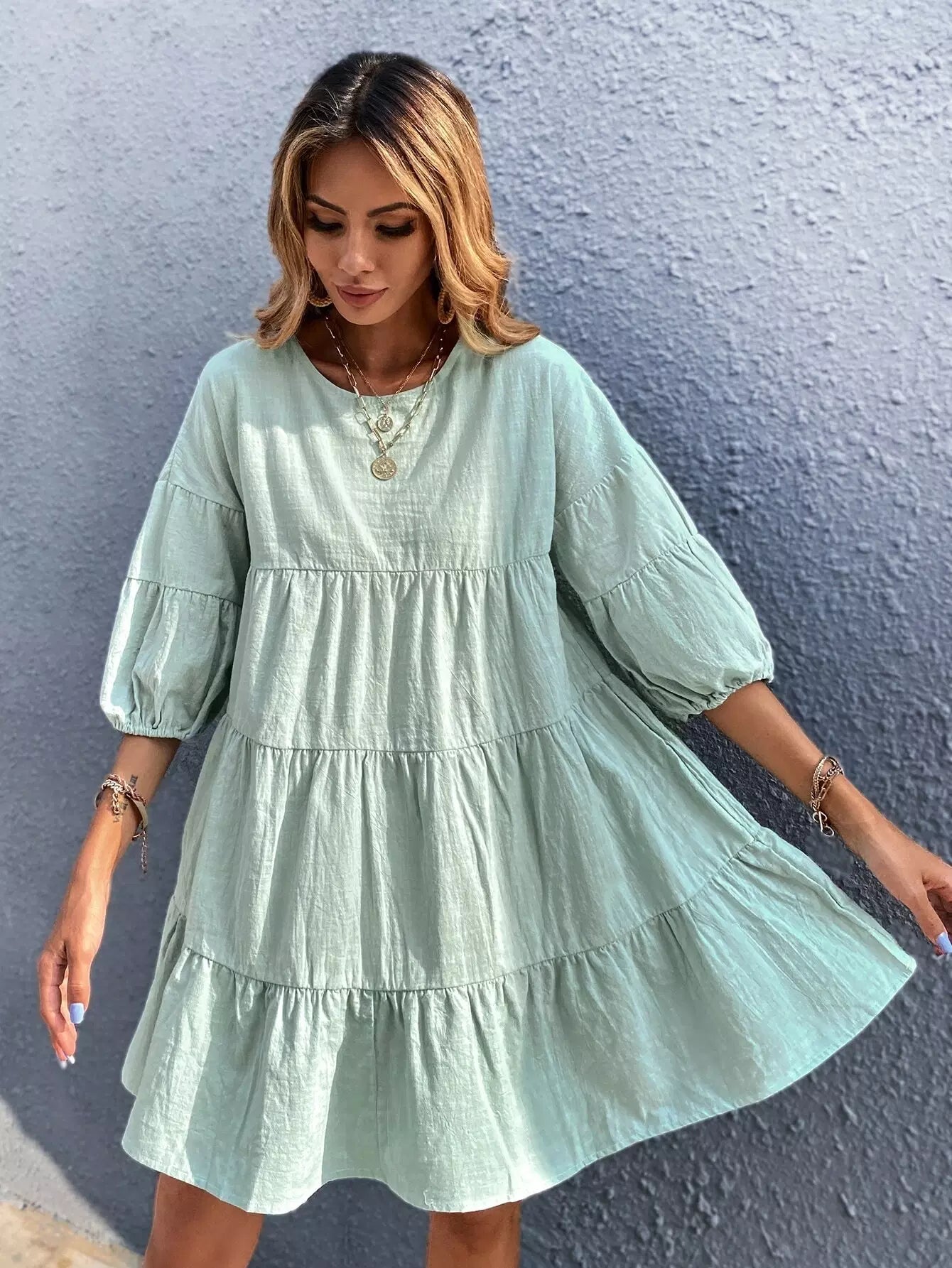 بلوزة بأكمام بيشوب سادة بأكمام بيبي دول