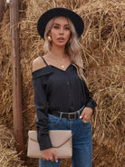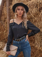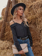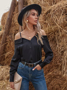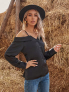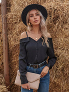 بلوزة سادة مكشوفة الكتفين بأزرار