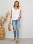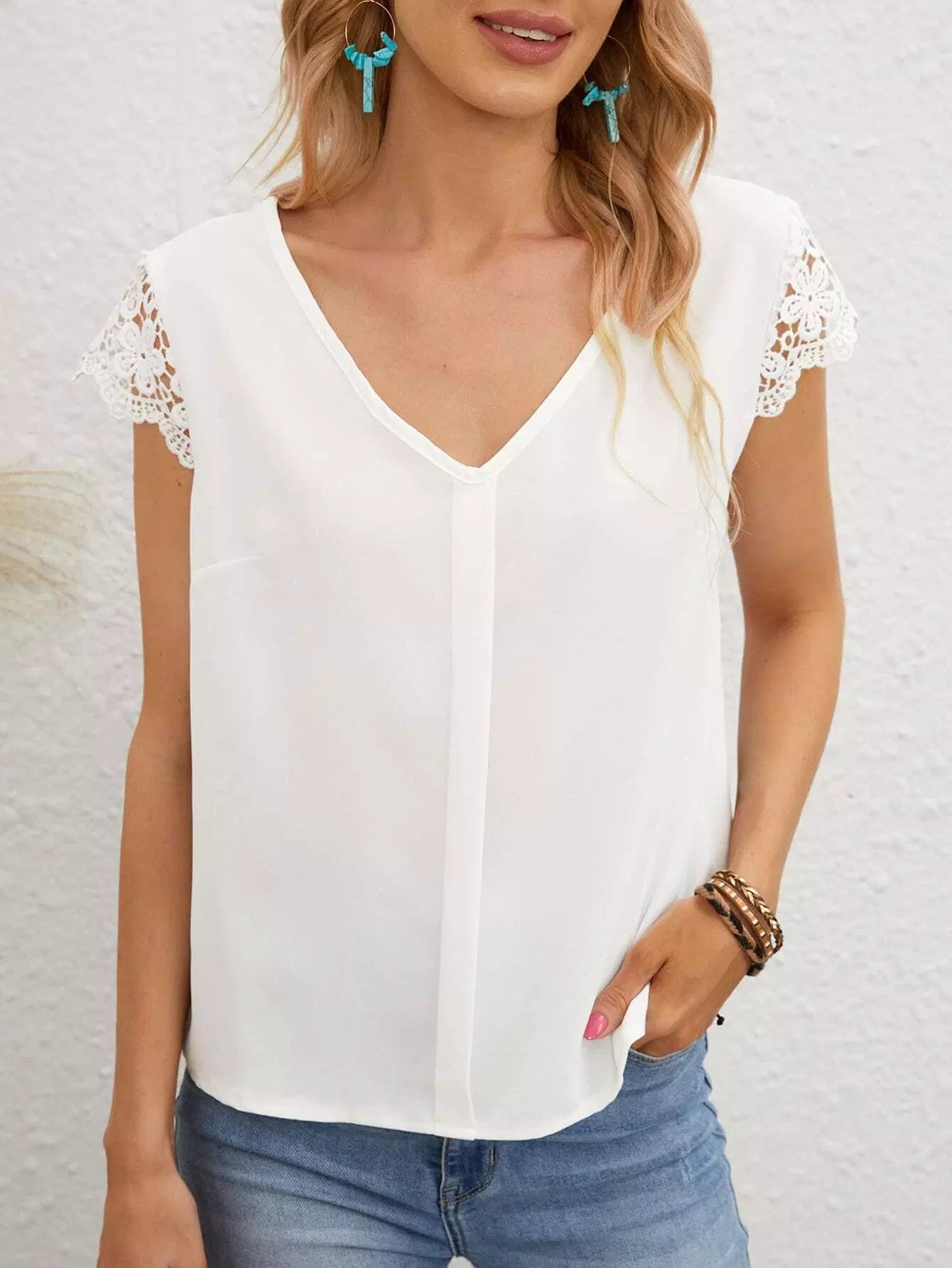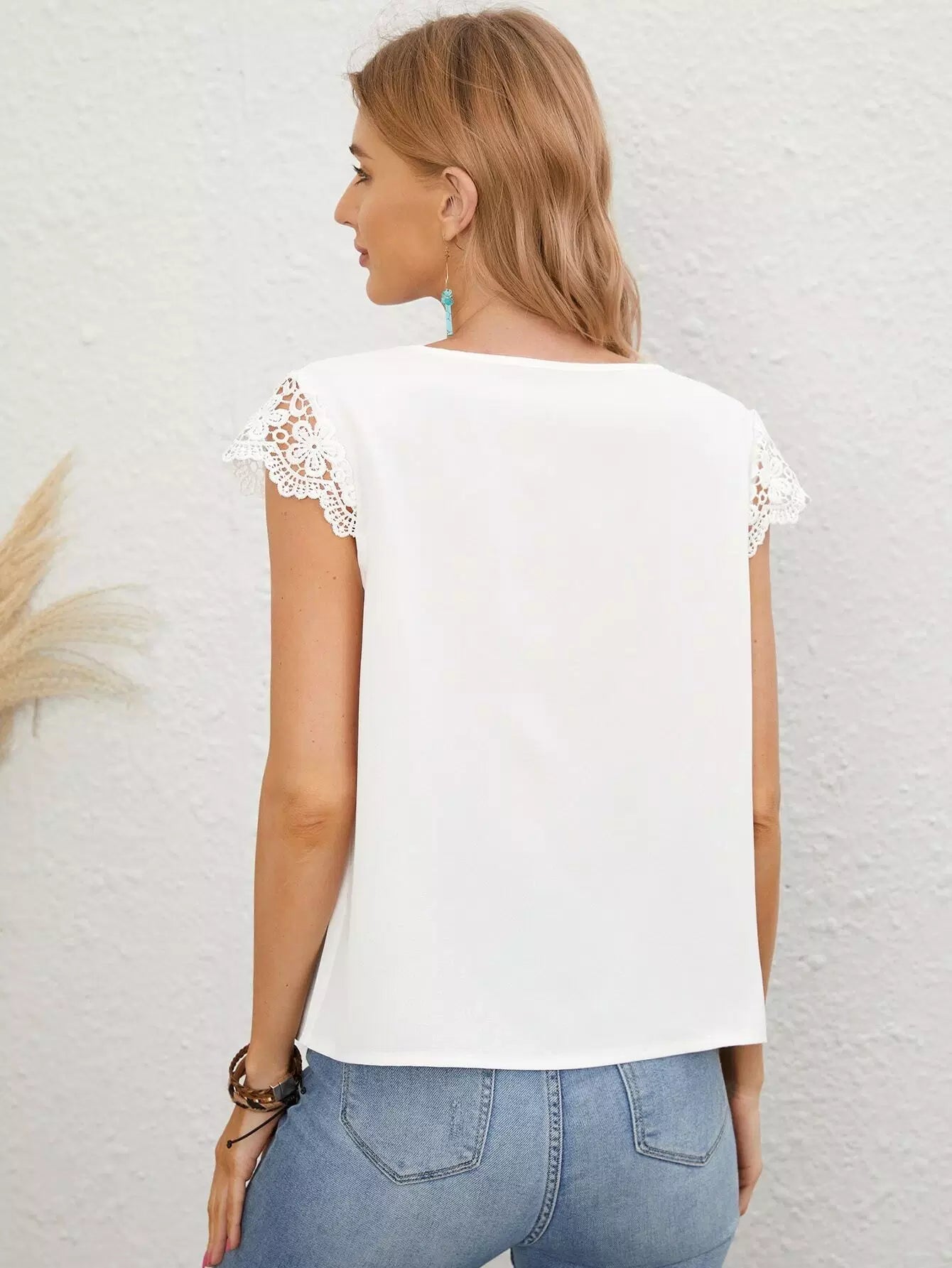 بلوزة دانتيل دانتيل سادة بلون مغاير